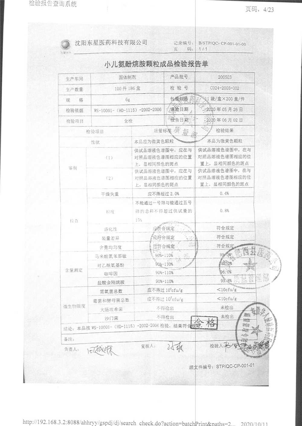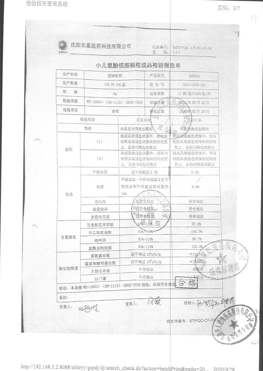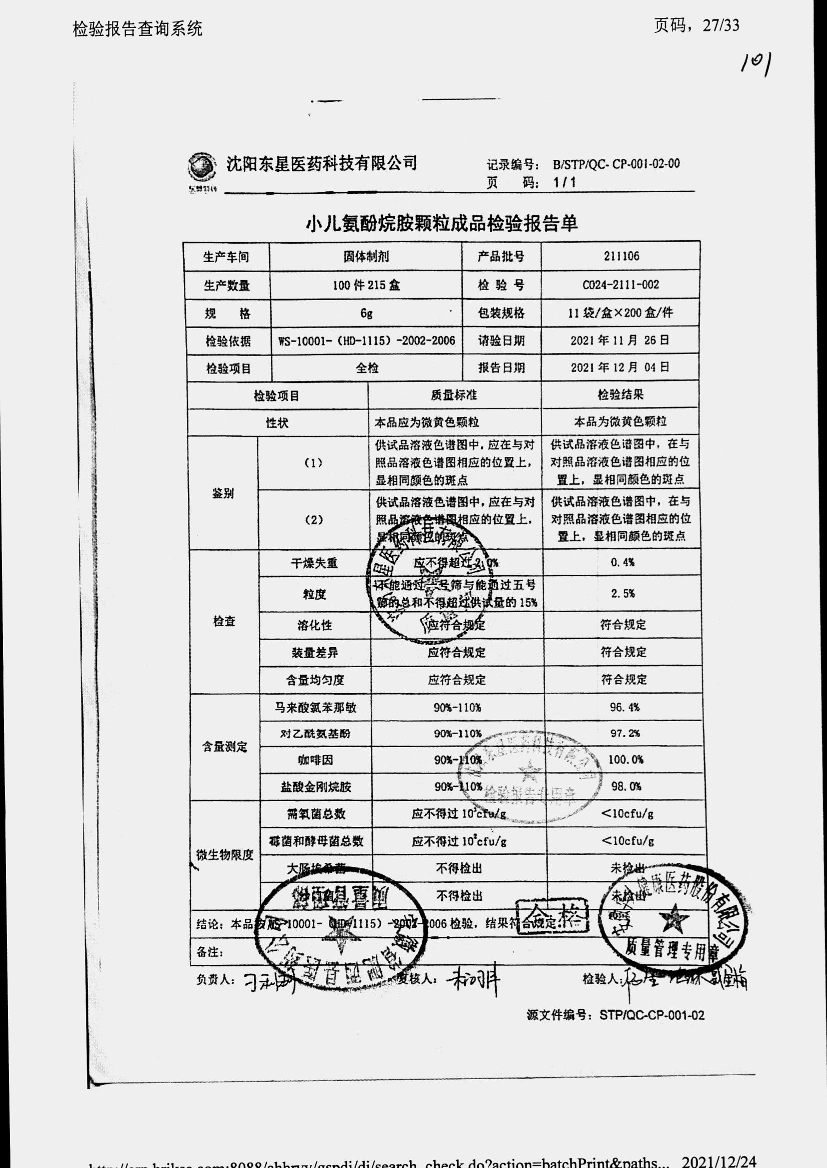 | 小兒氨酚烷胺顆粒 | 6g*11袋 | 201112 | 查看詳情 |
