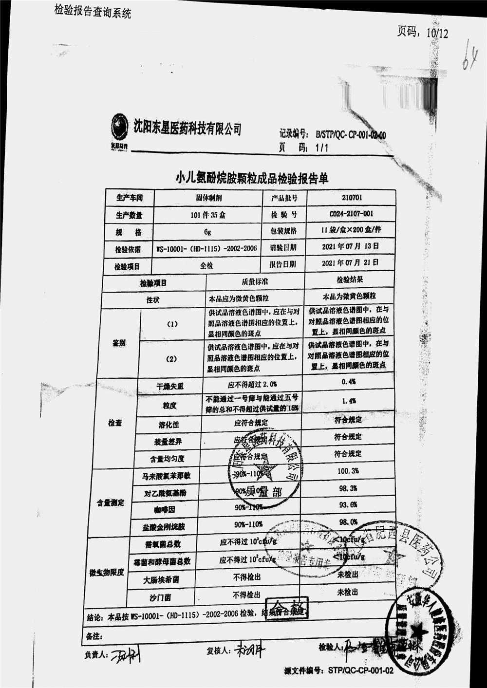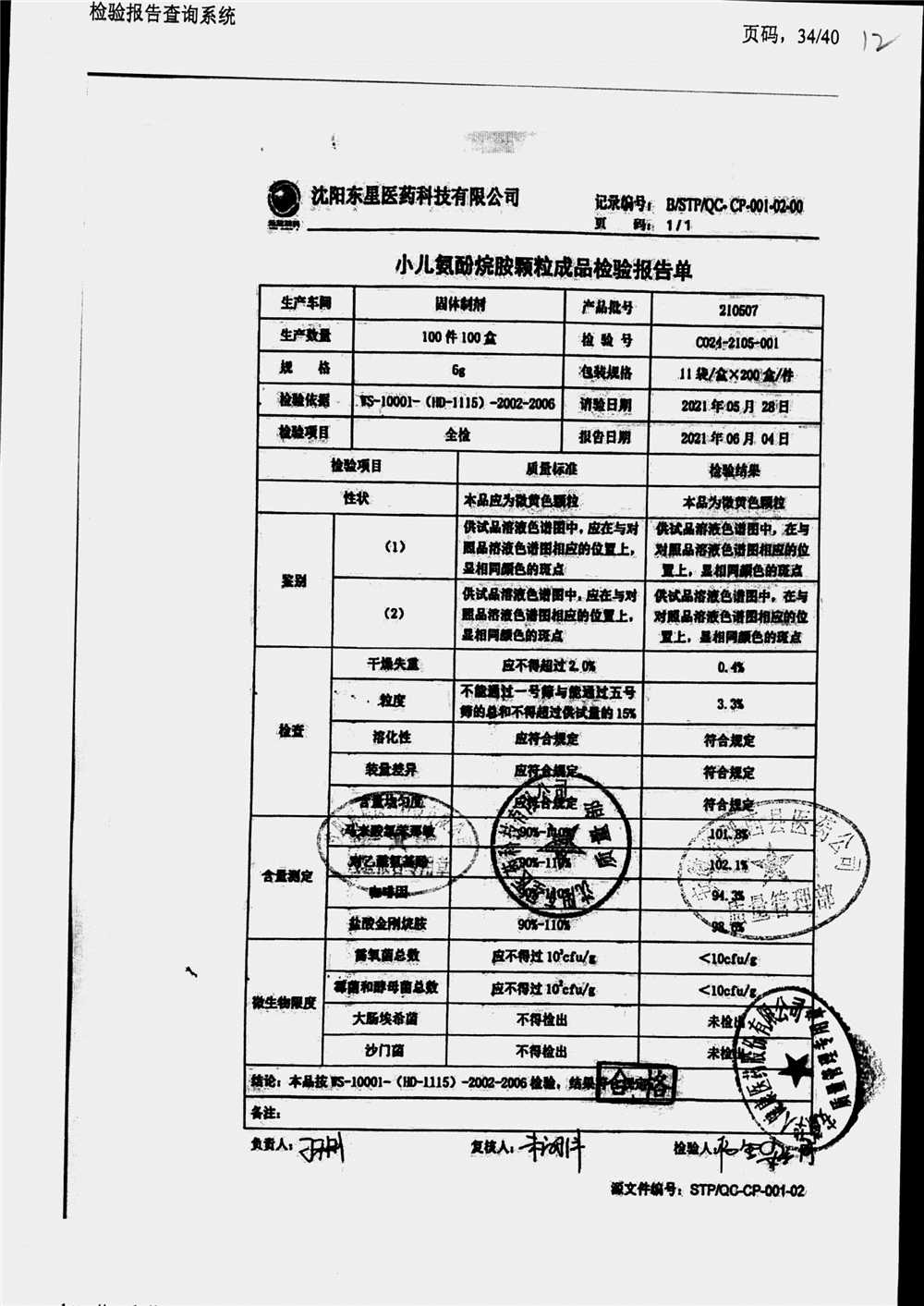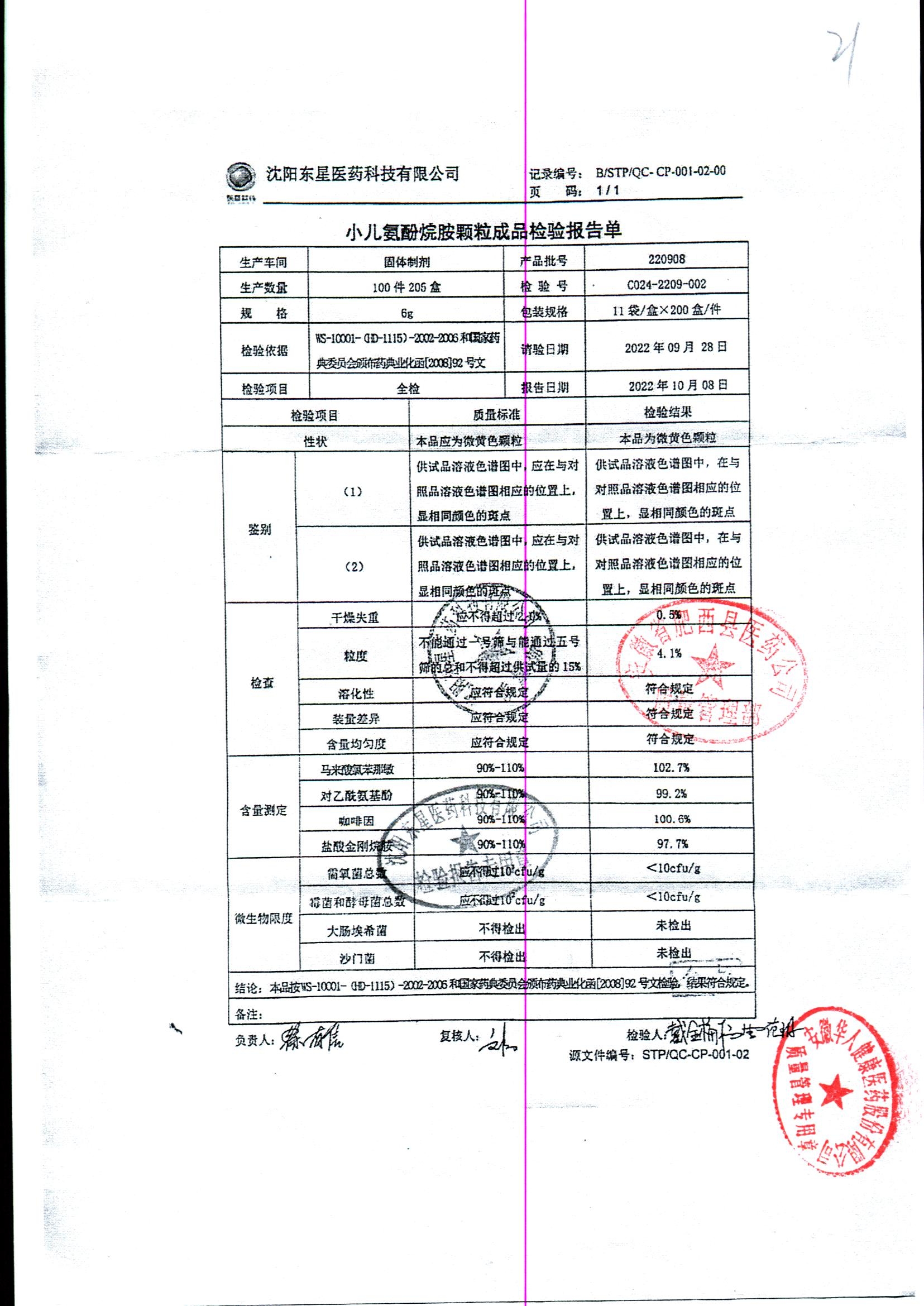 | 小兒氨酚烷胺顆粒 | 6g*11袋 | 210701 | 查看詳情 |