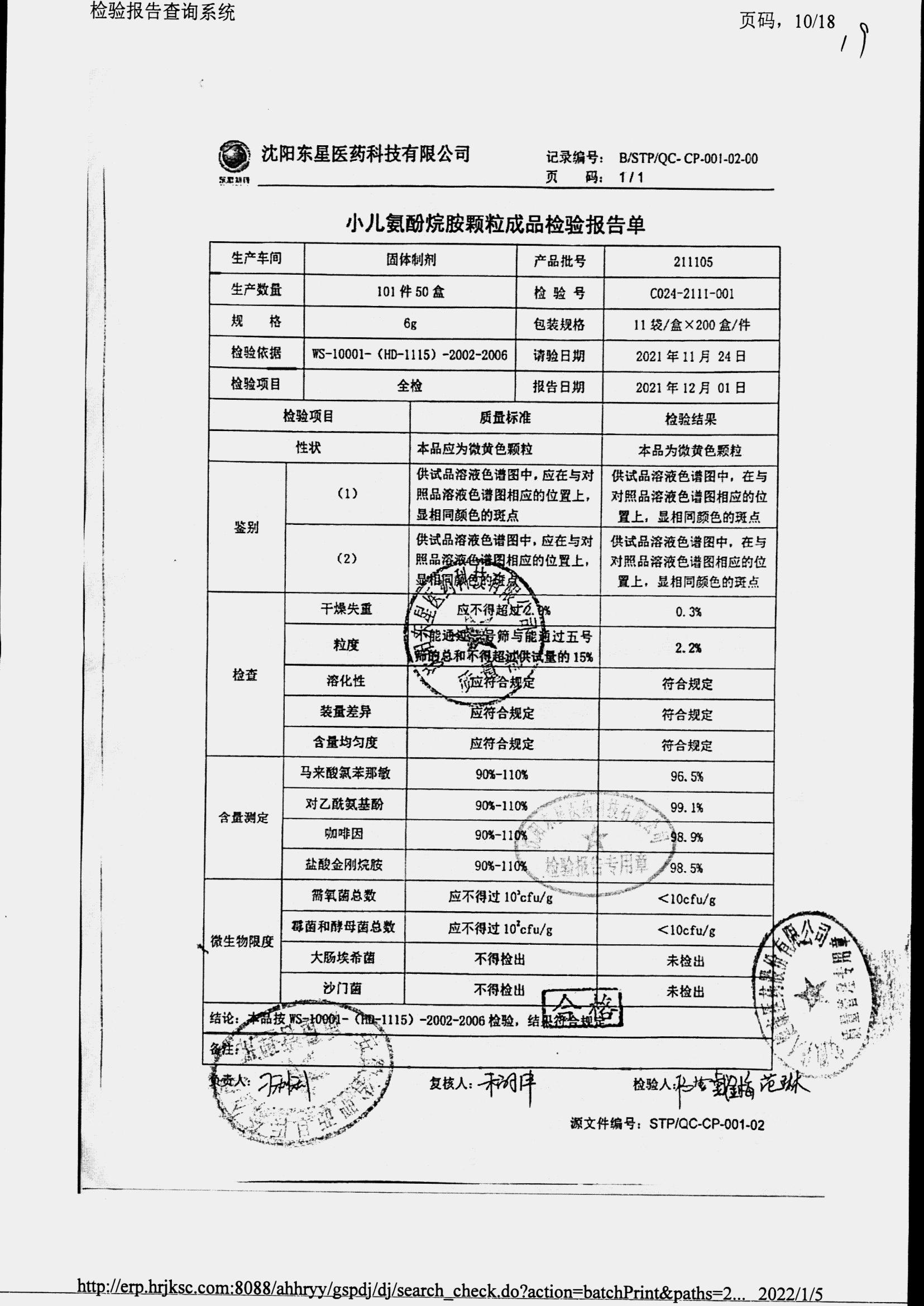 | 小兒氨酚烷胺顆粒 | 6g*11袋 | 211105 | 查看詳情 |