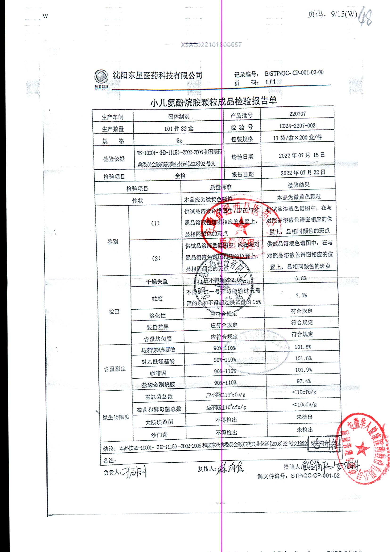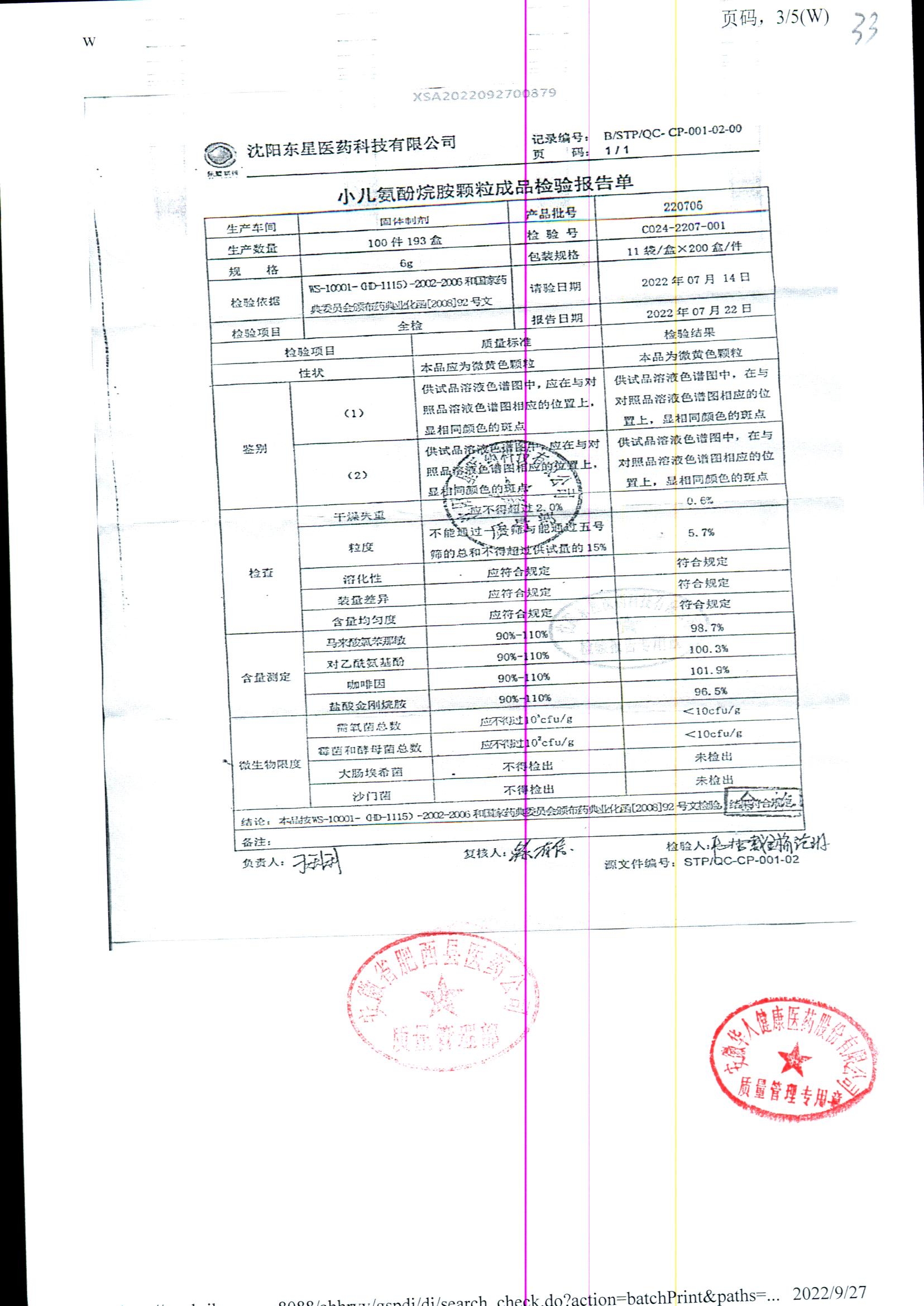 | 小兒氨酚烷胺顆粒 | 6g*11袋 | 220706 | 查看詳情 |