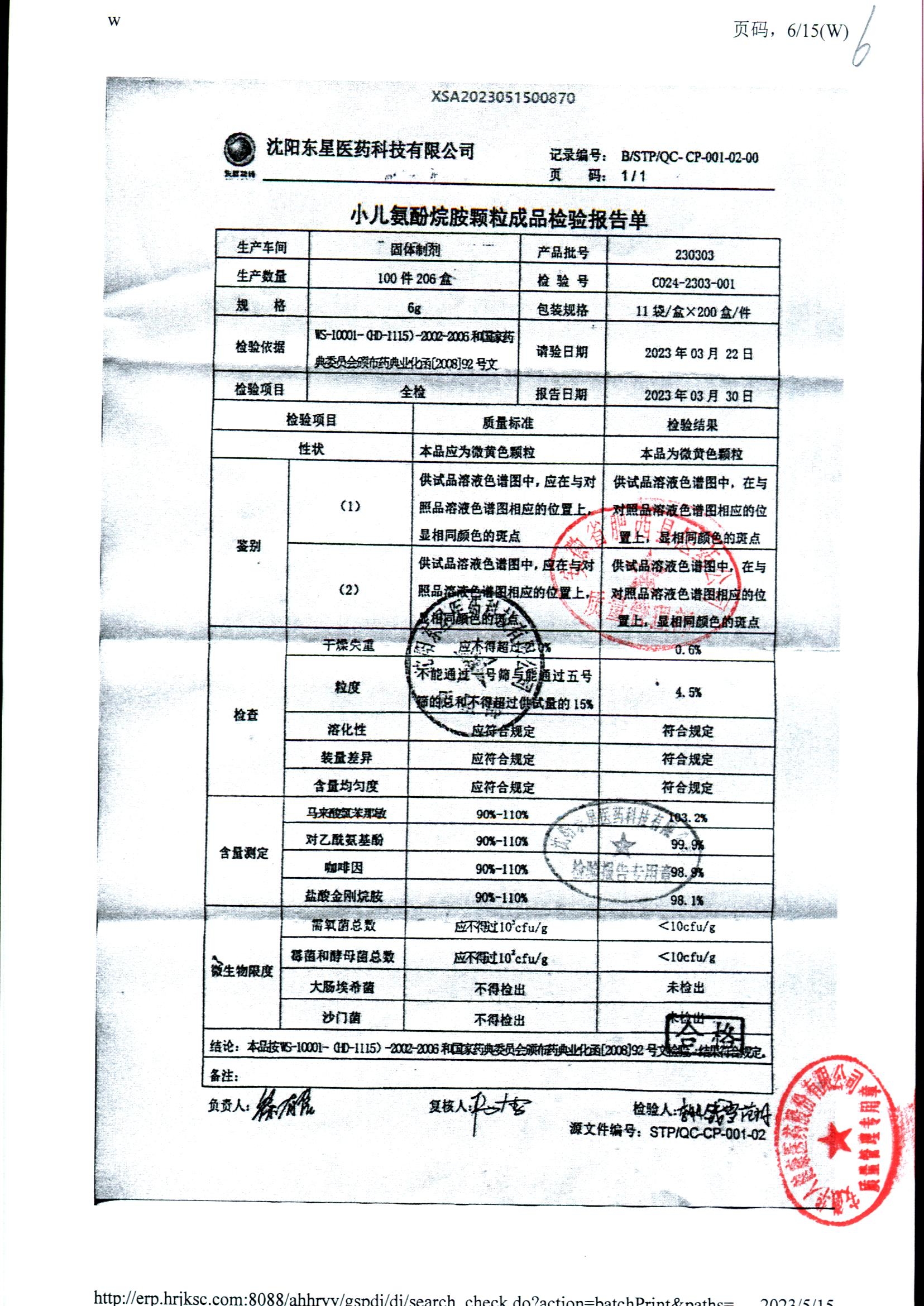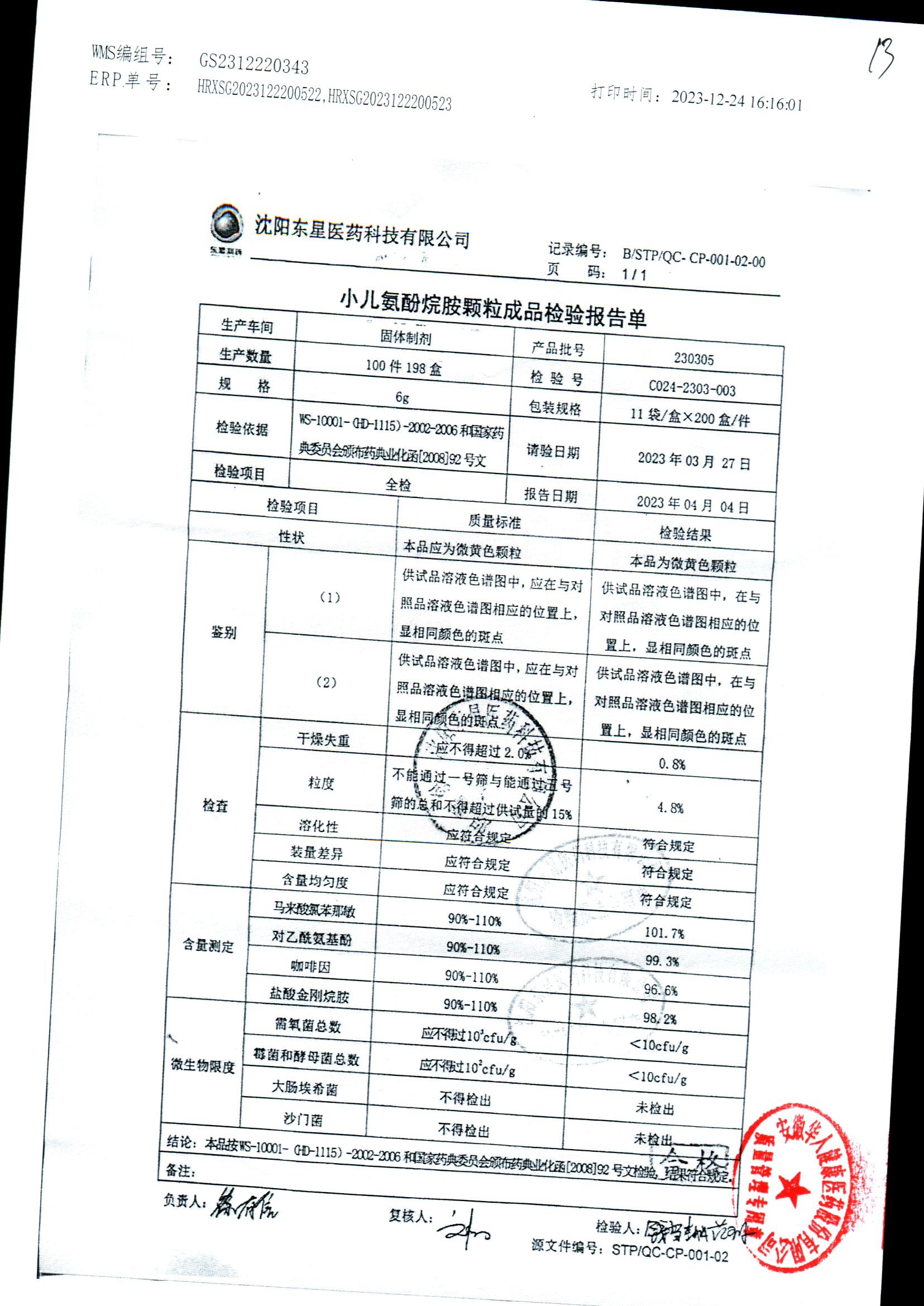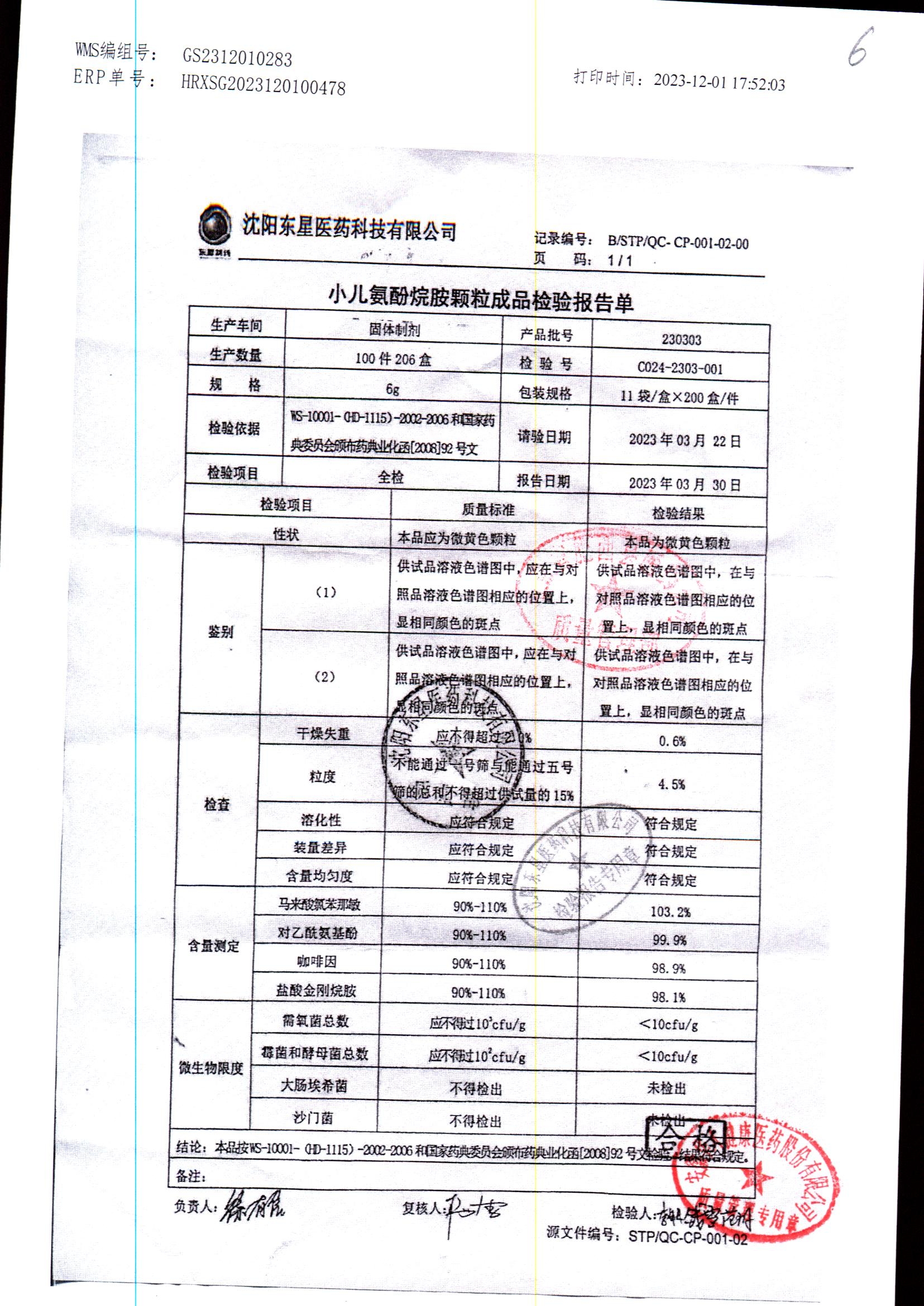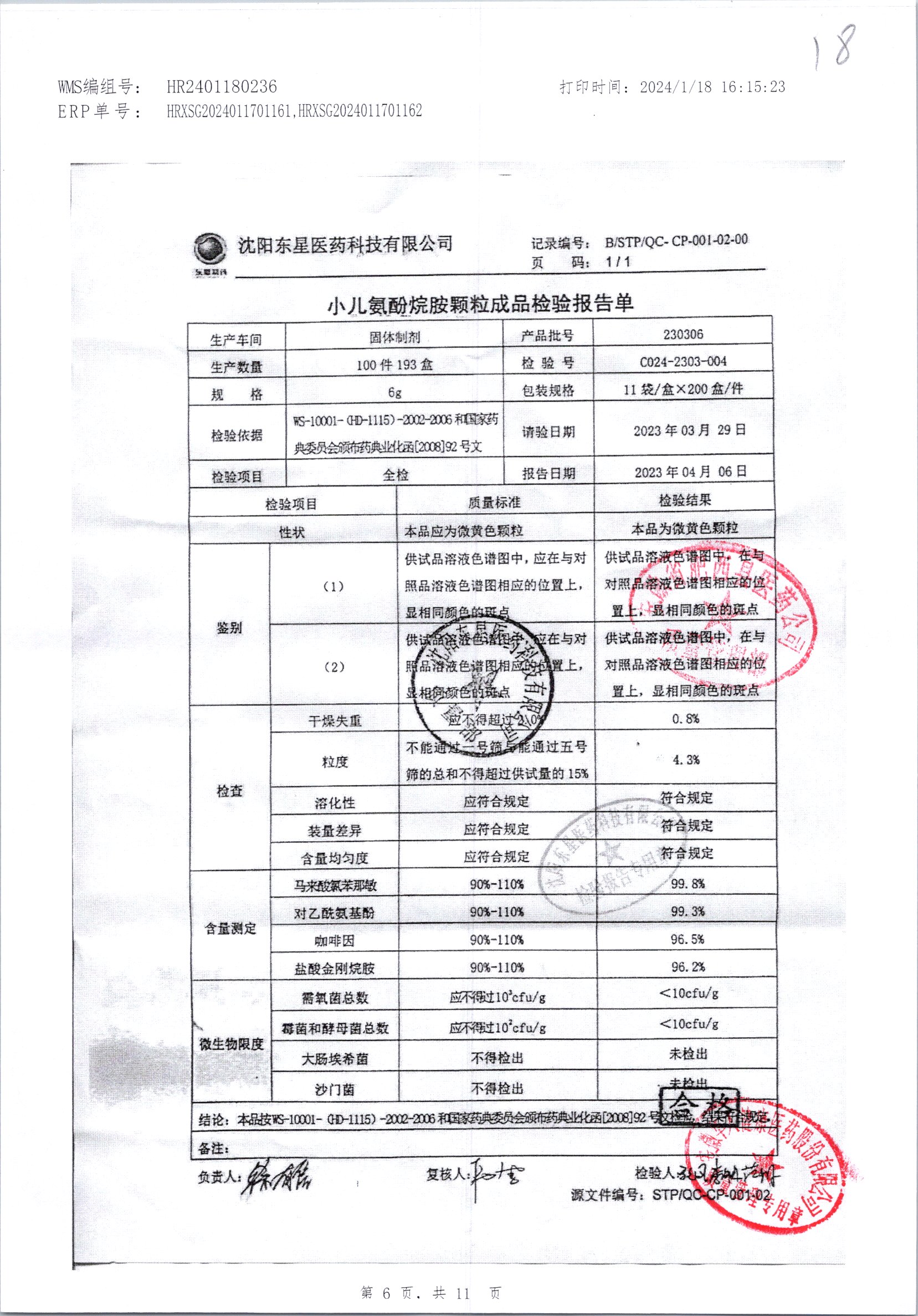 | 小兒氨酚烷胺顆粒 | 6g*11袋 | 230307 | 查看詳情 |