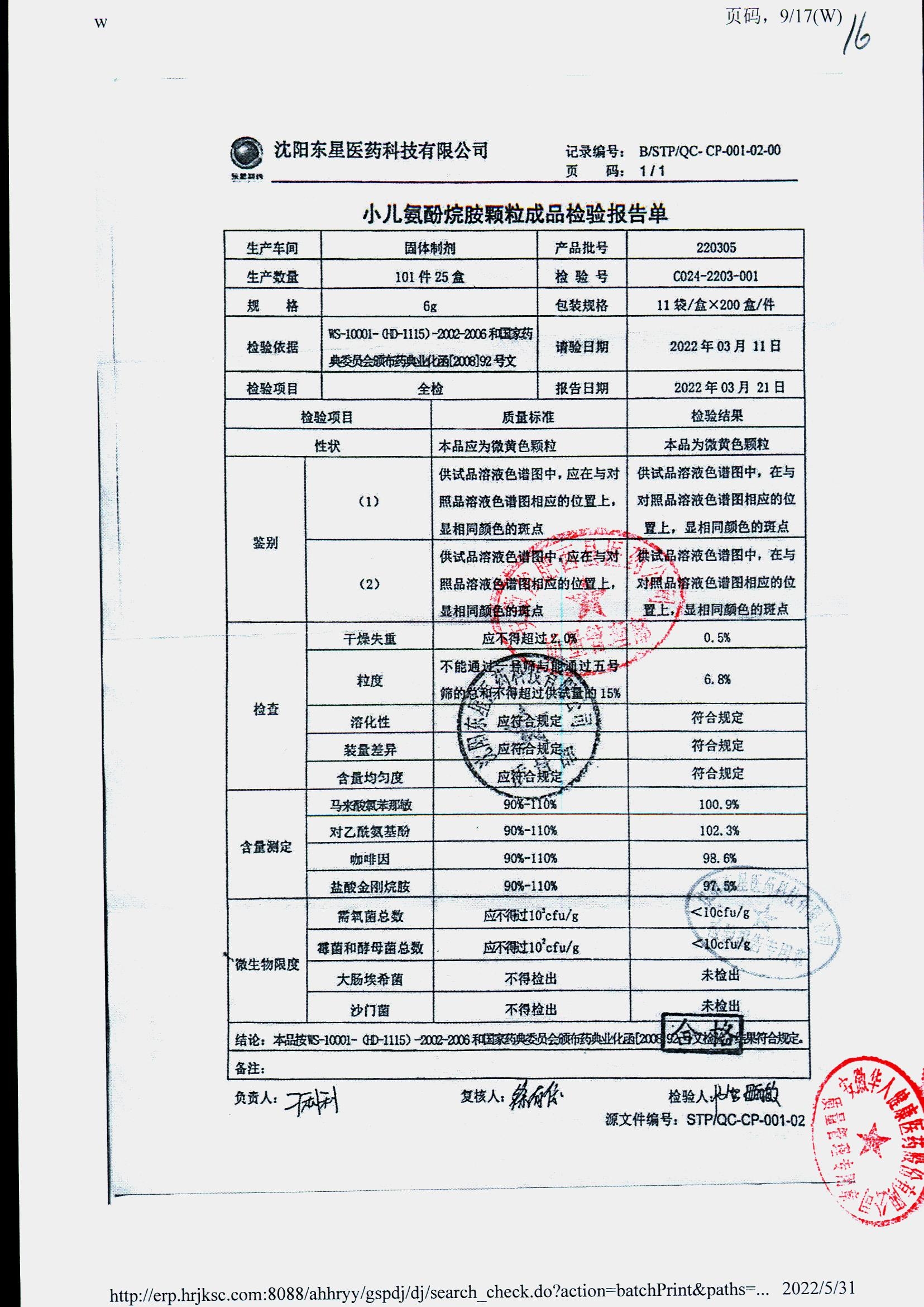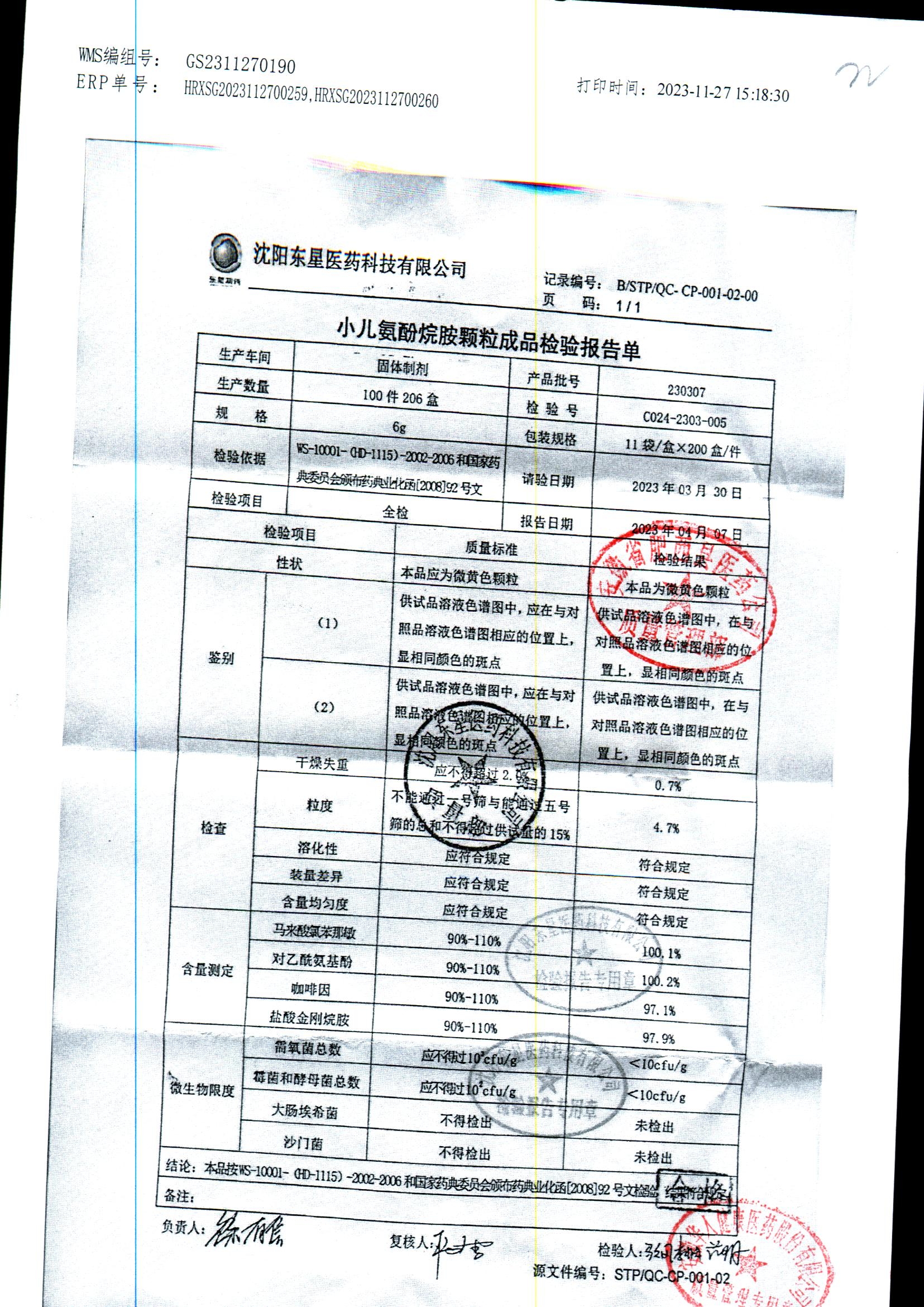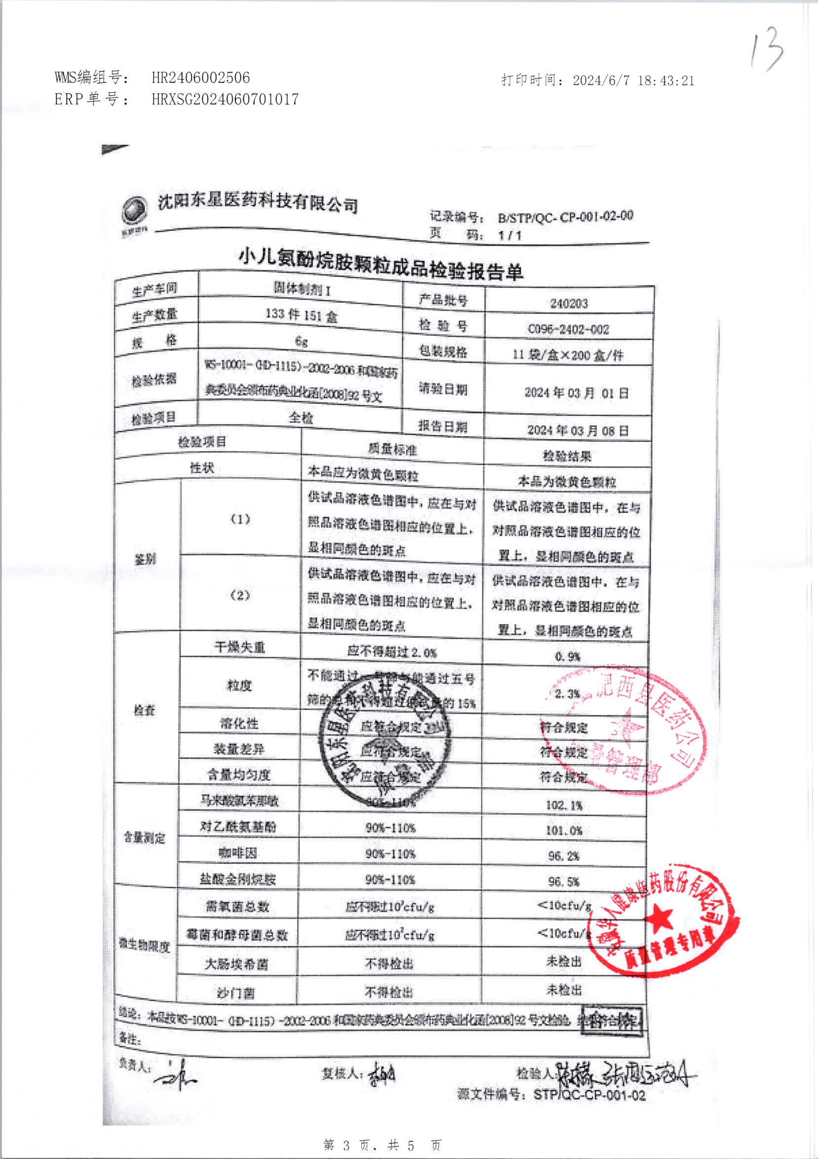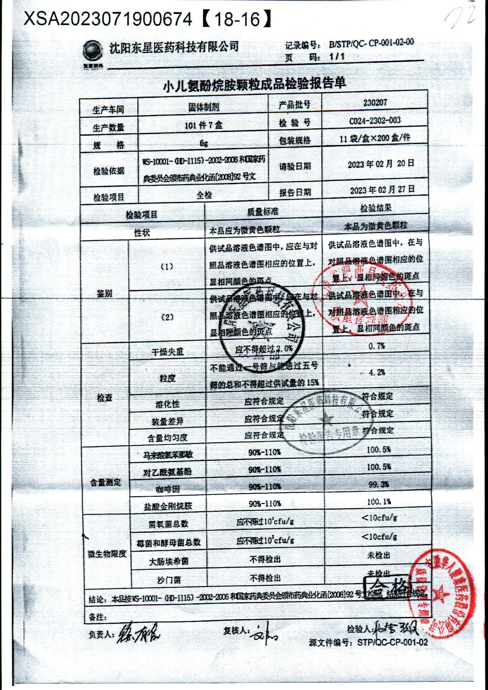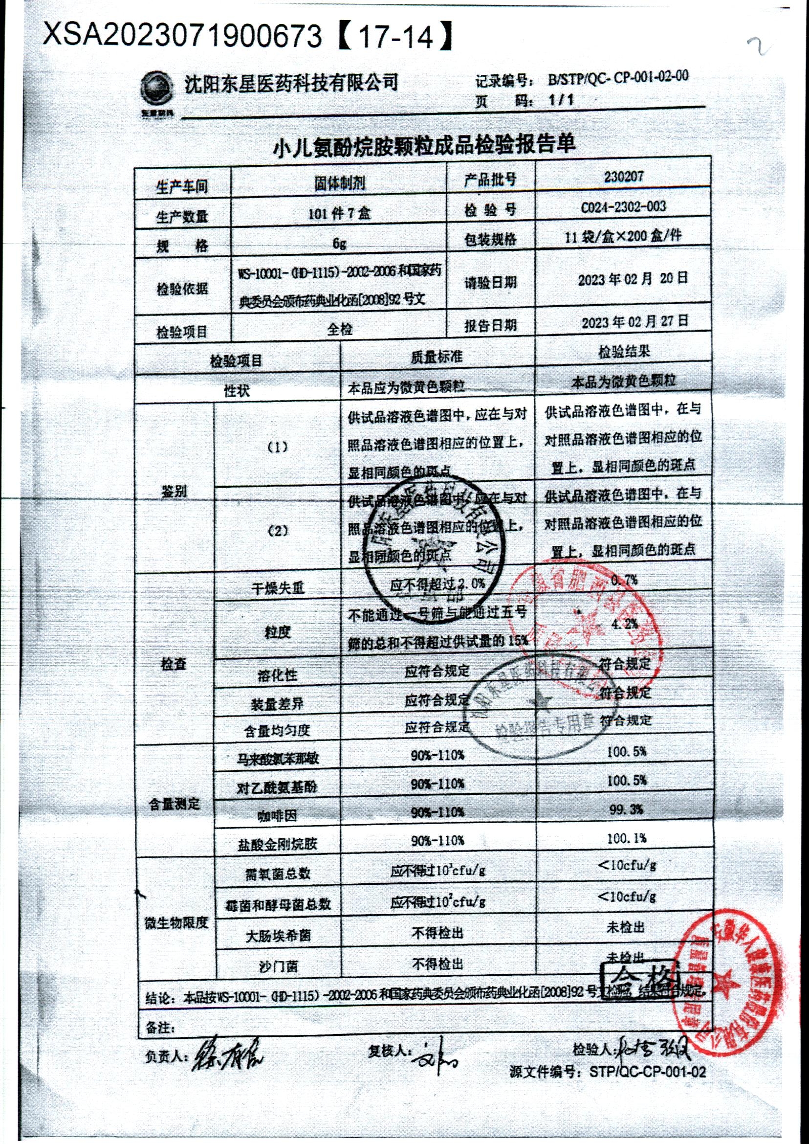 | 小兒氨酚烷胺顆粒 | 6g*11袋 | 230307 | 查看詳情 |