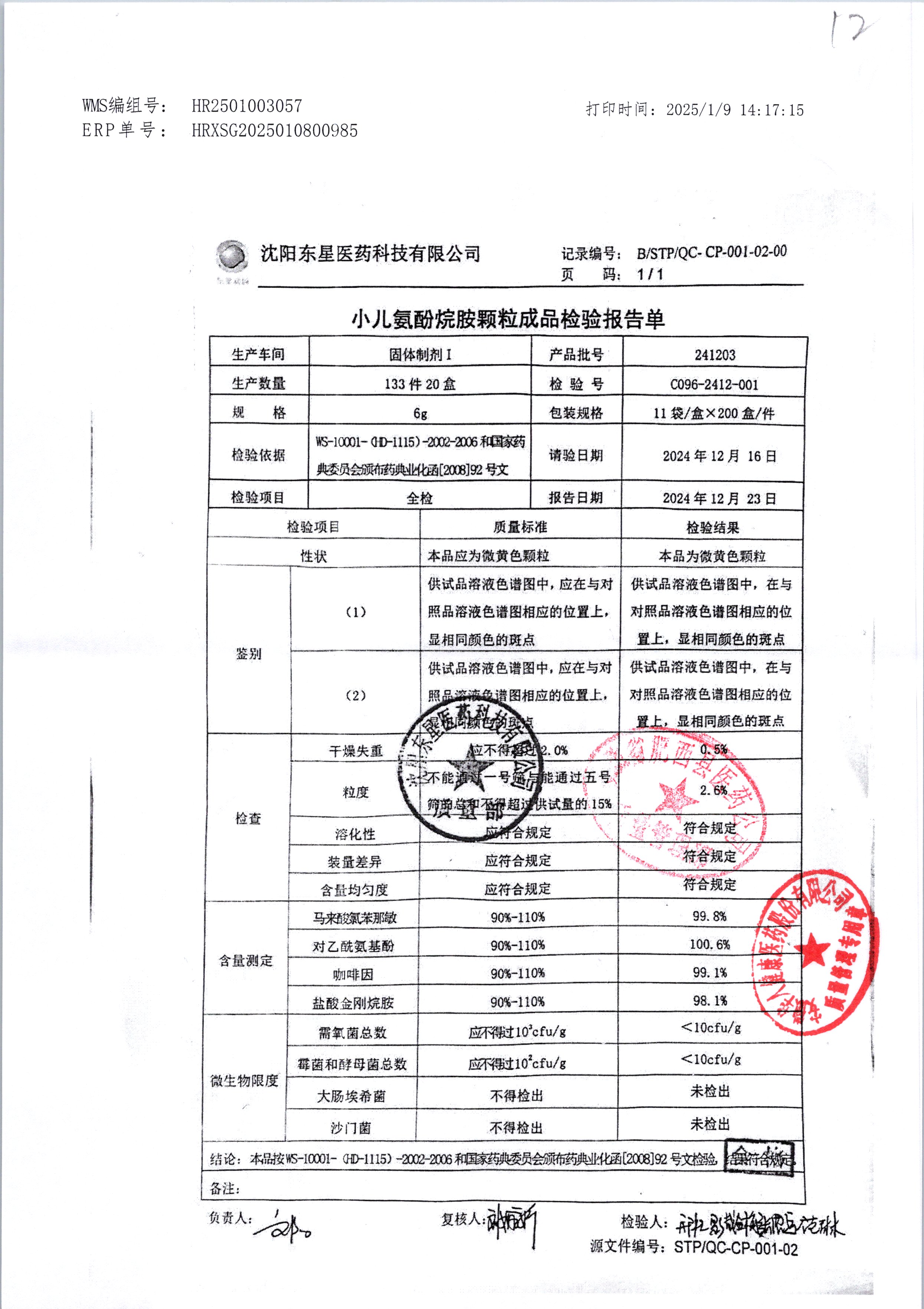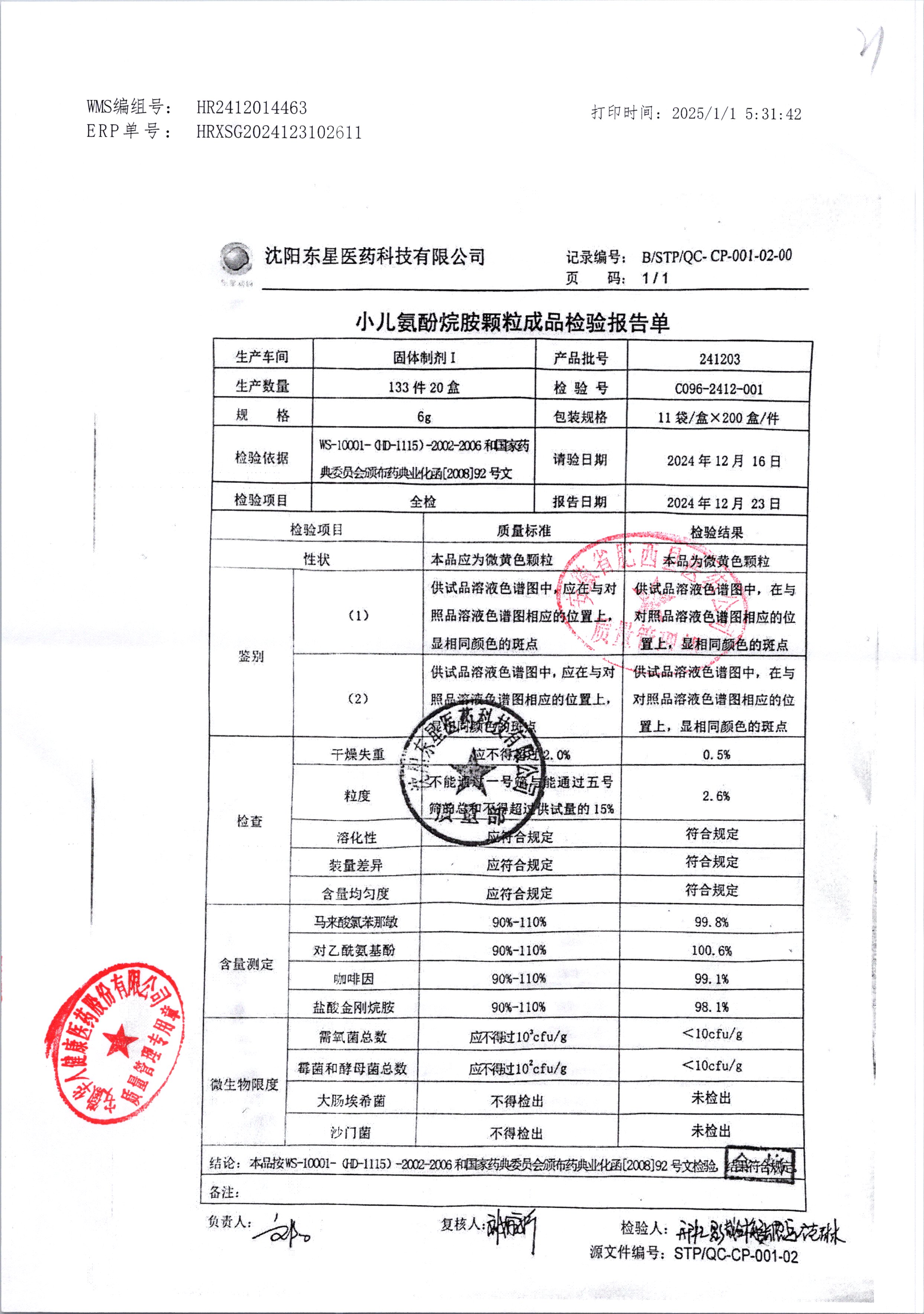 | 小兒氨酚烷胺顆粒 | 6g*11袋 | 241203 | 查看詳情 |