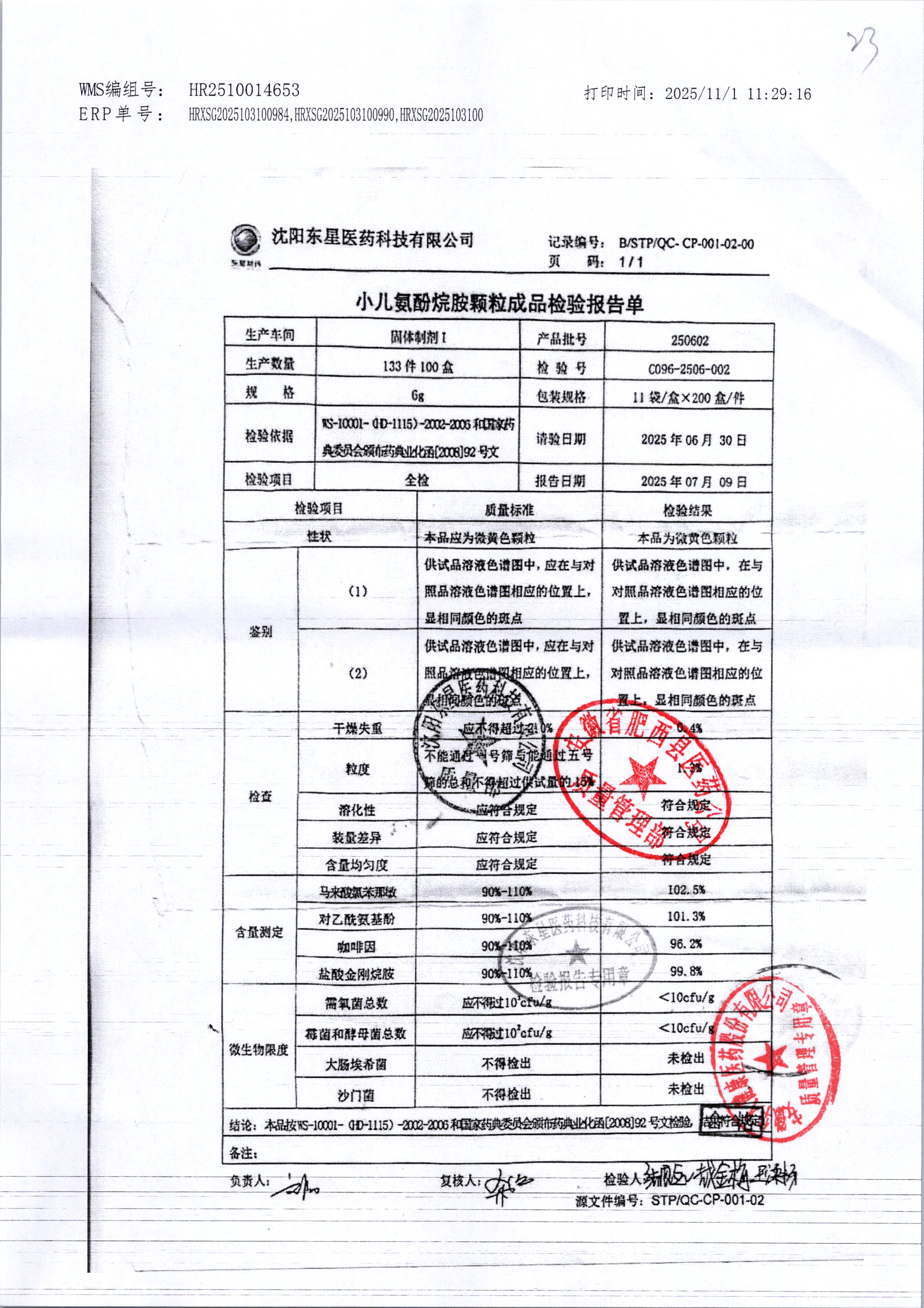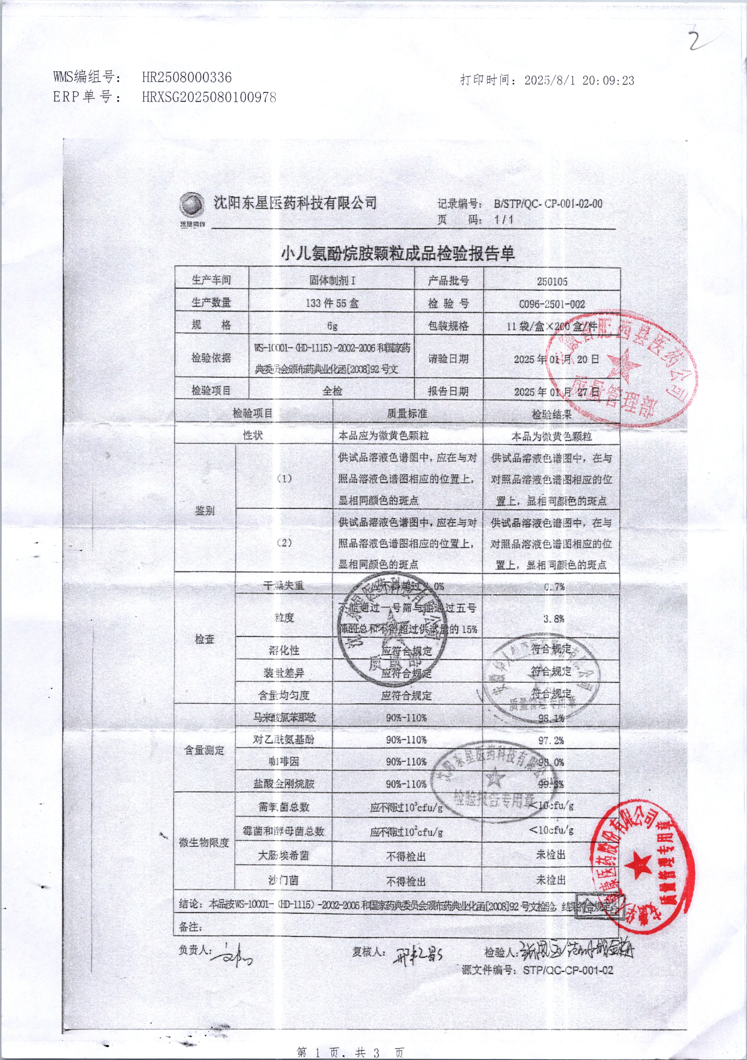 | 小兒氨酚烷胺顆粒 | 6g*11袋 | 250602 | 查看詳情 |
