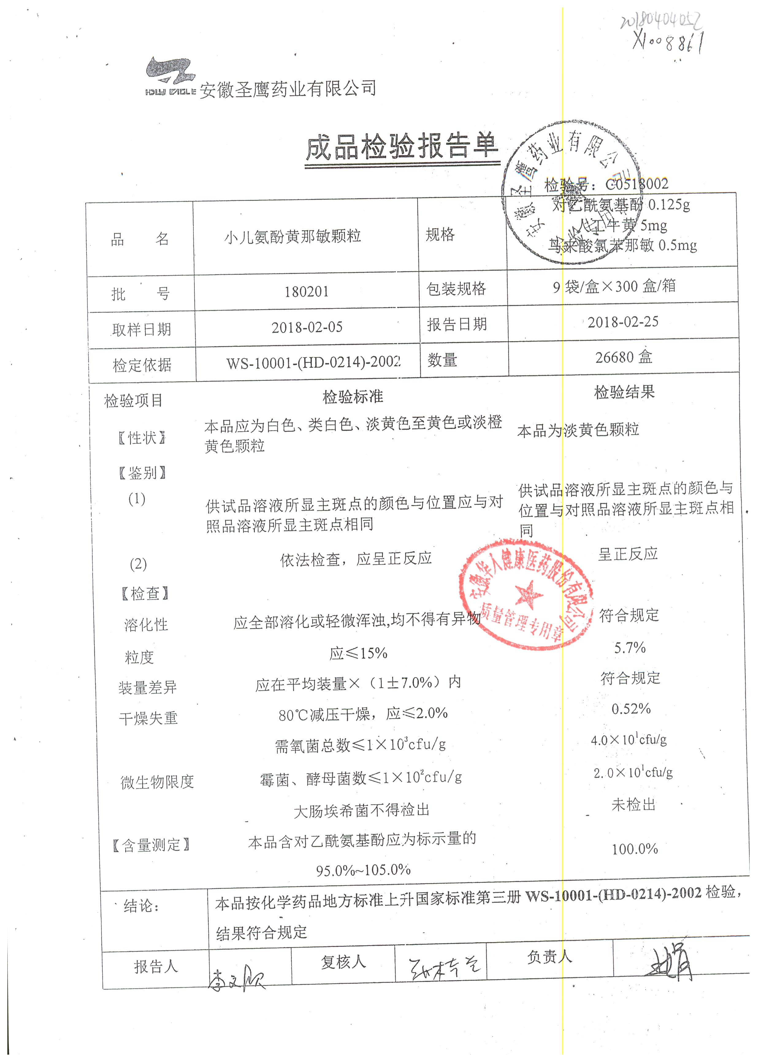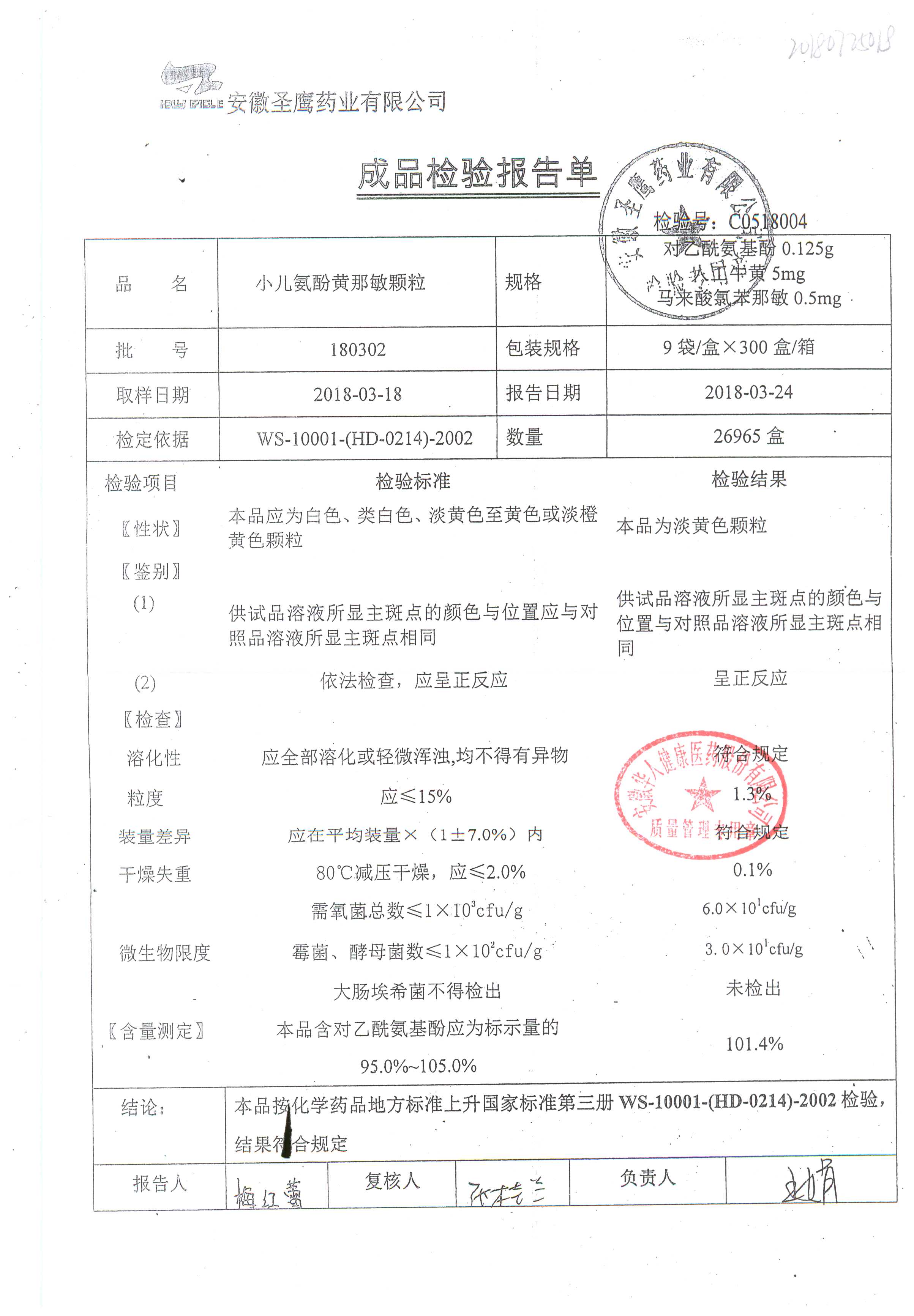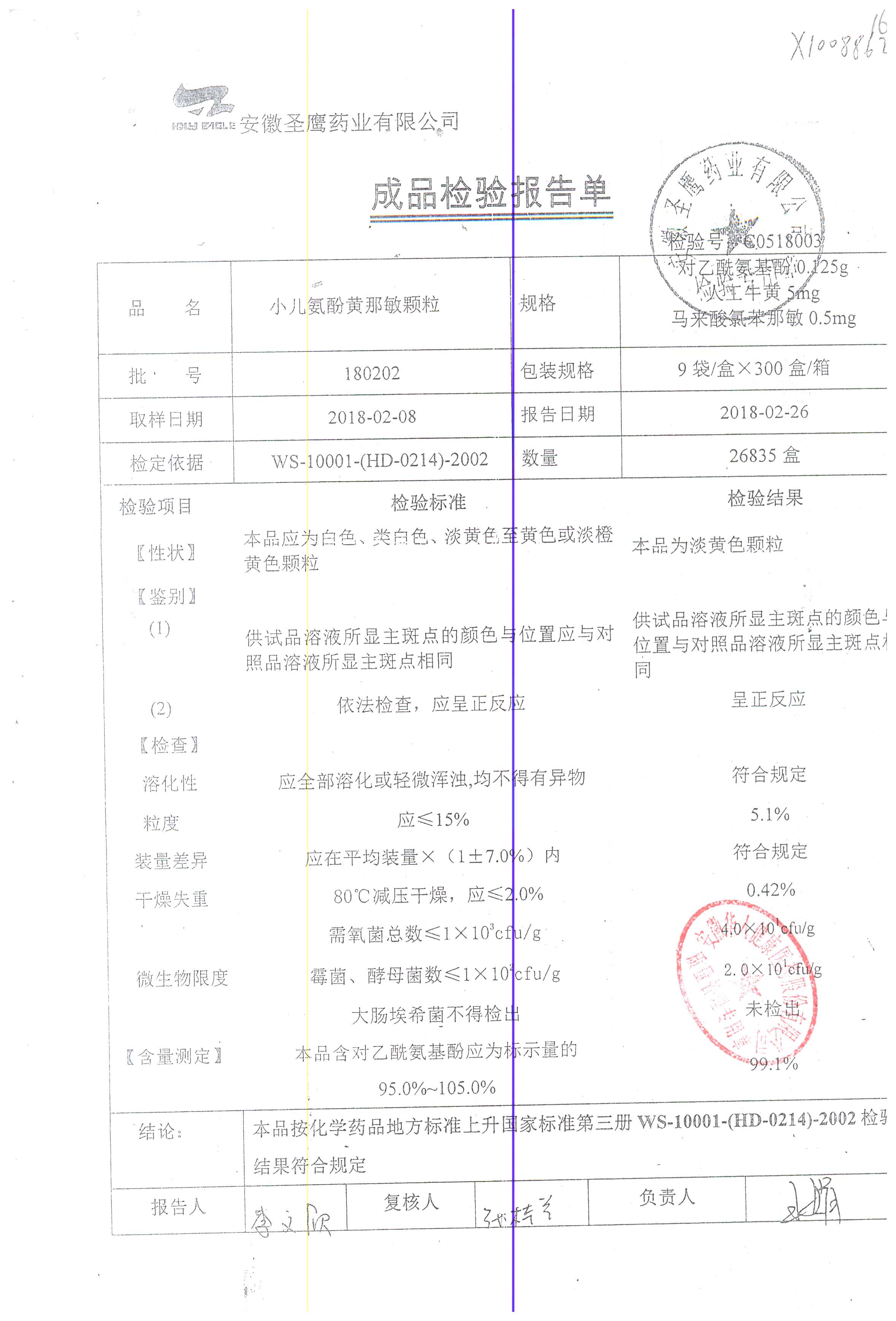 | 小兒氨酚黃那敏顆粒 | 9袋 | 180302 | 查看詳情 |
