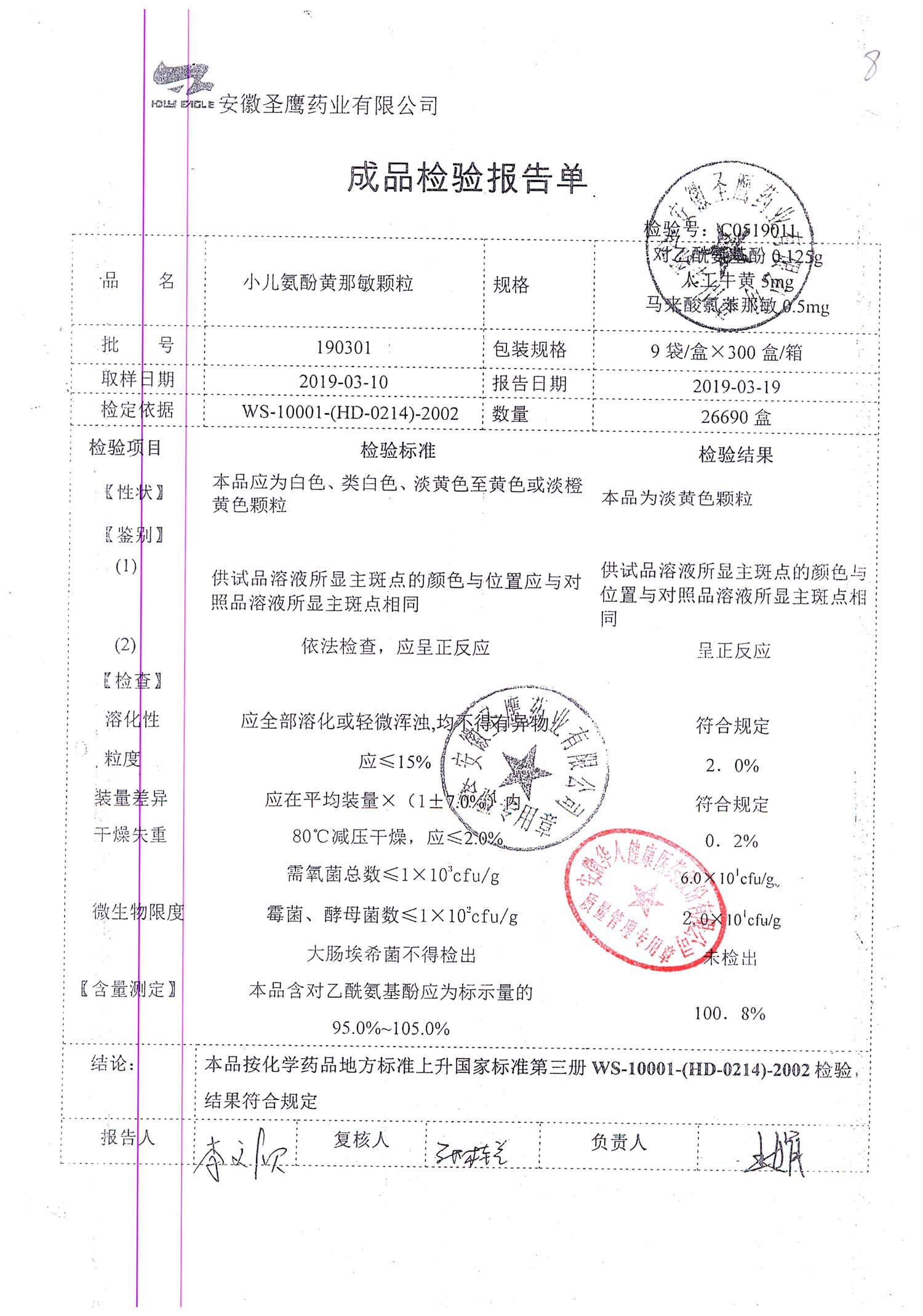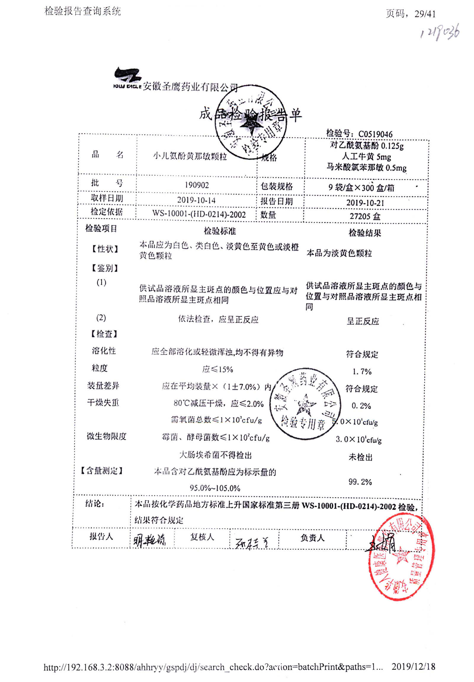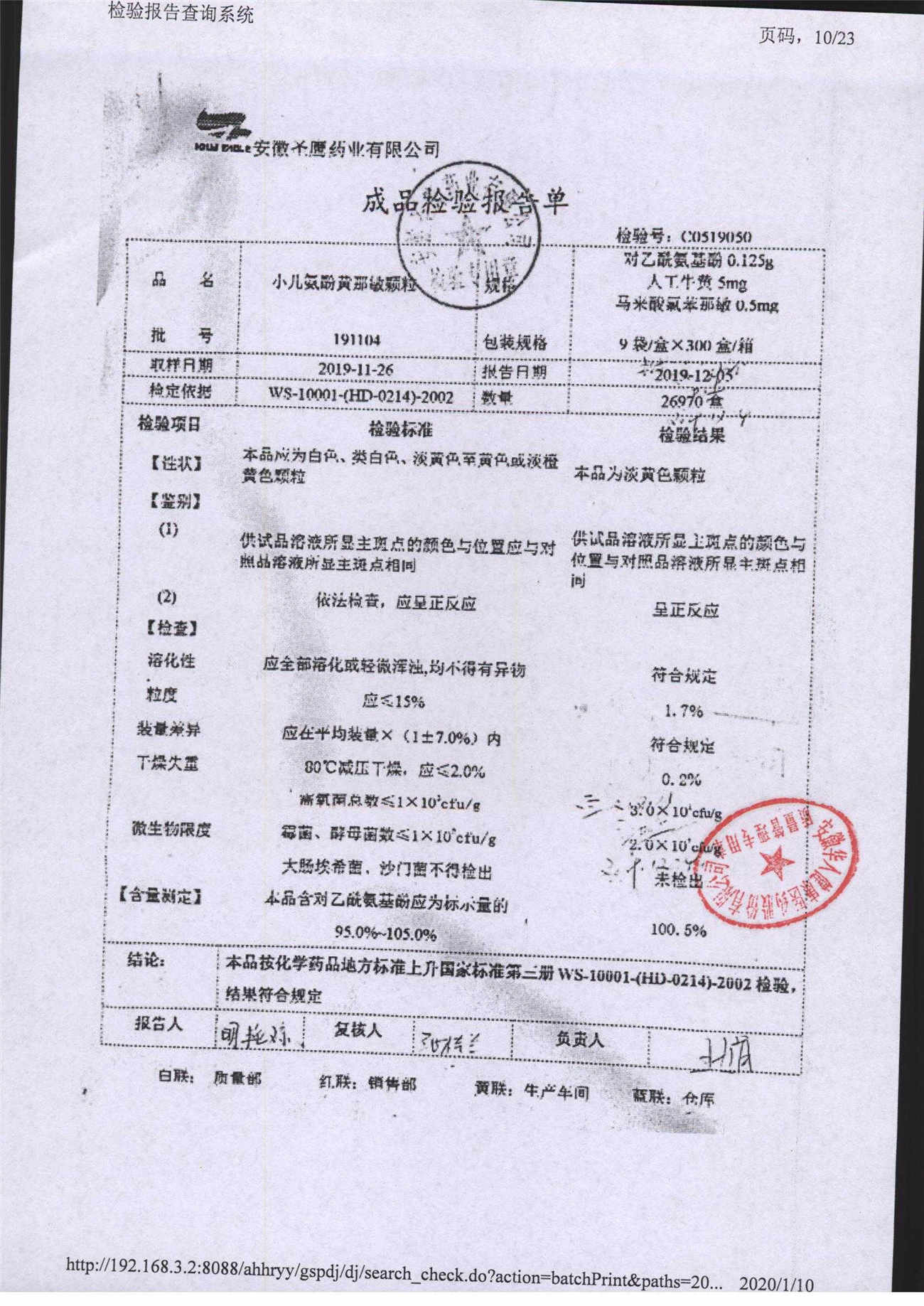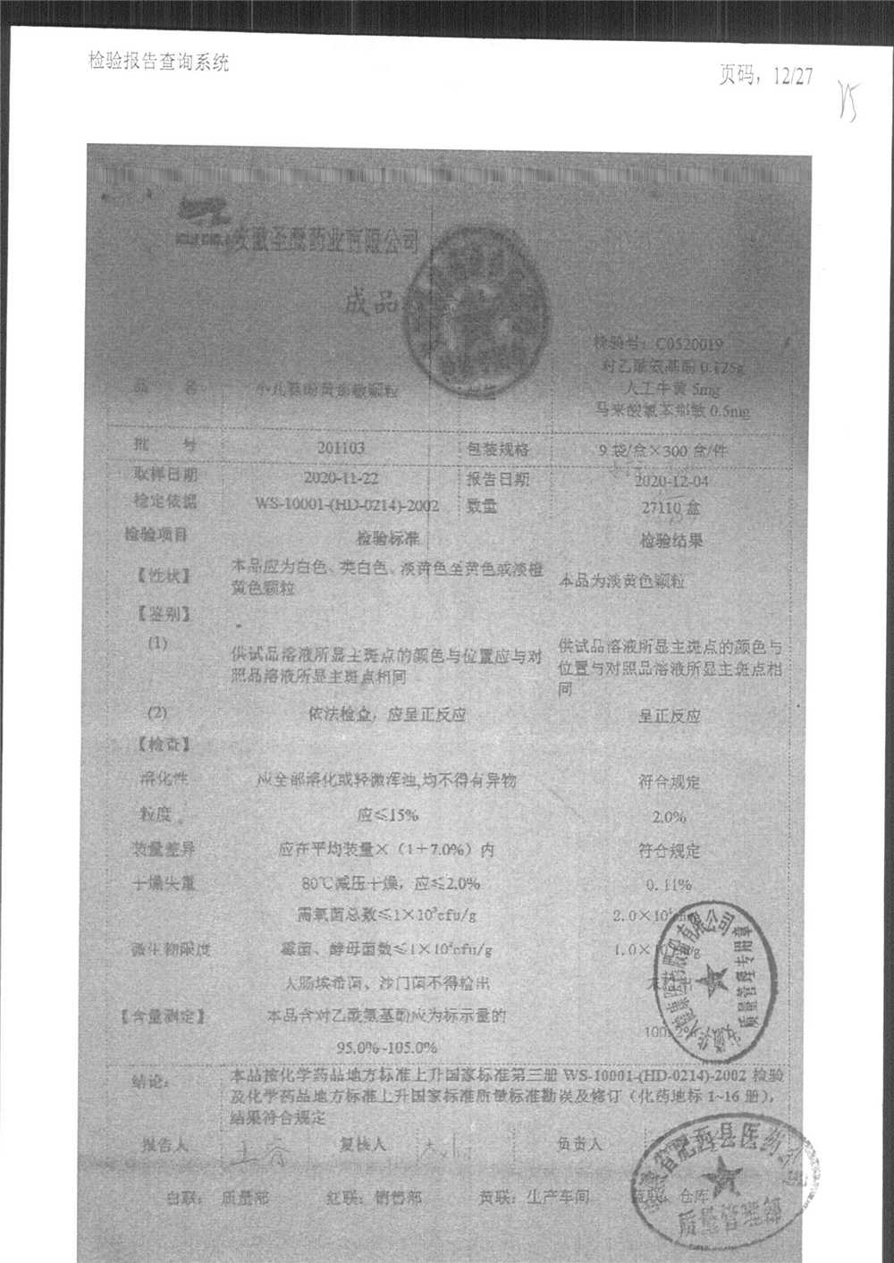 | 小兒氨酚黃那敏顆粒 | 9袋 | 190802 | 查看詳情 |