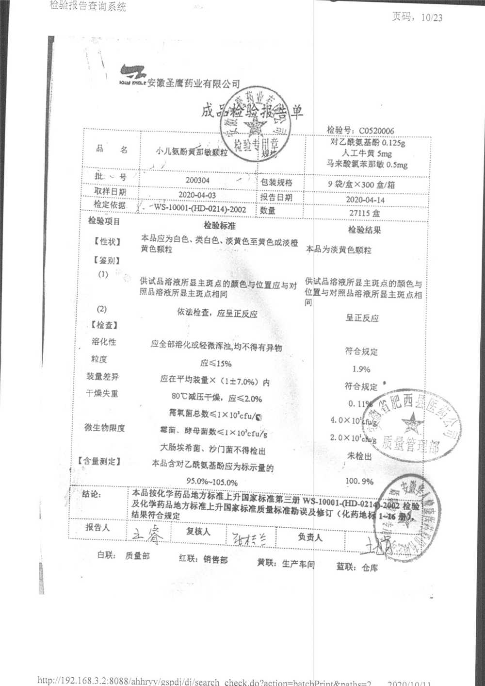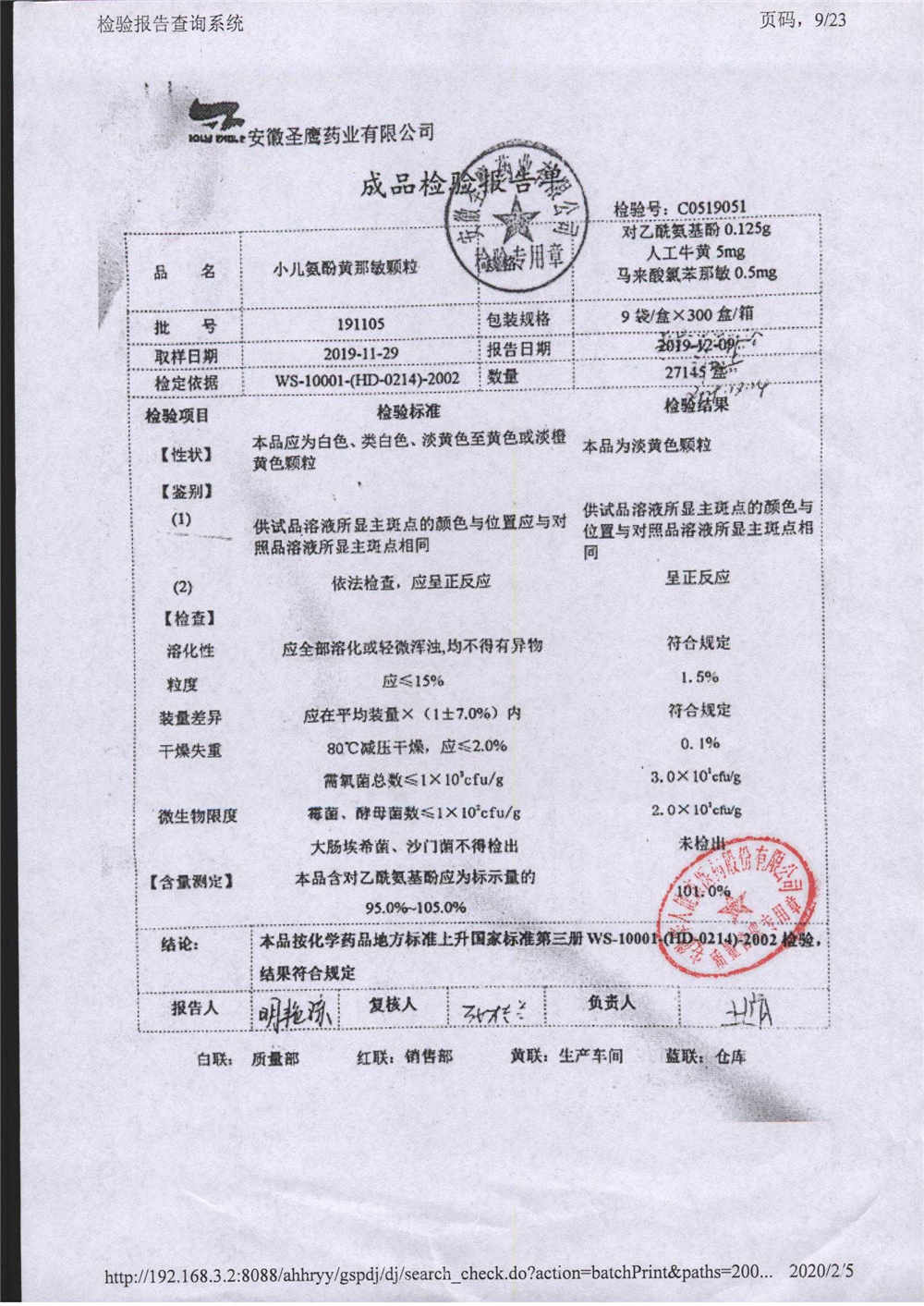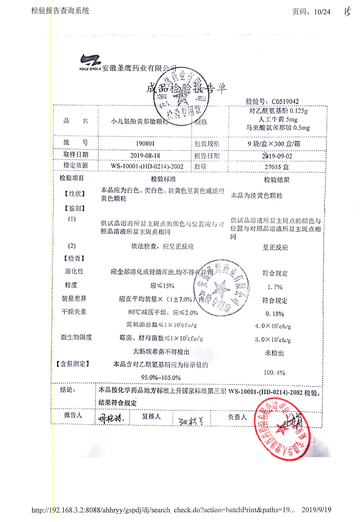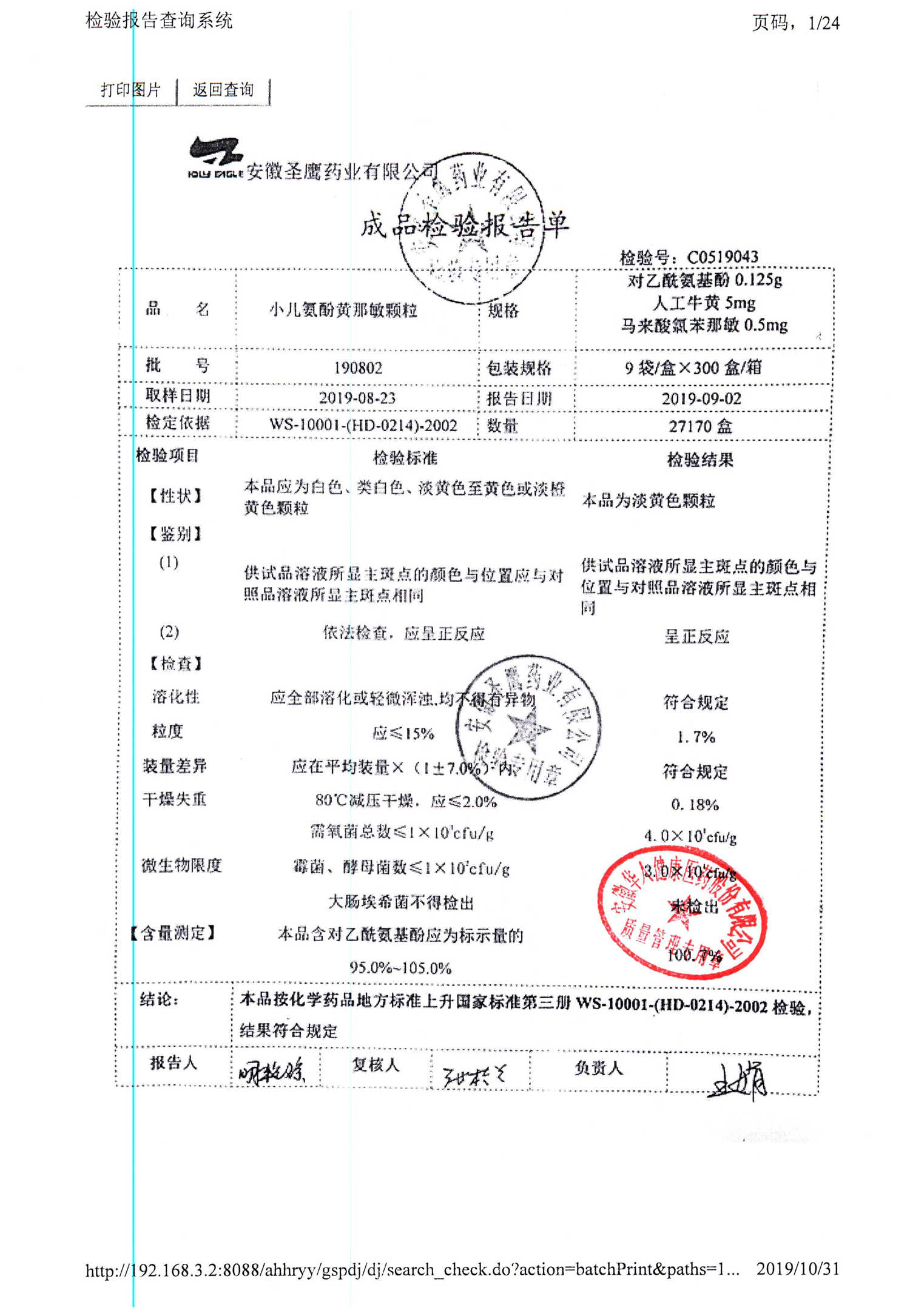 | 小兒氨酚黃那敏顆粒 | 9袋 | 190802 | 查看詳情 |