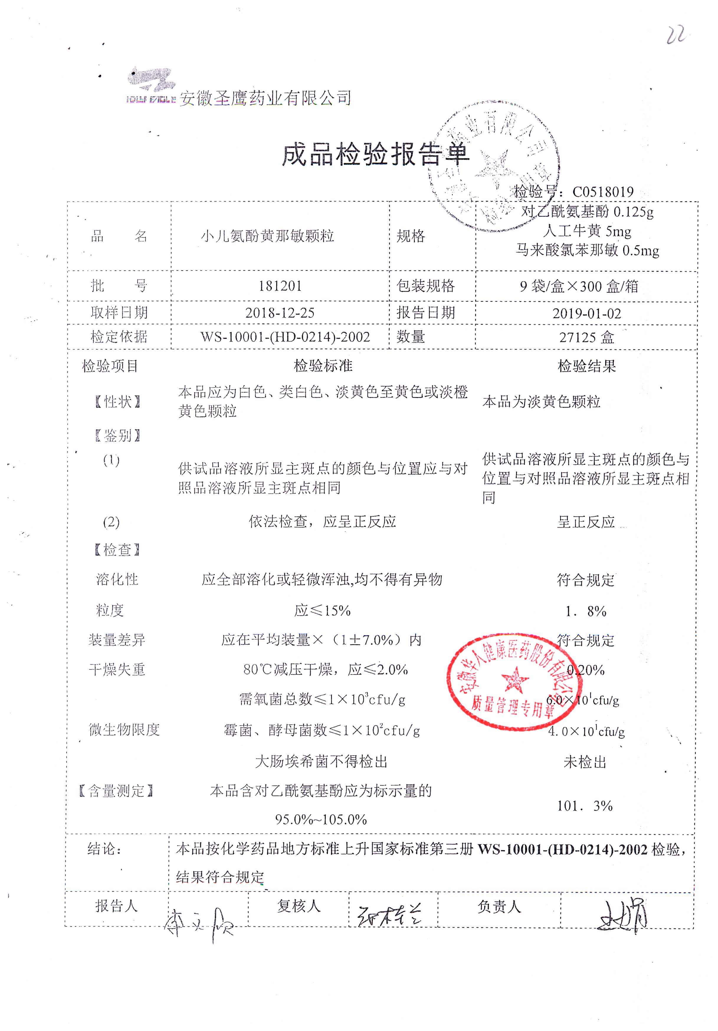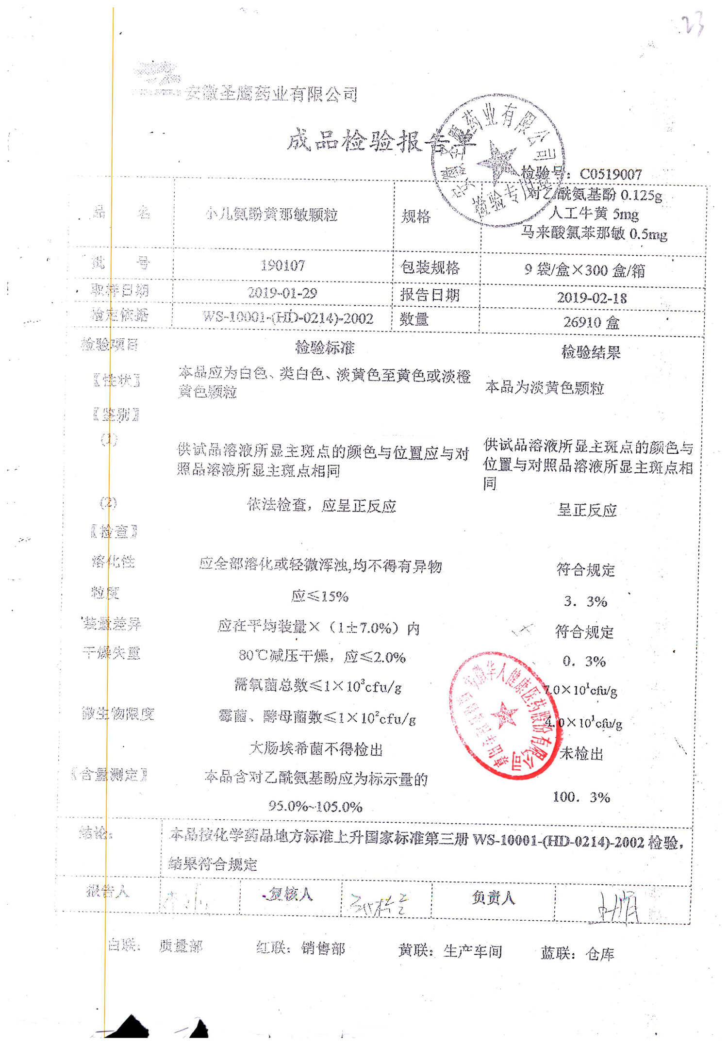 | 小兒氨酚黃那敏顆粒 | 9袋 | 190902 | 查看詳情 |