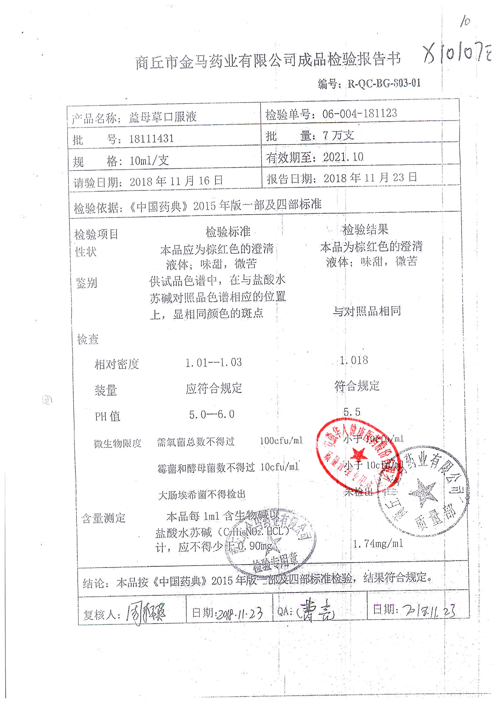 | 名稱 | 規(guī)格 | 批號 | 藥檢報告 |