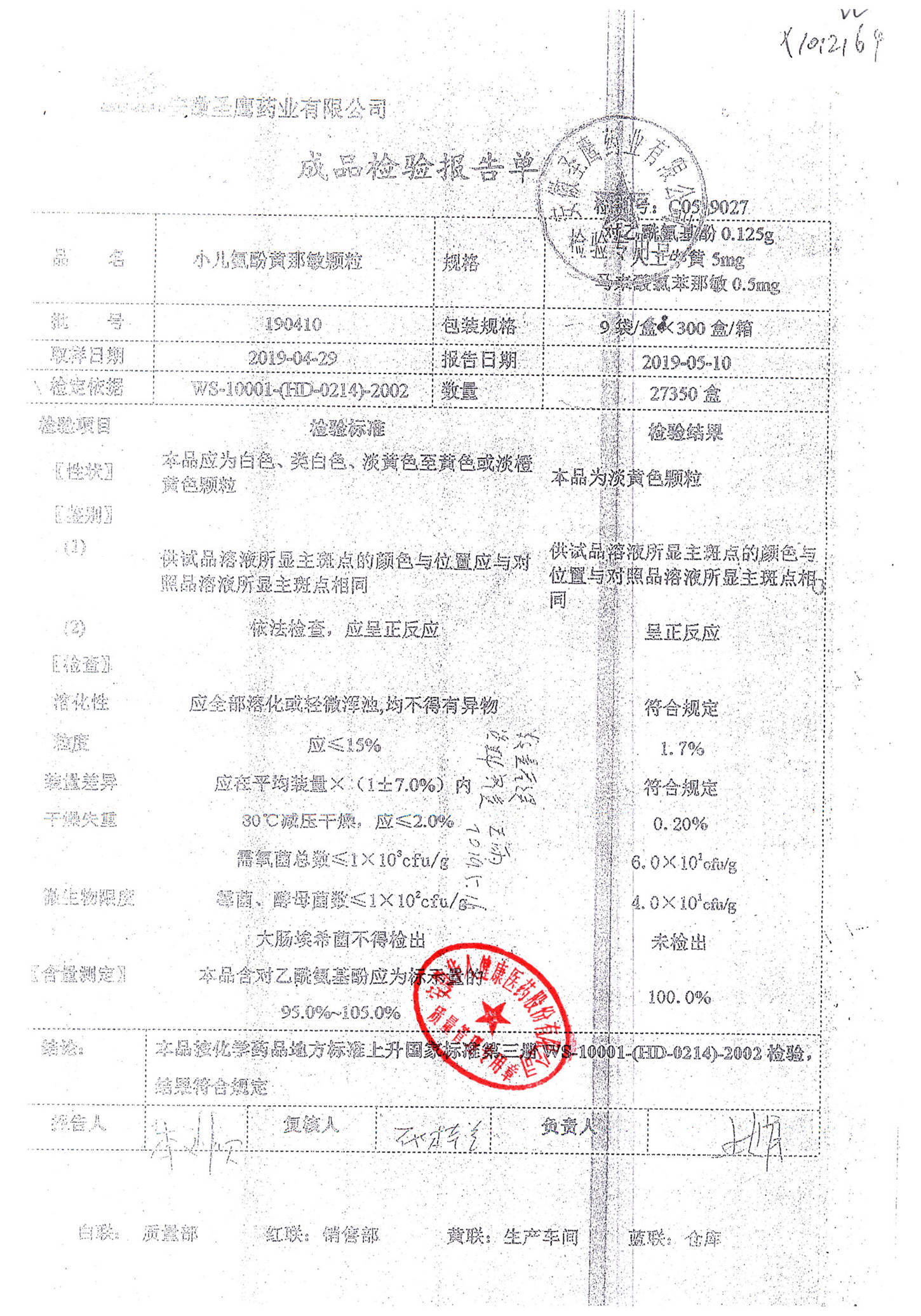 | 小兒氨酚黃那敏顆粒 | 9袋 | 190409 | 查看詳情 |