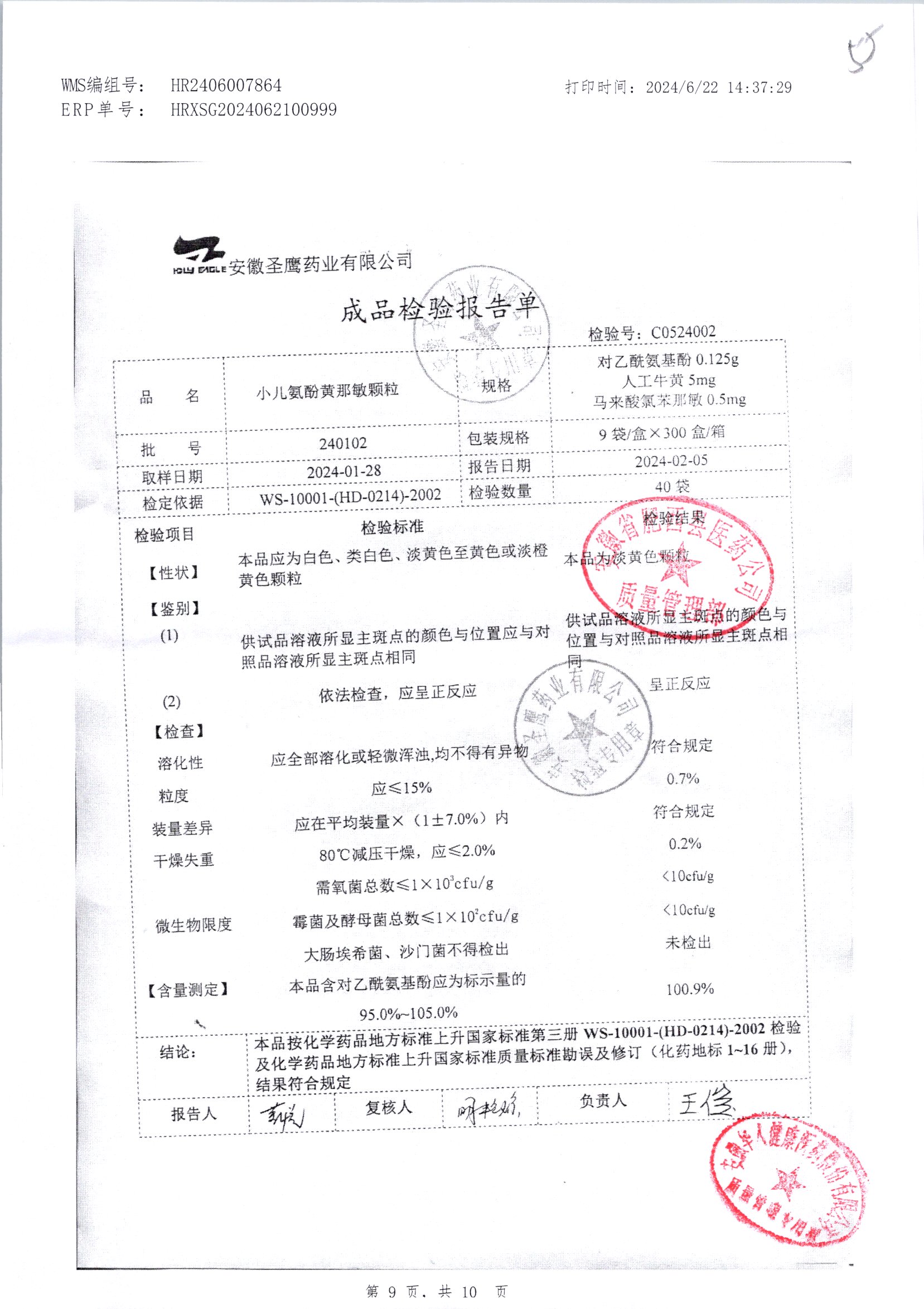 | 小兒氨酚黃那敏顆粒 | 9袋 | 200904 | 查看詳情 |