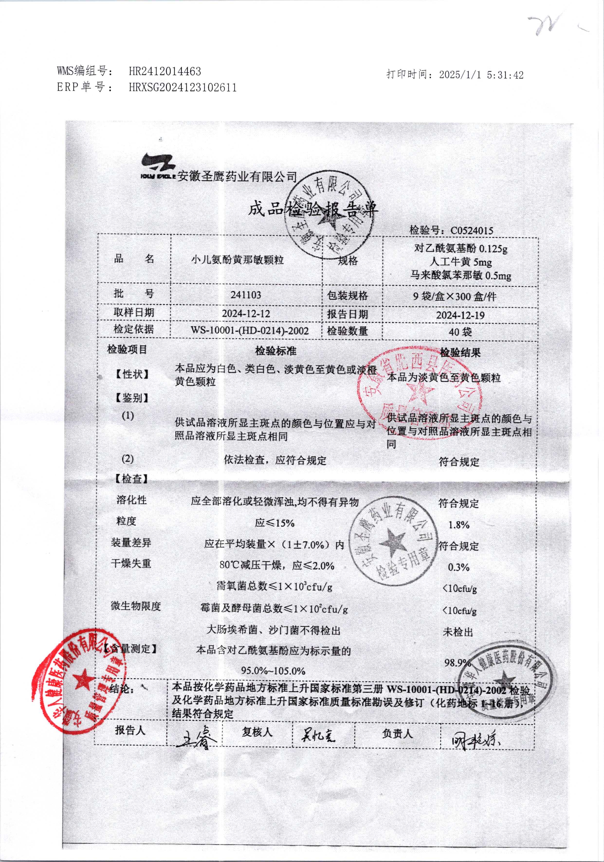 | 小兒氨酚黃那敏顆粒 | 9袋 | 191105 | 查看詳情 |