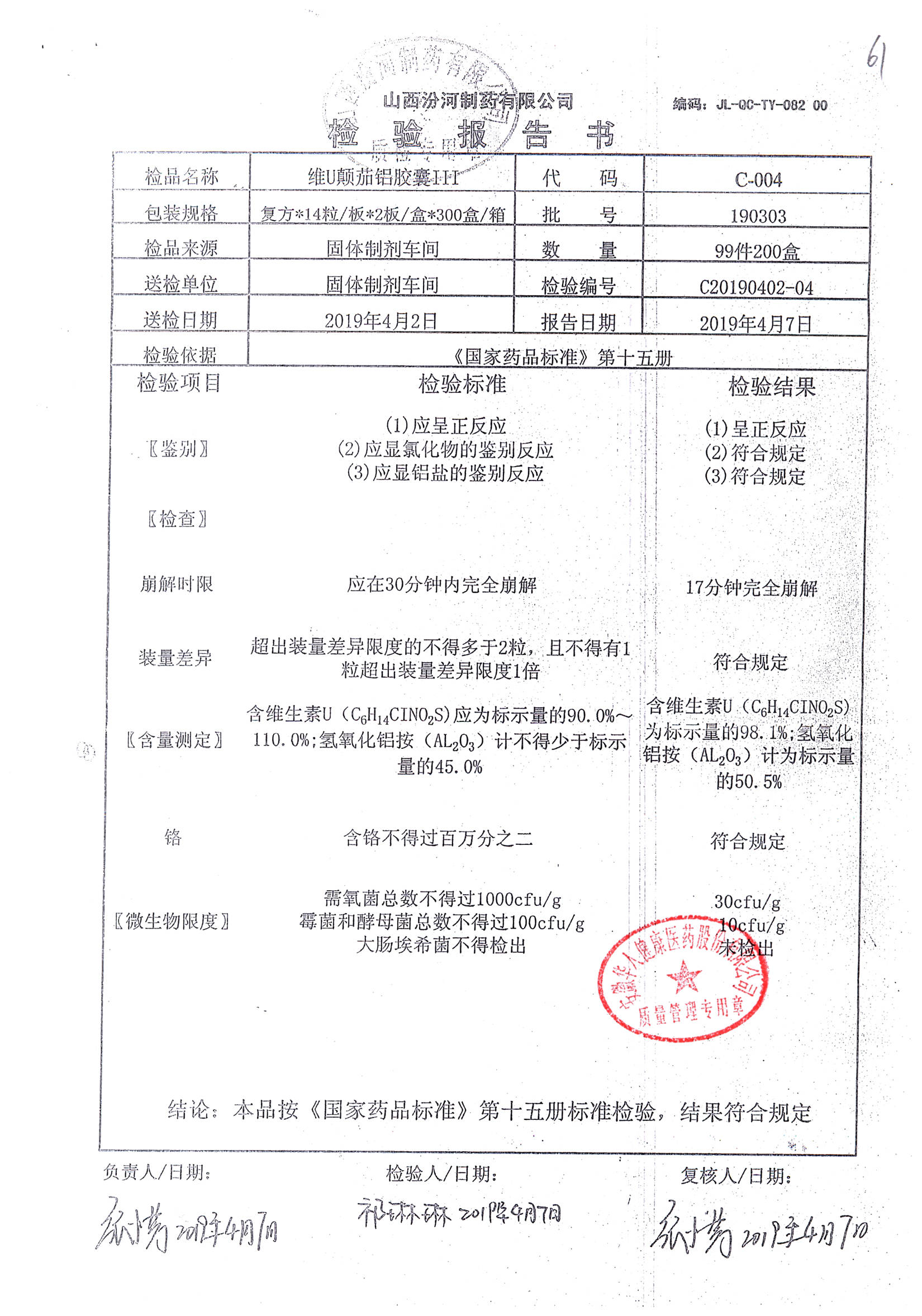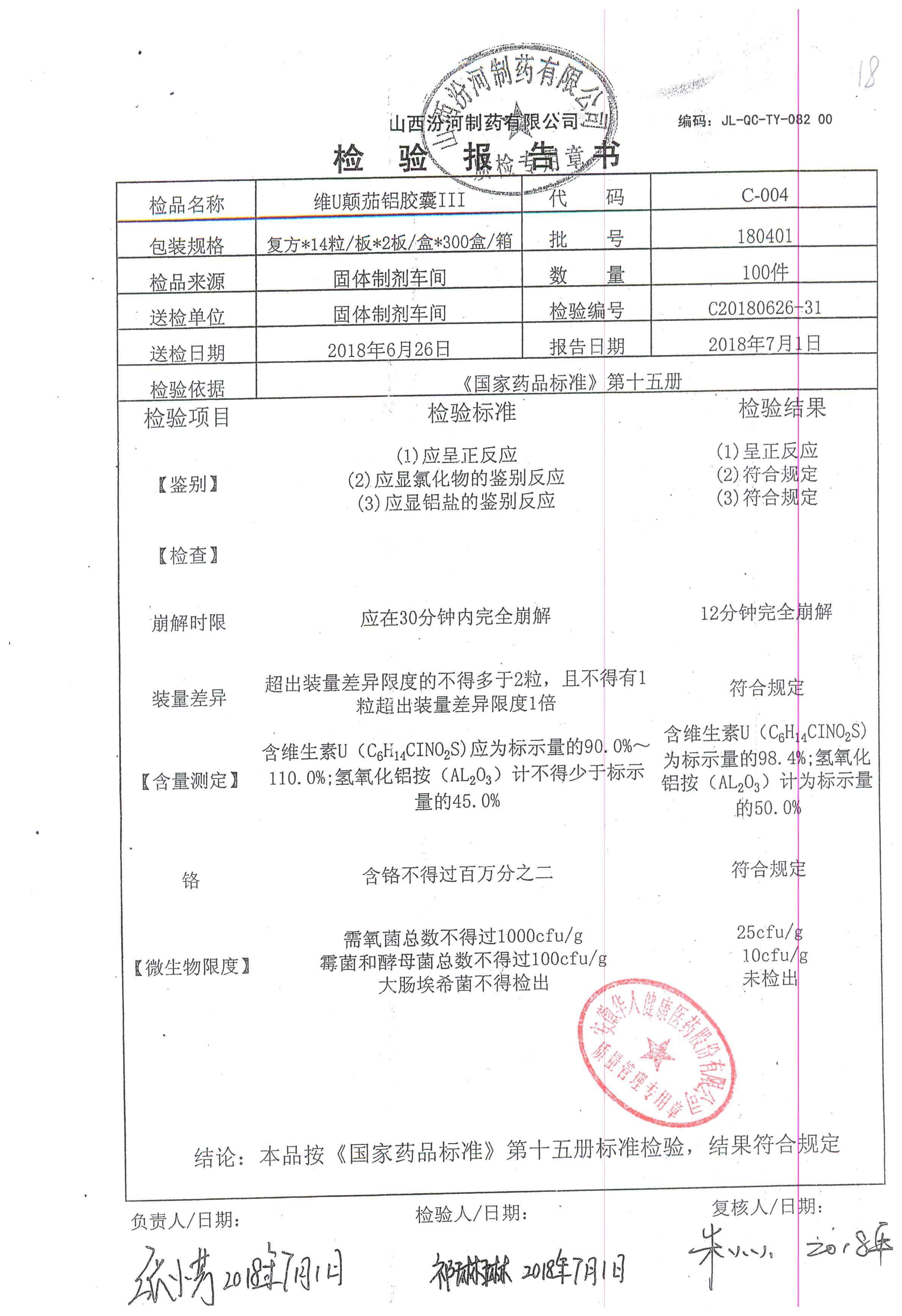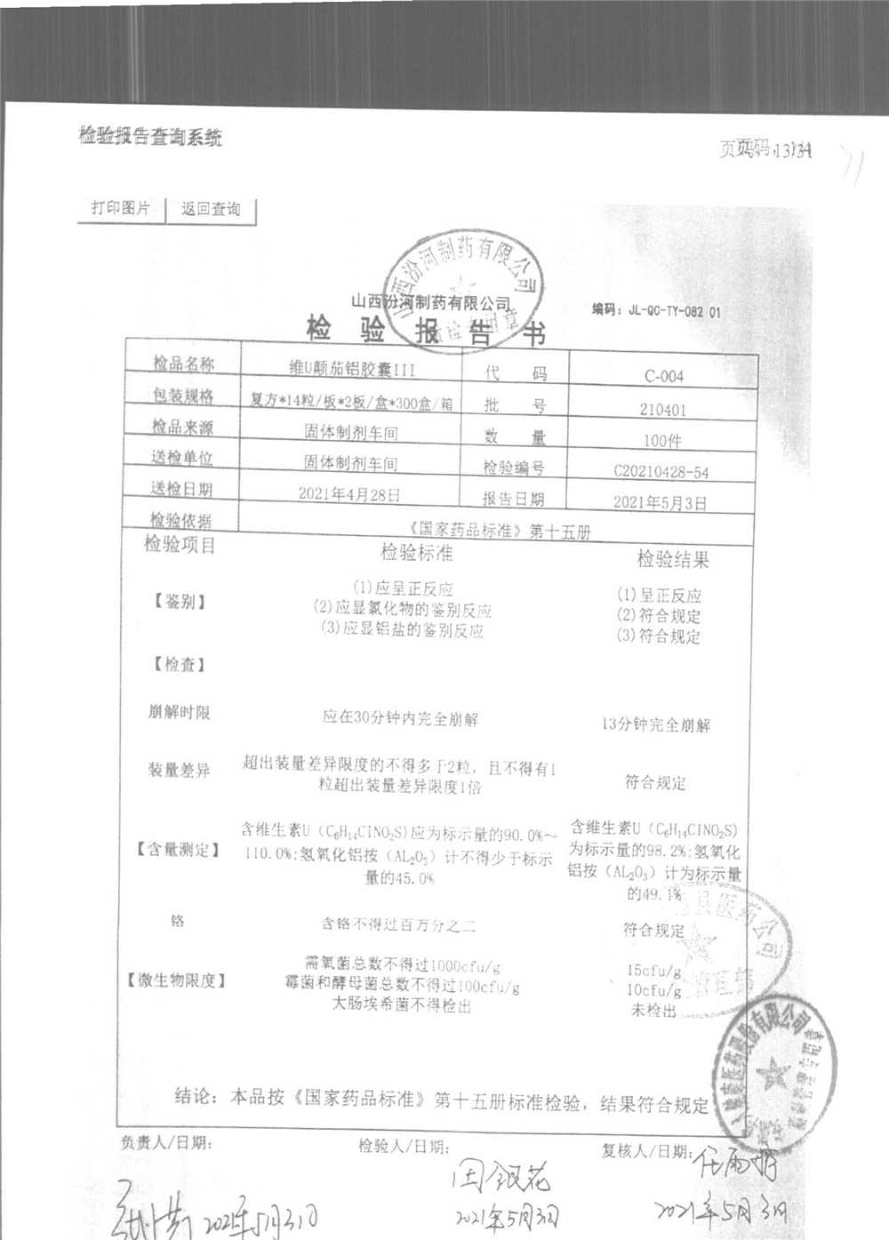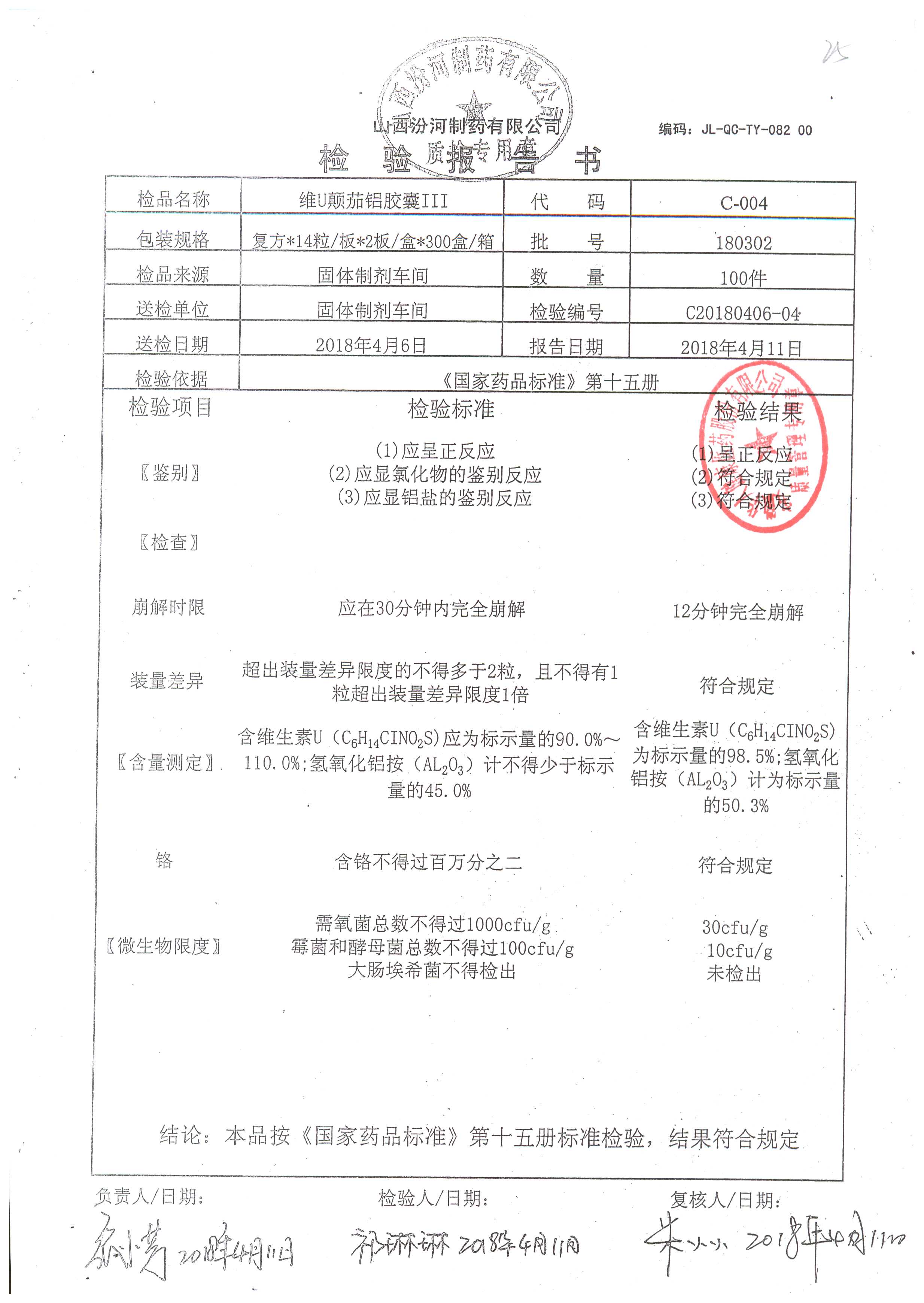 | 名稱 | 規(guī)格 | 批號 | 藥檢報(bào)告 |