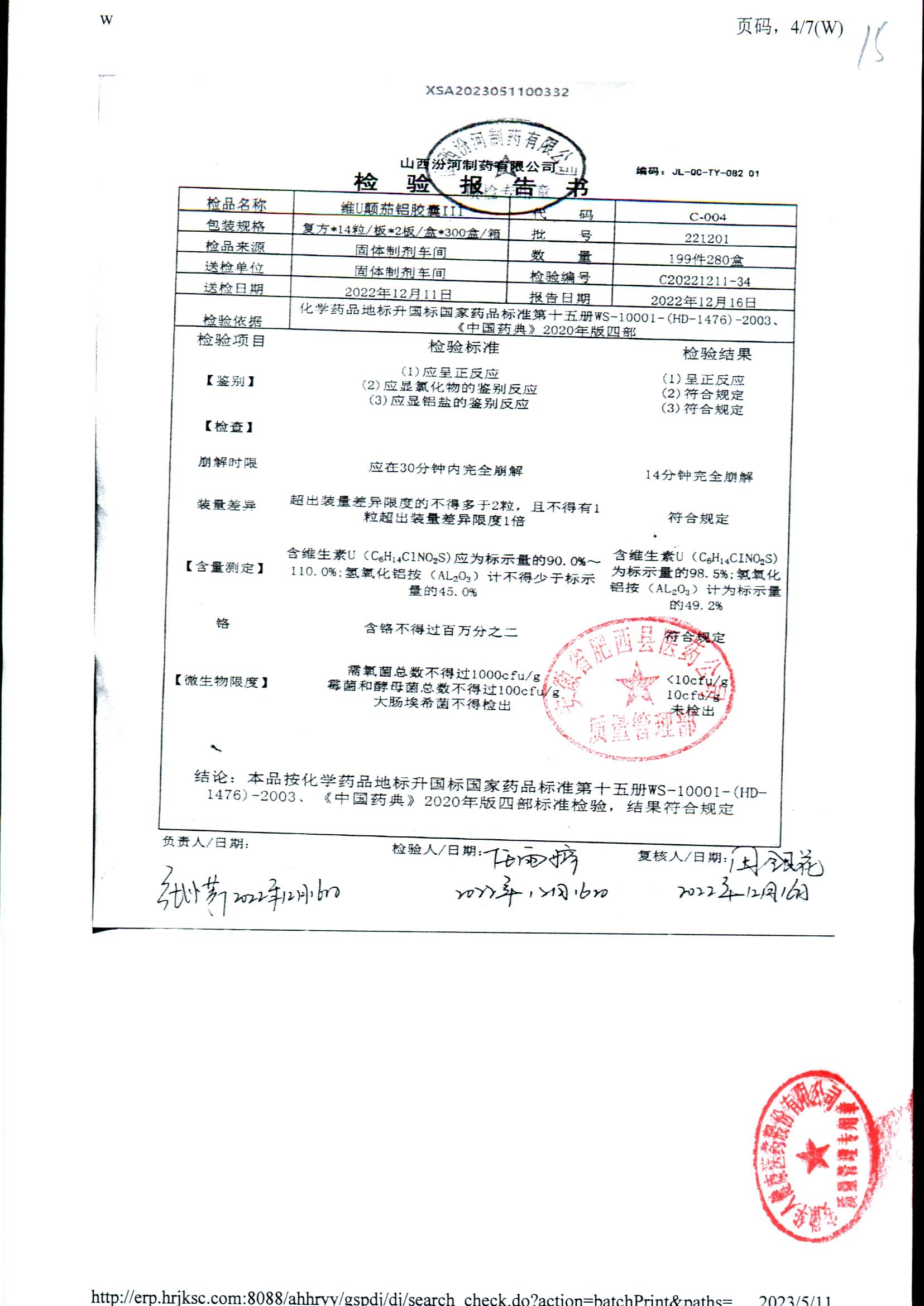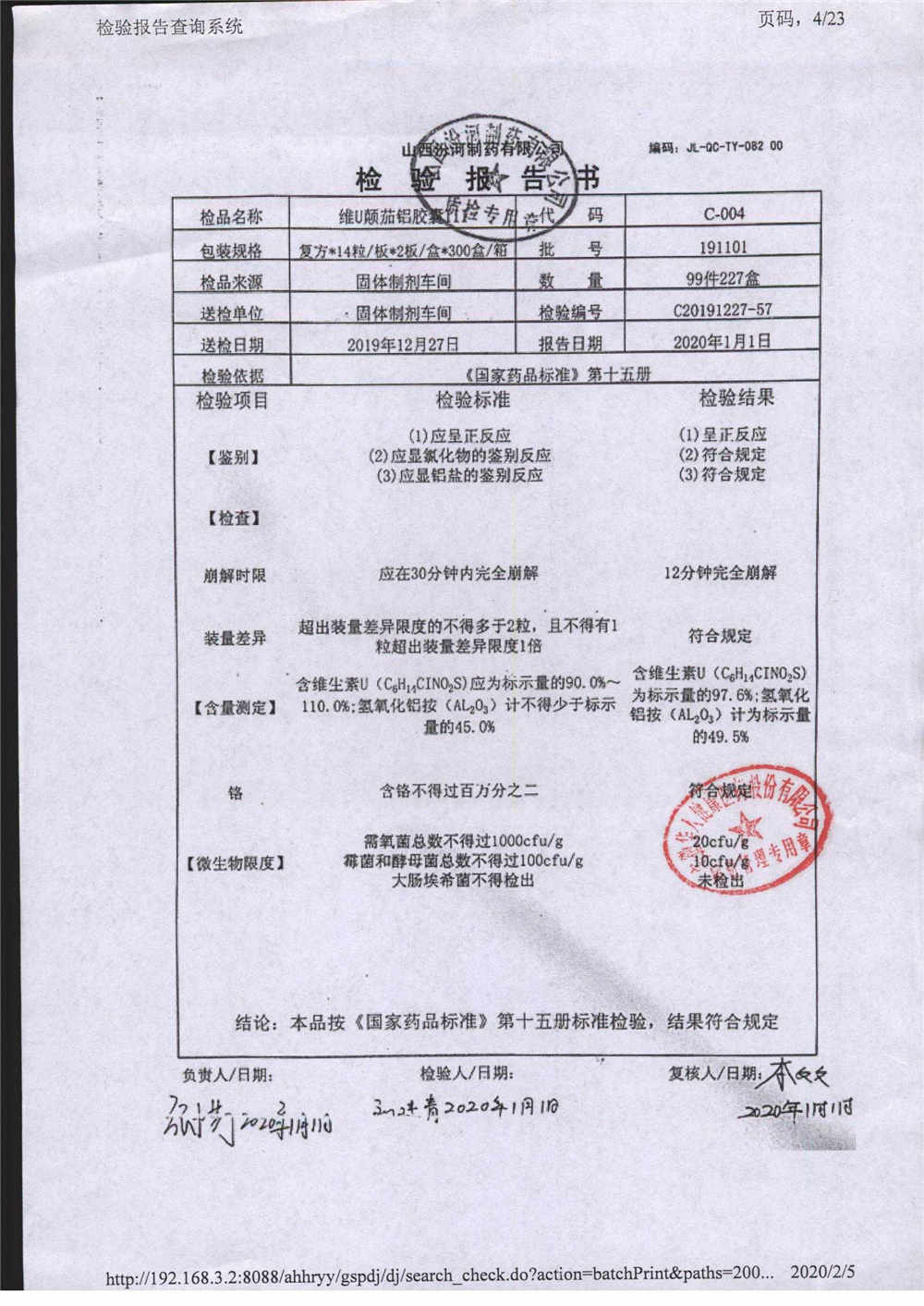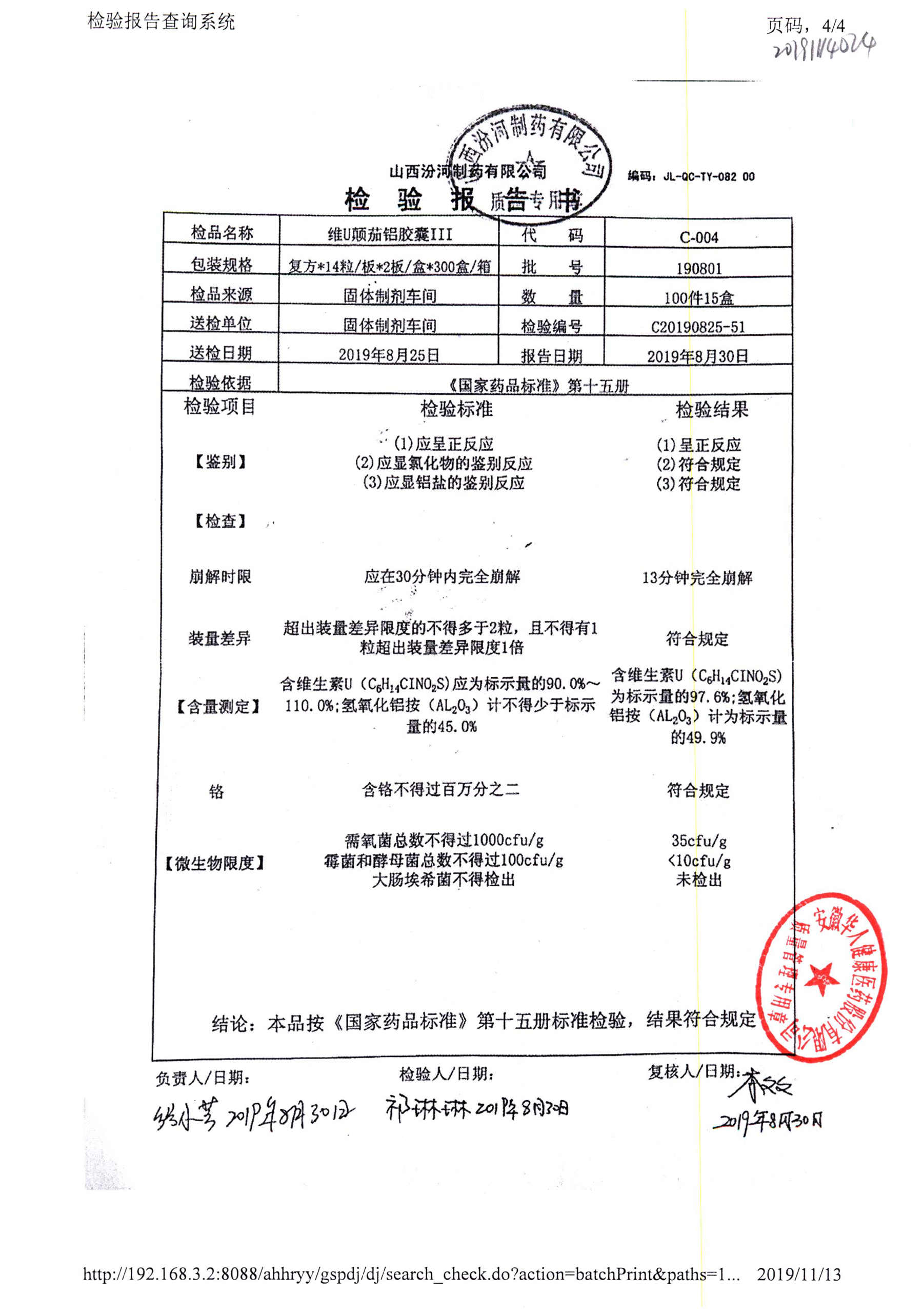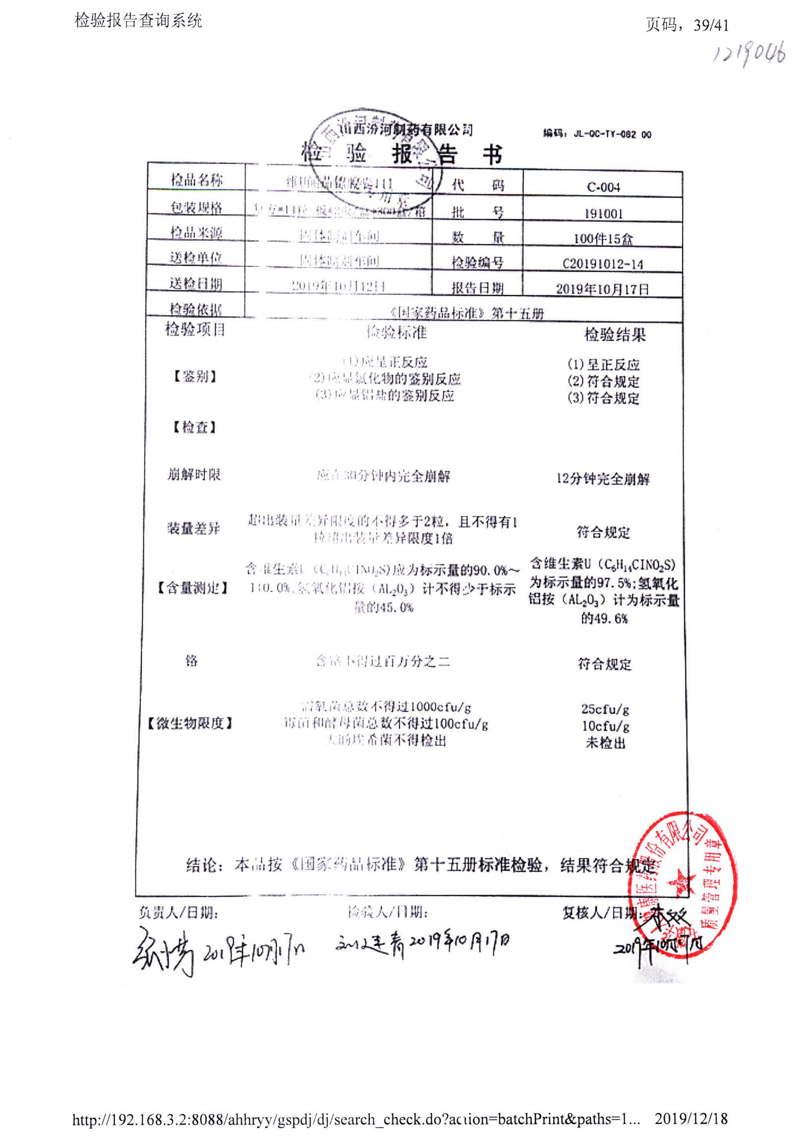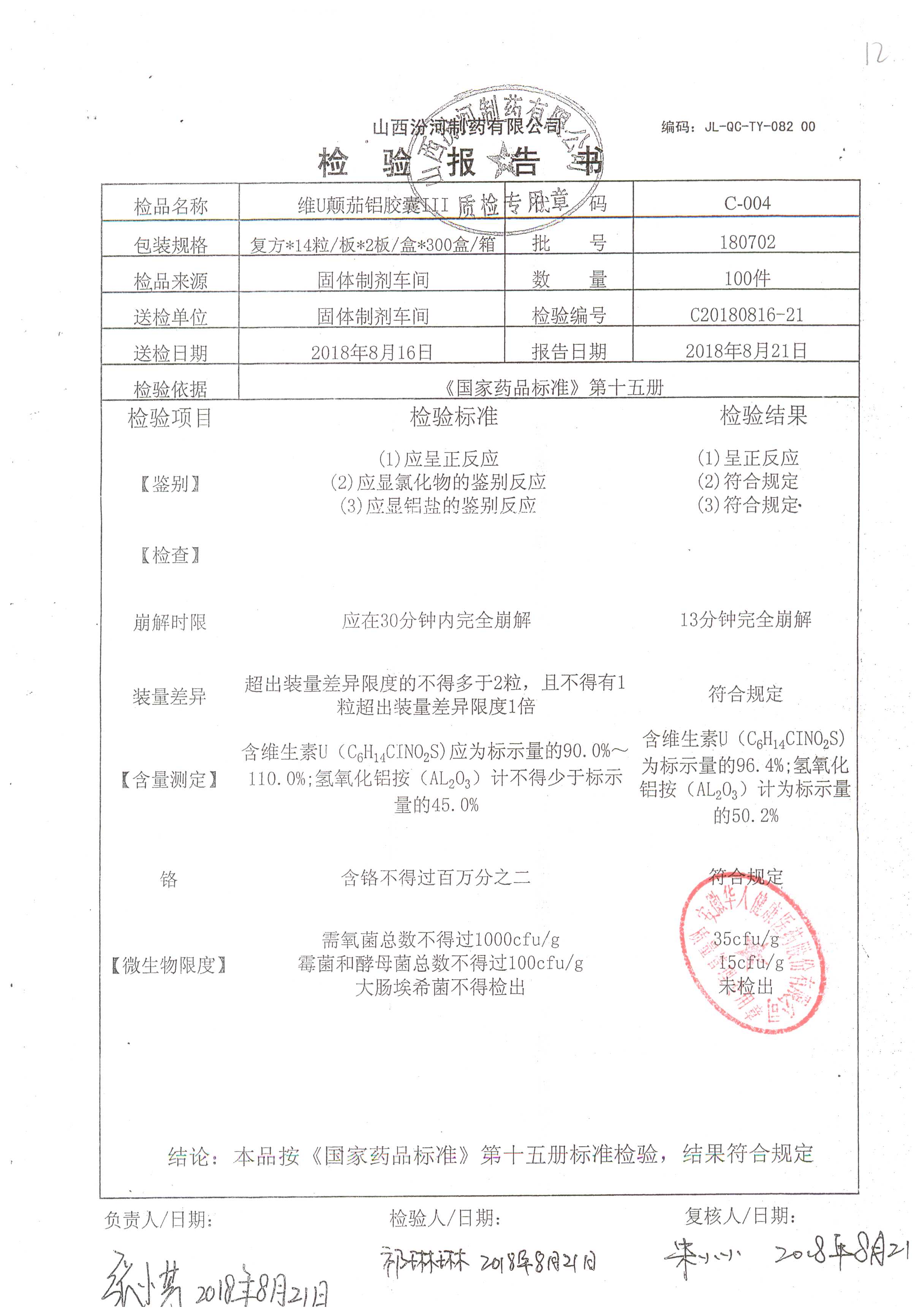 | 名稱 | 規(guī)格 | 批號 | 藥檢報(bào)告 |