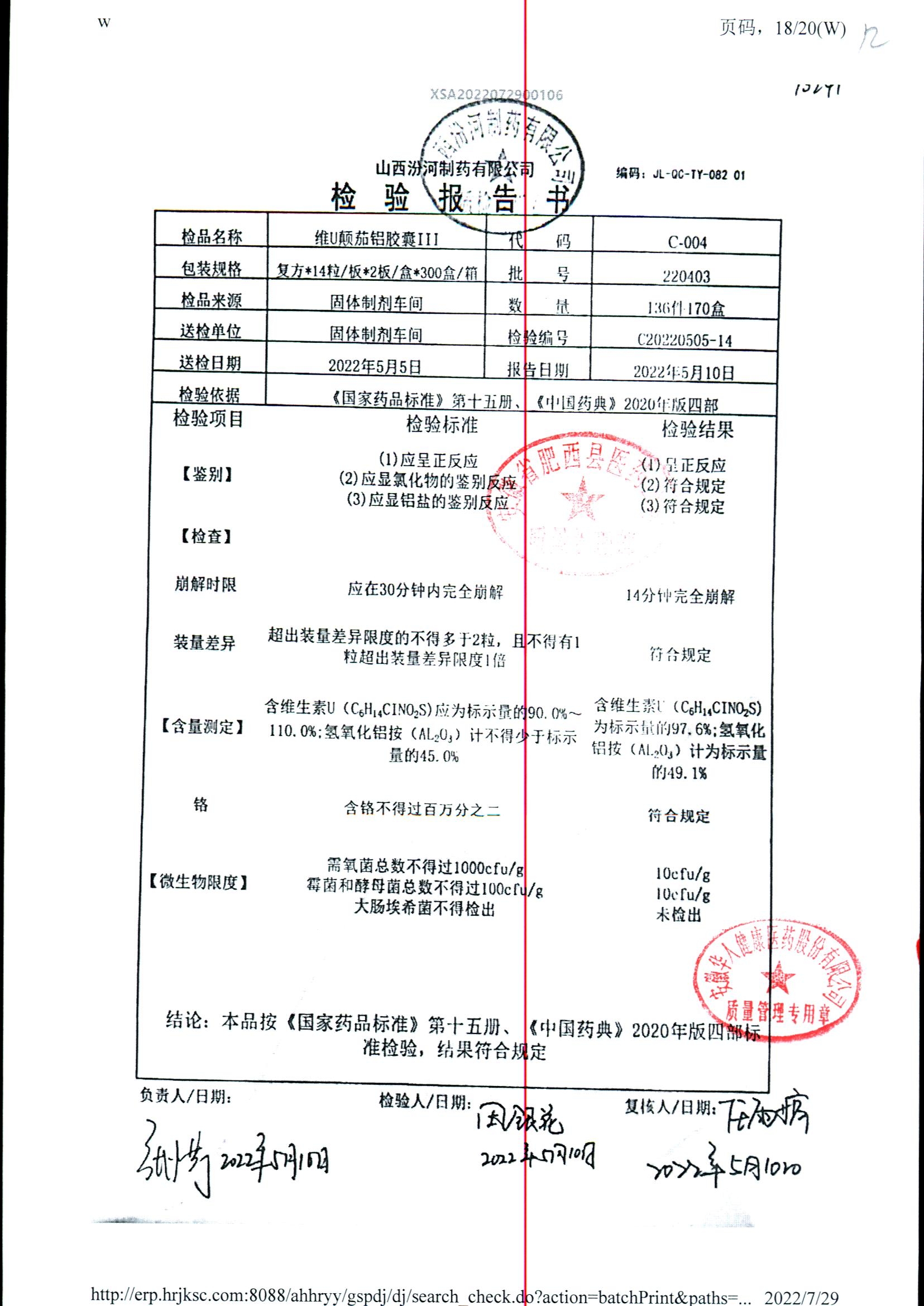 | 維U顛茄鋁膠囊III | 復(fù)方*28粒 | 180702 | 查看詳情 |