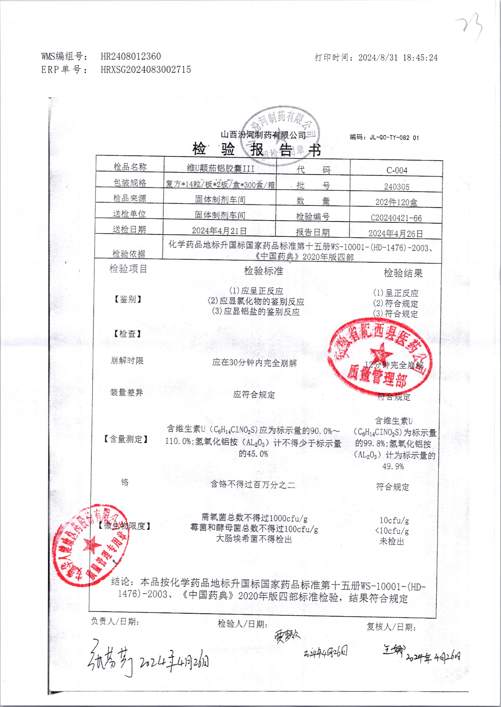 | 維U顛茄鋁膠囊III | 復(fù)方*28粒 | 240905 | 查看詳情 |