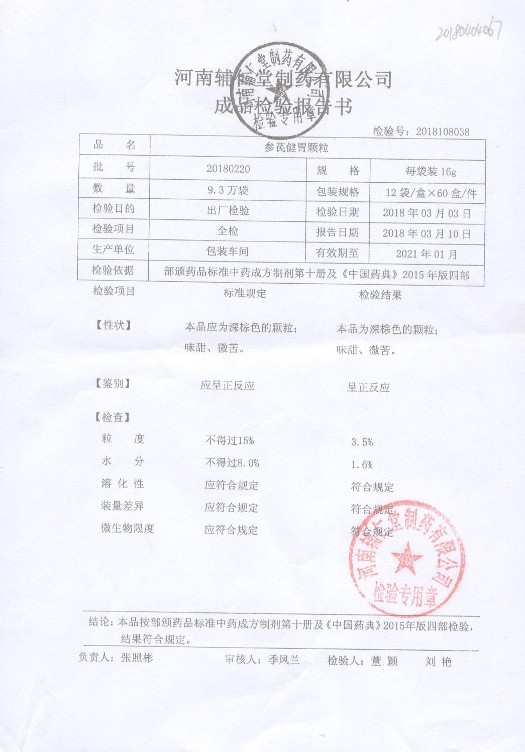 | 參芪健胃顆粒 | 16g*12袋 | 20180907 | 查看詳情 |