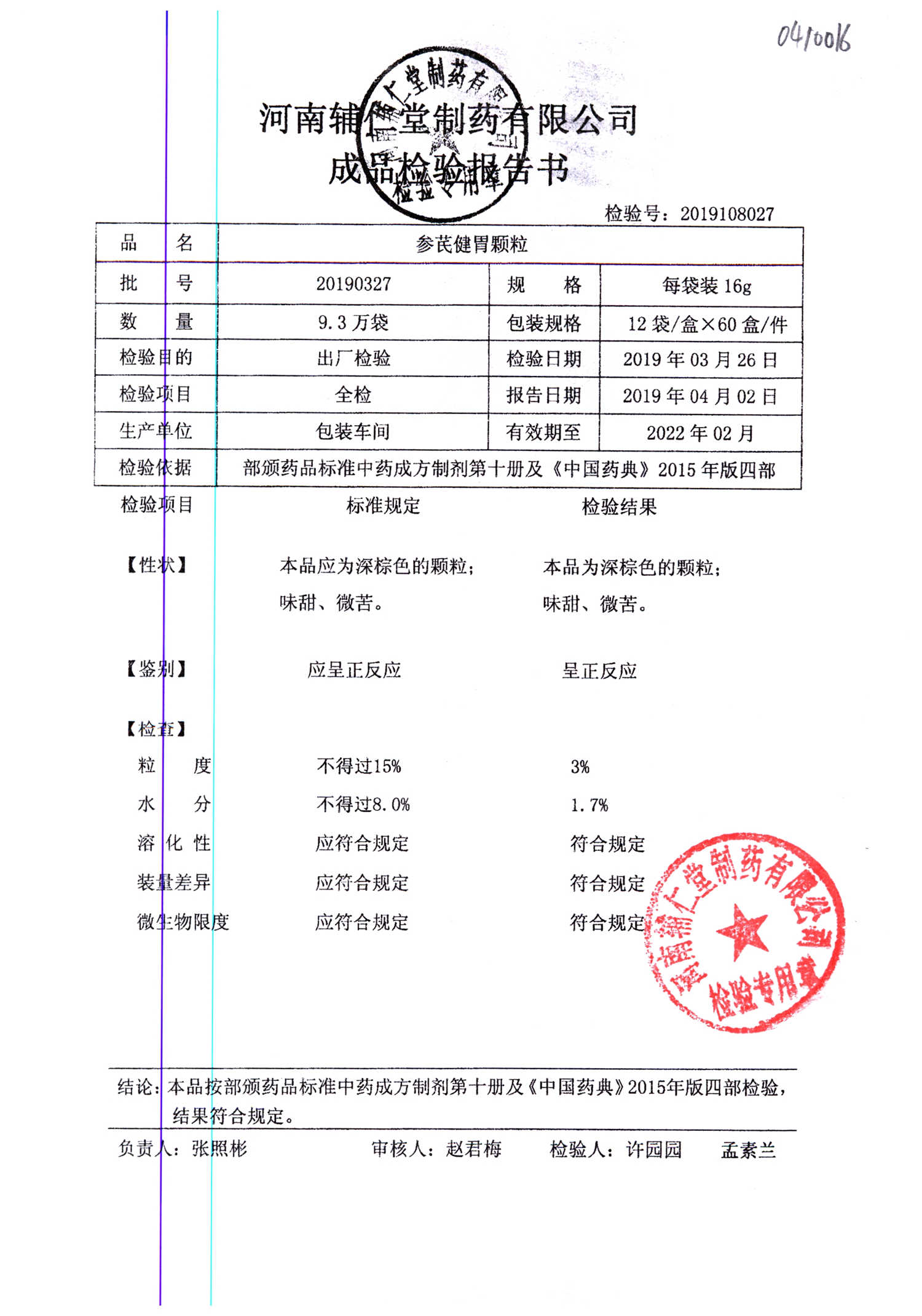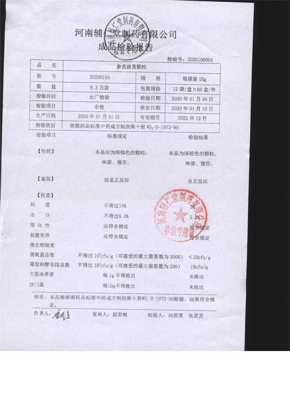 | 參芪健胃顆粒 | 16g*12袋 | 20200104 | 查看詳情 |
