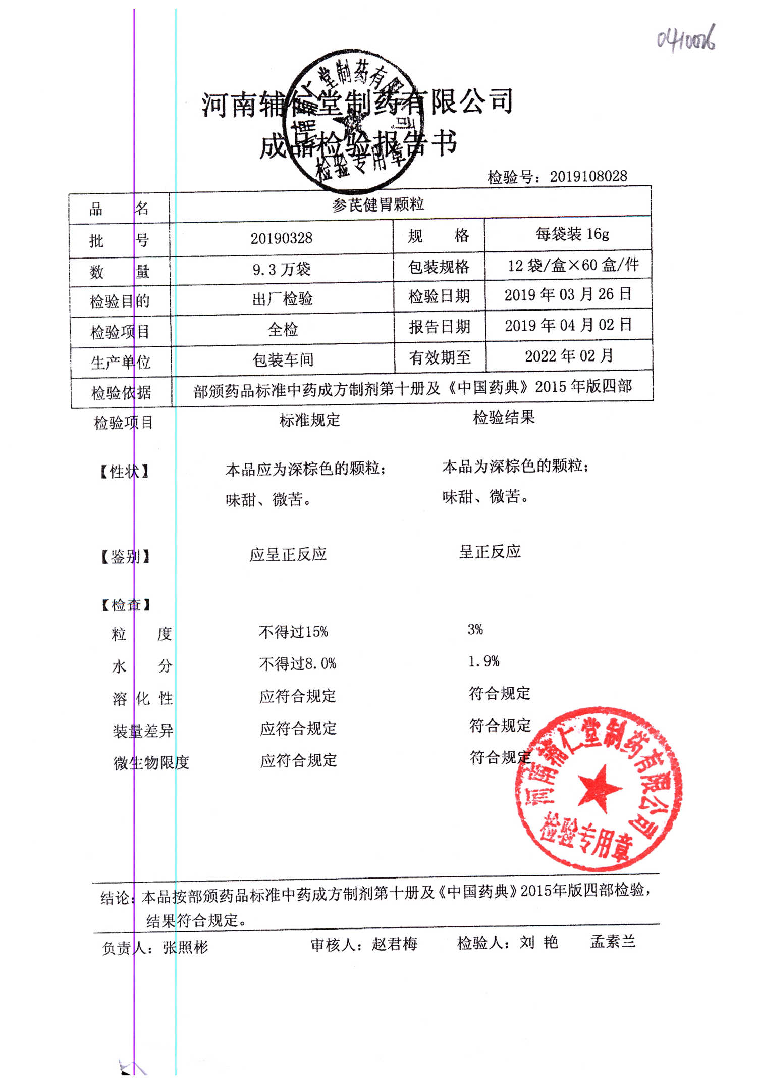 | 參芪健胃顆粒 | 16g*12袋 | 20190328 | 查看詳情 |