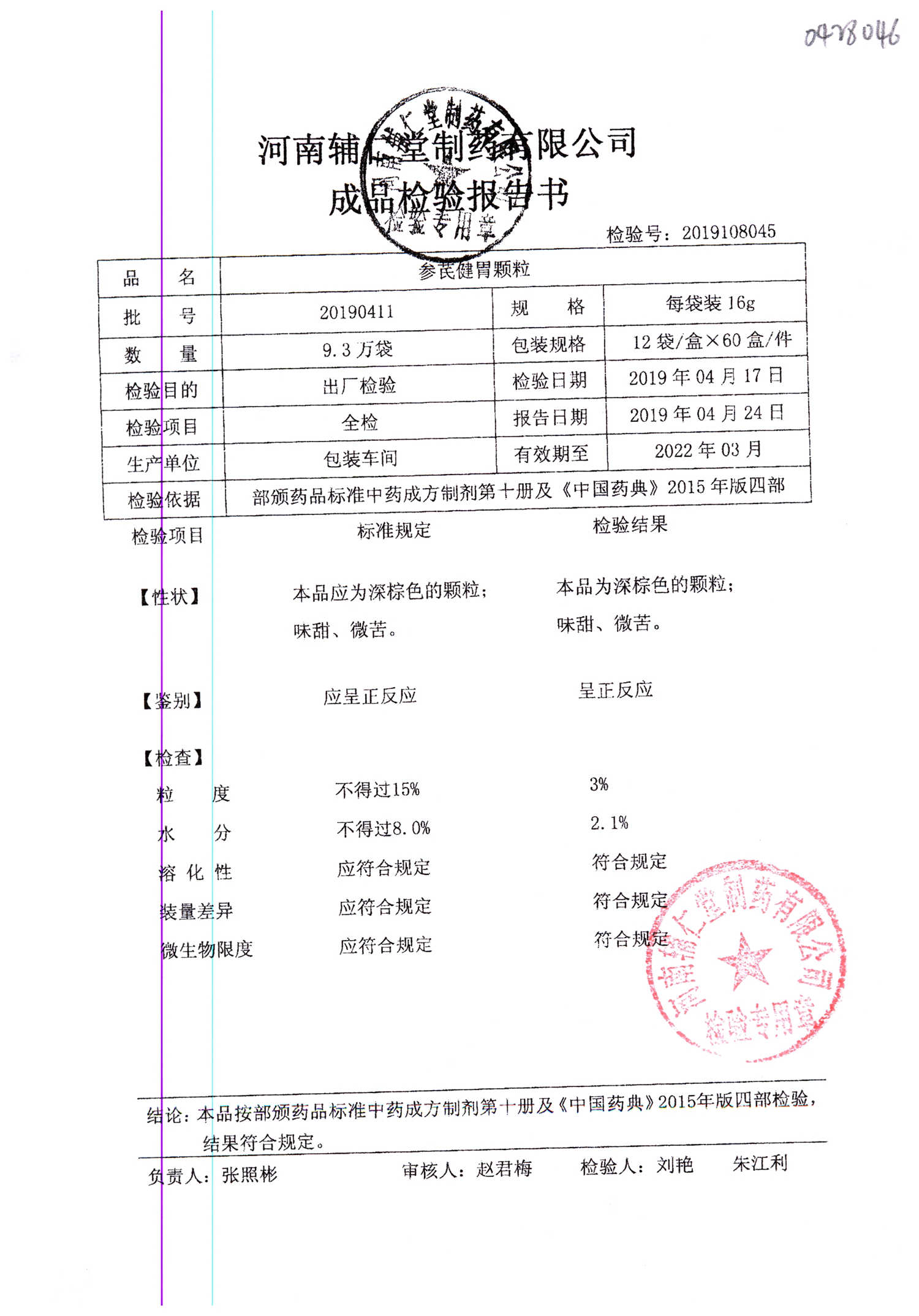 | 參芪健胃顆粒 | 16g*12袋 | 20190411 | 查看詳情 |