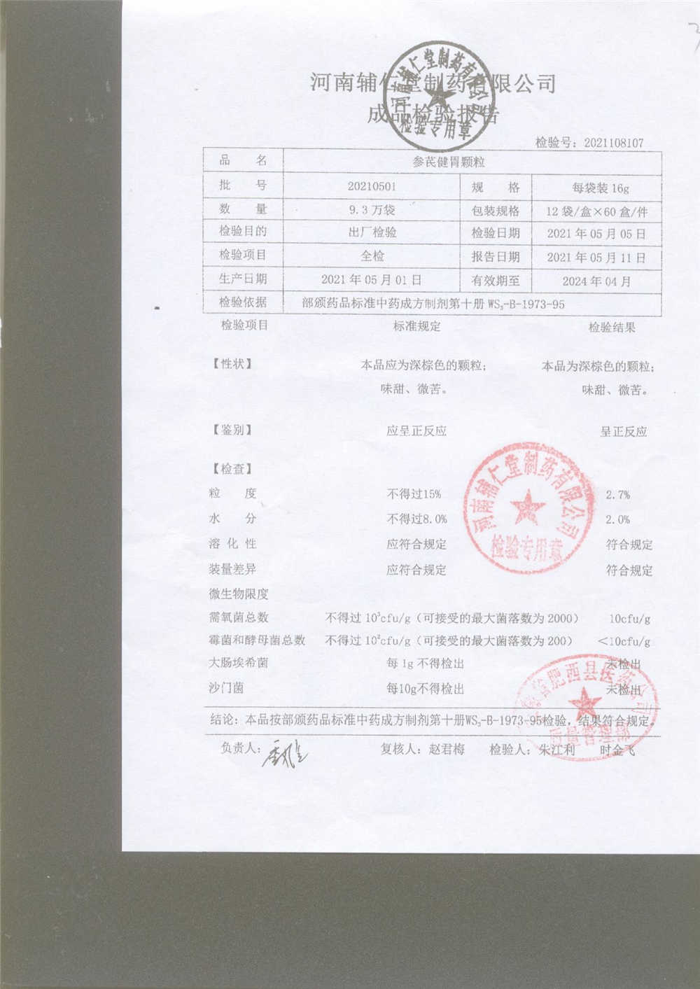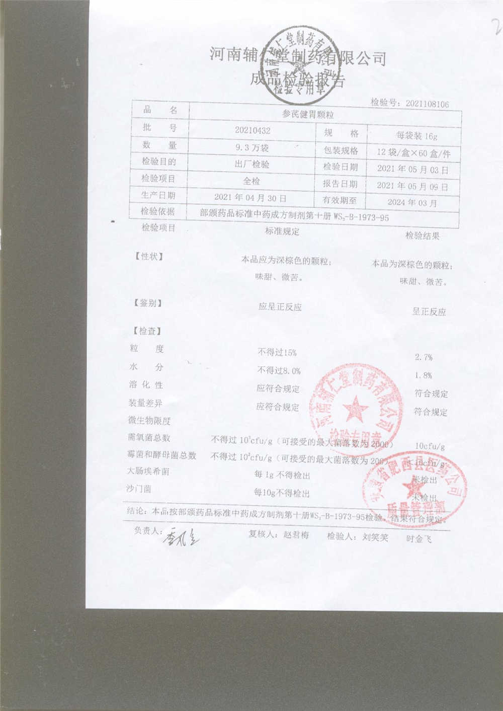 | 參芪健胃顆粒 | 16g*12袋 | 20210501 | 查看詳情 |