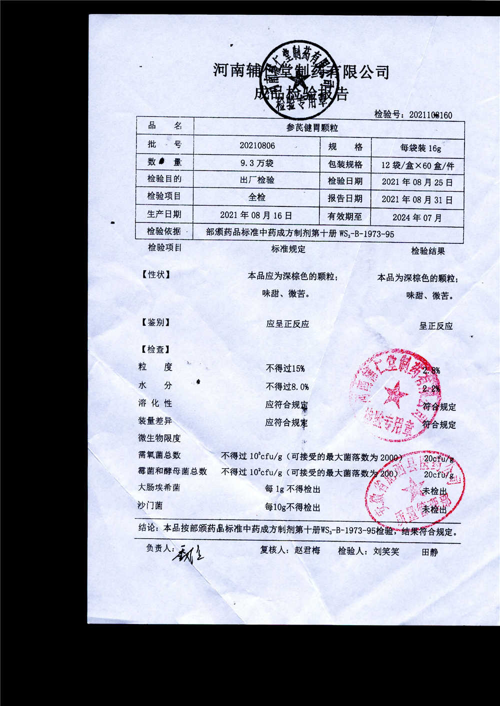 | 參芪健胃顆粒 | 16g*12袋 | 20210806 | 查看詳情 |