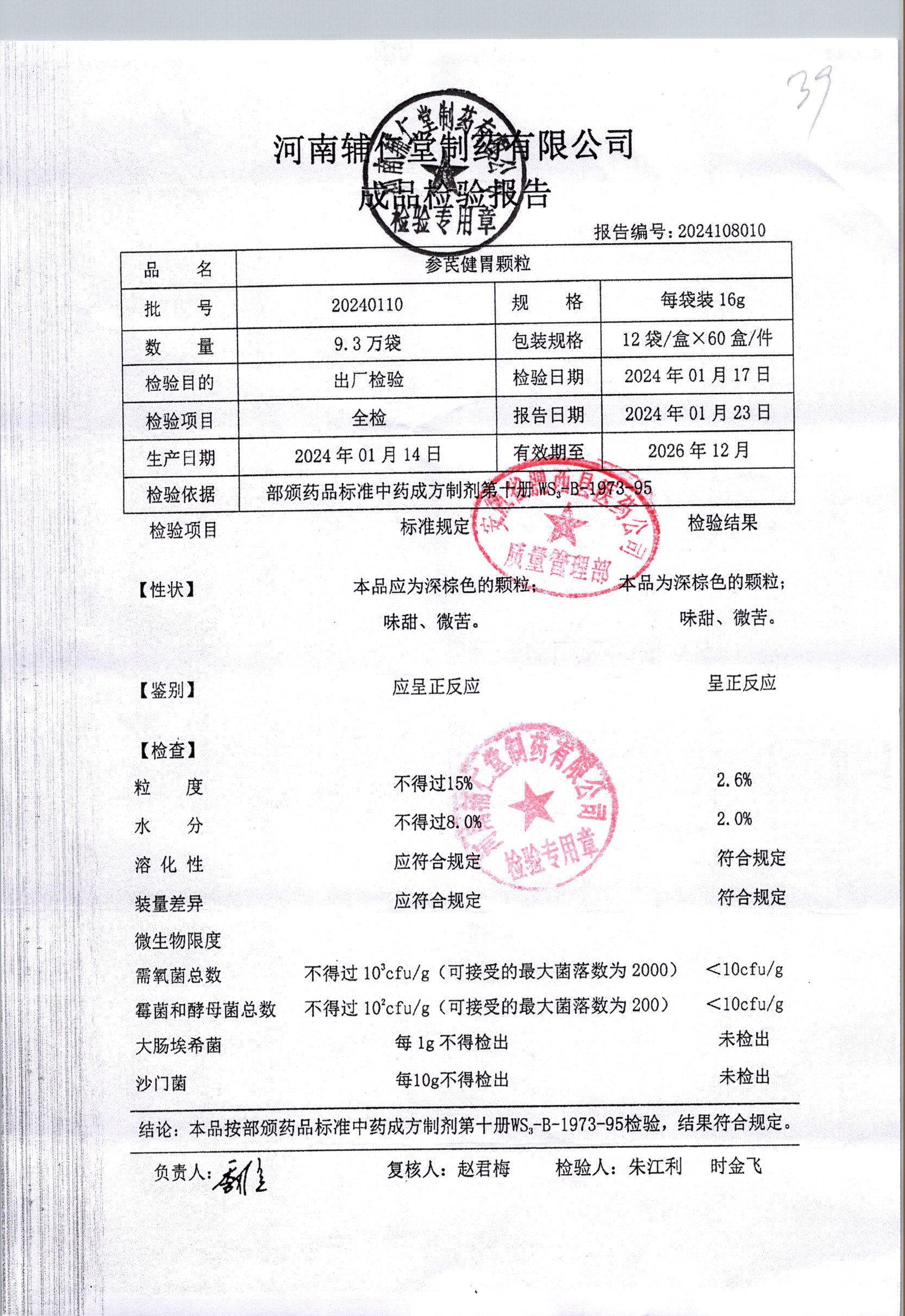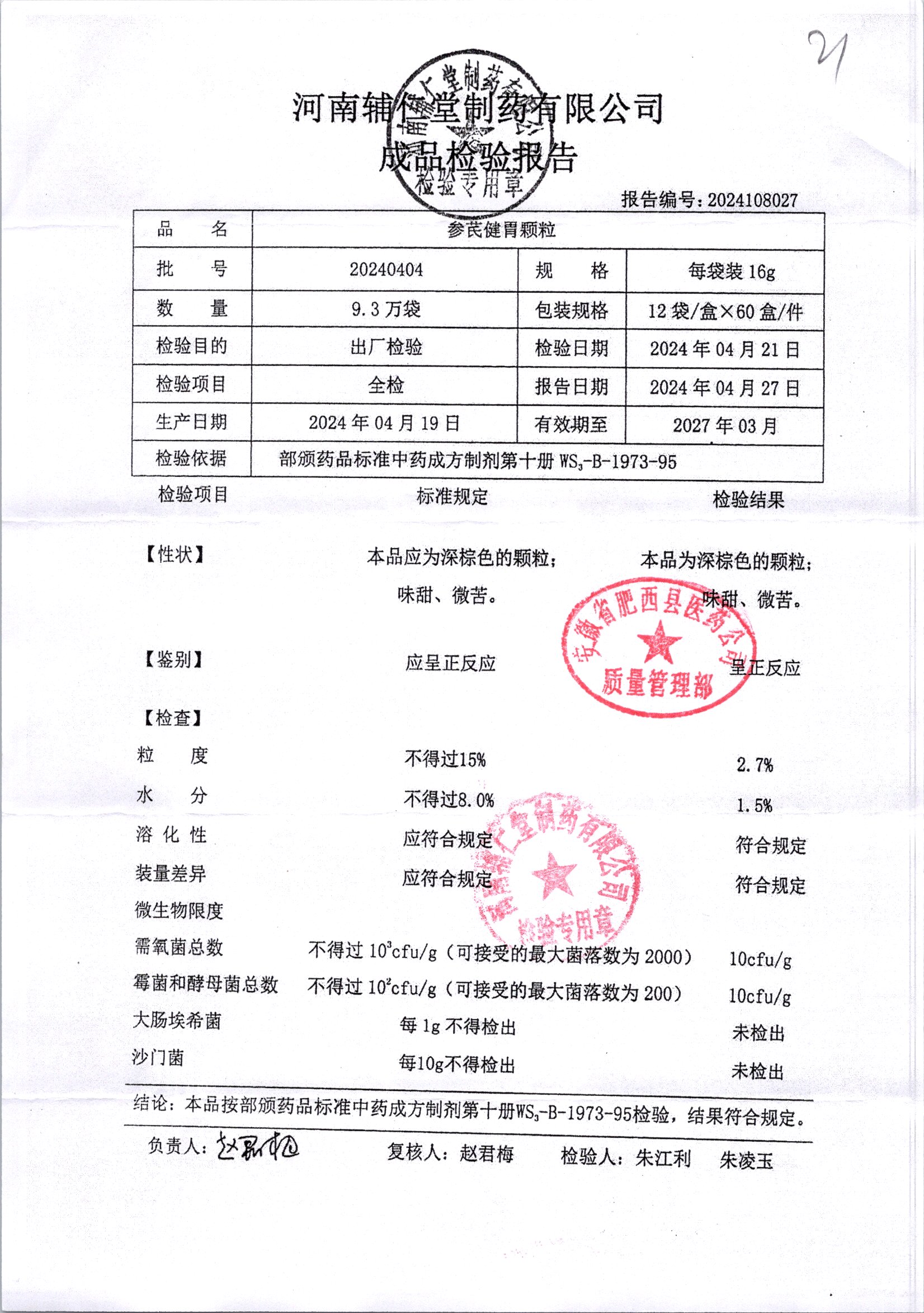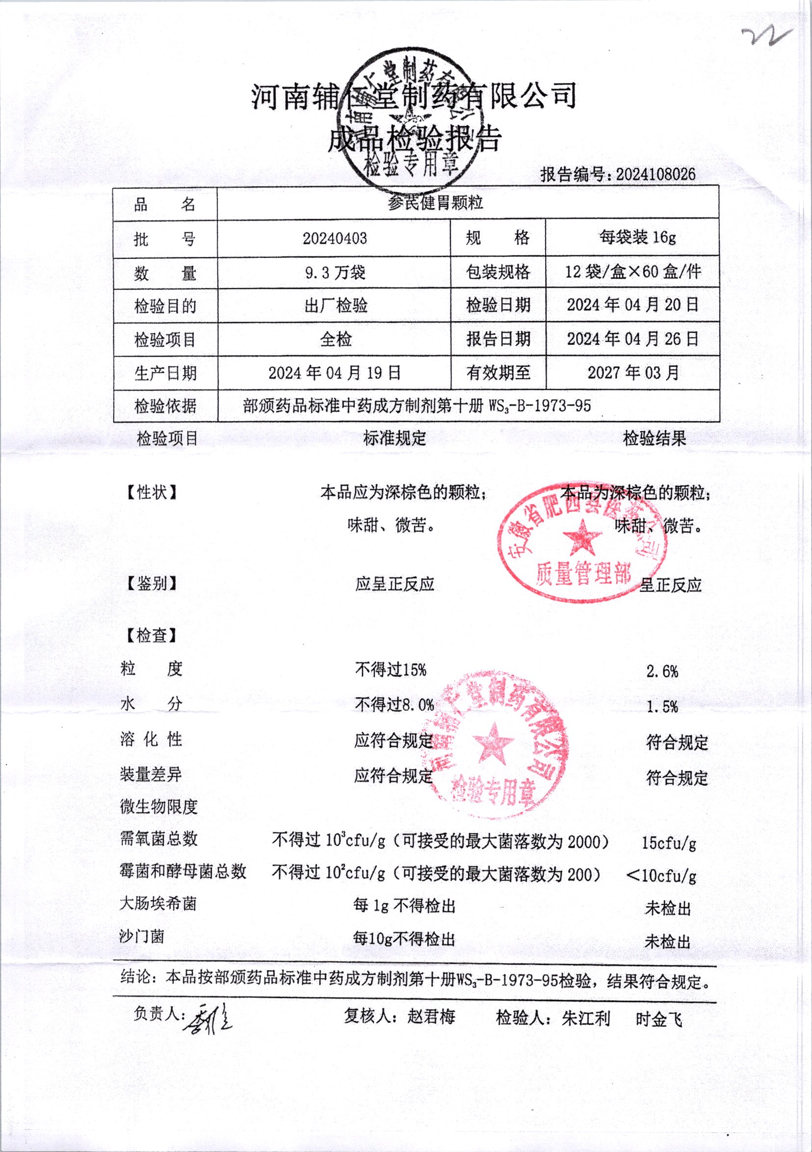| 參芪健胃顆粒 | 16g*12袋 | 20240404 | 查看詳情 |