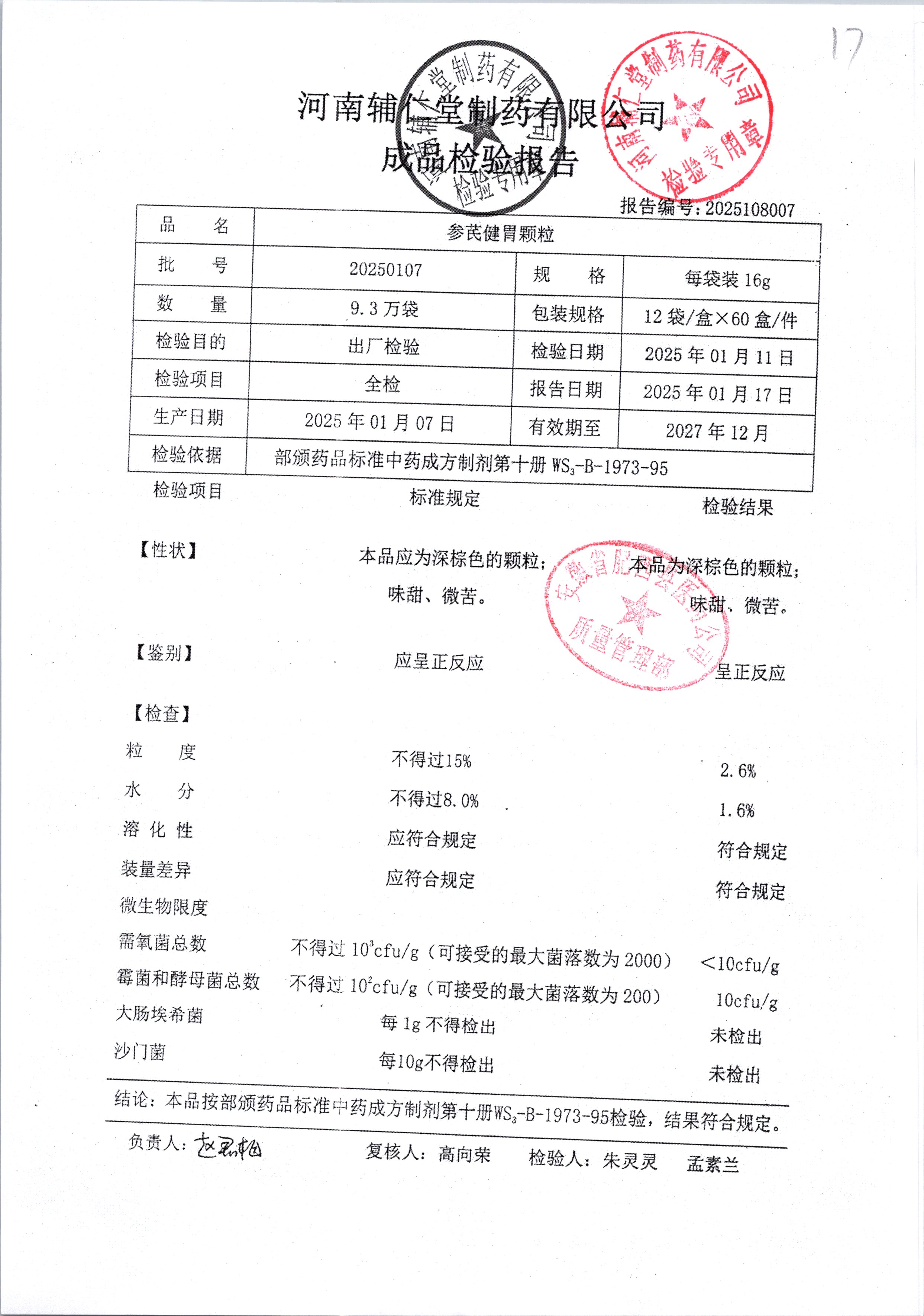 | 參芪健胃顆粒 | 16g*12袋 | 20250107 | 查看詳情 |