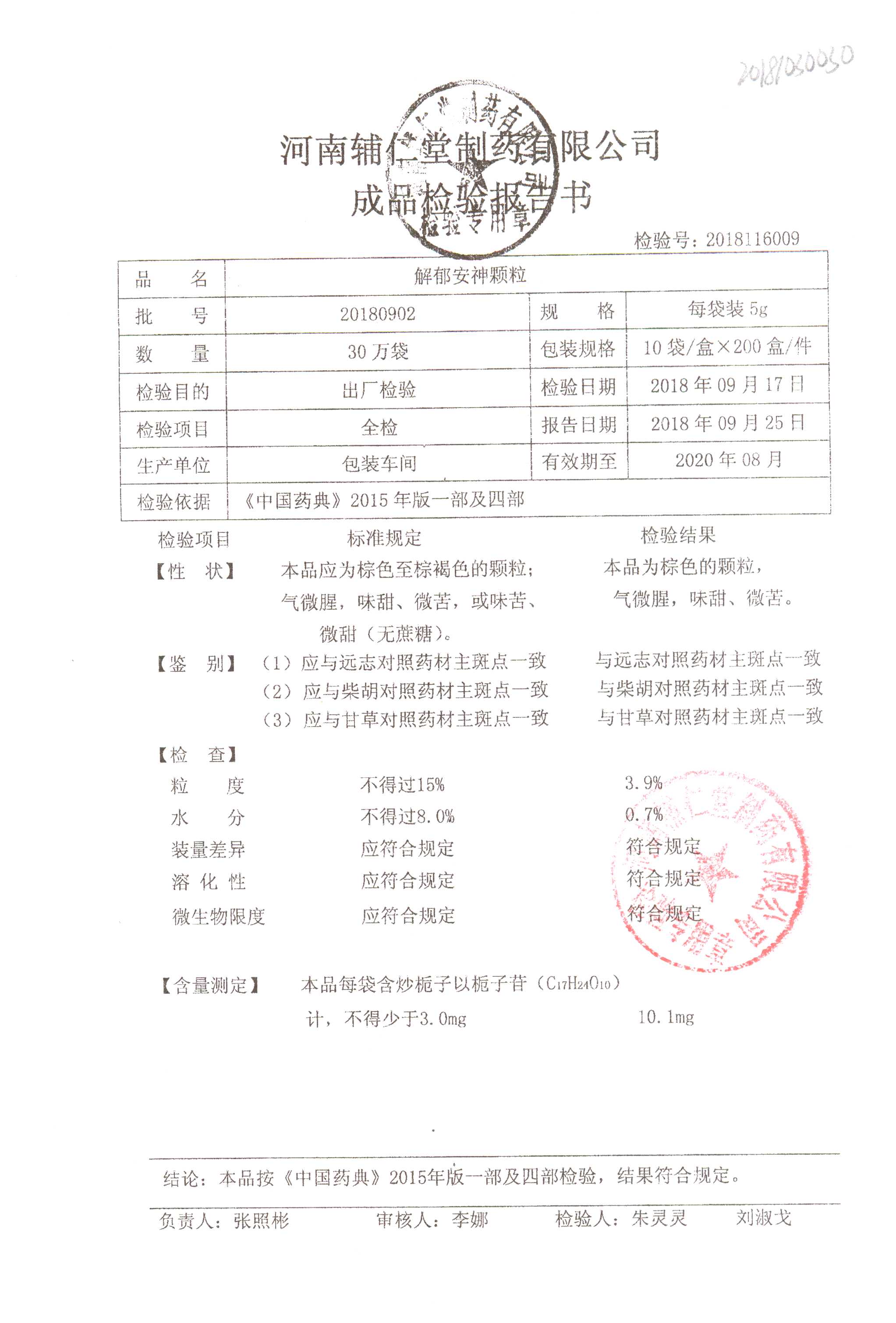 | 解郁安神顆粒 | 5g*10袋 | 20180902 | 查看詳情 |