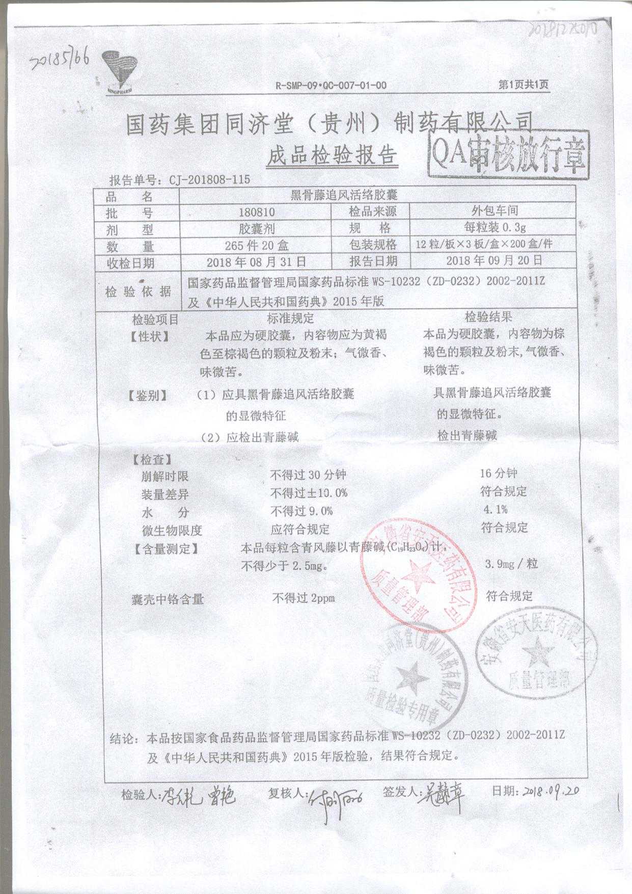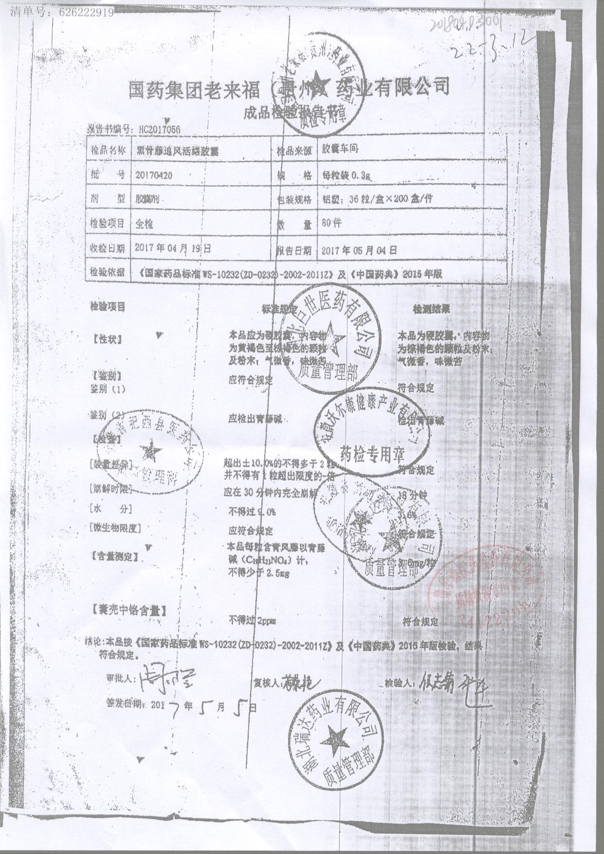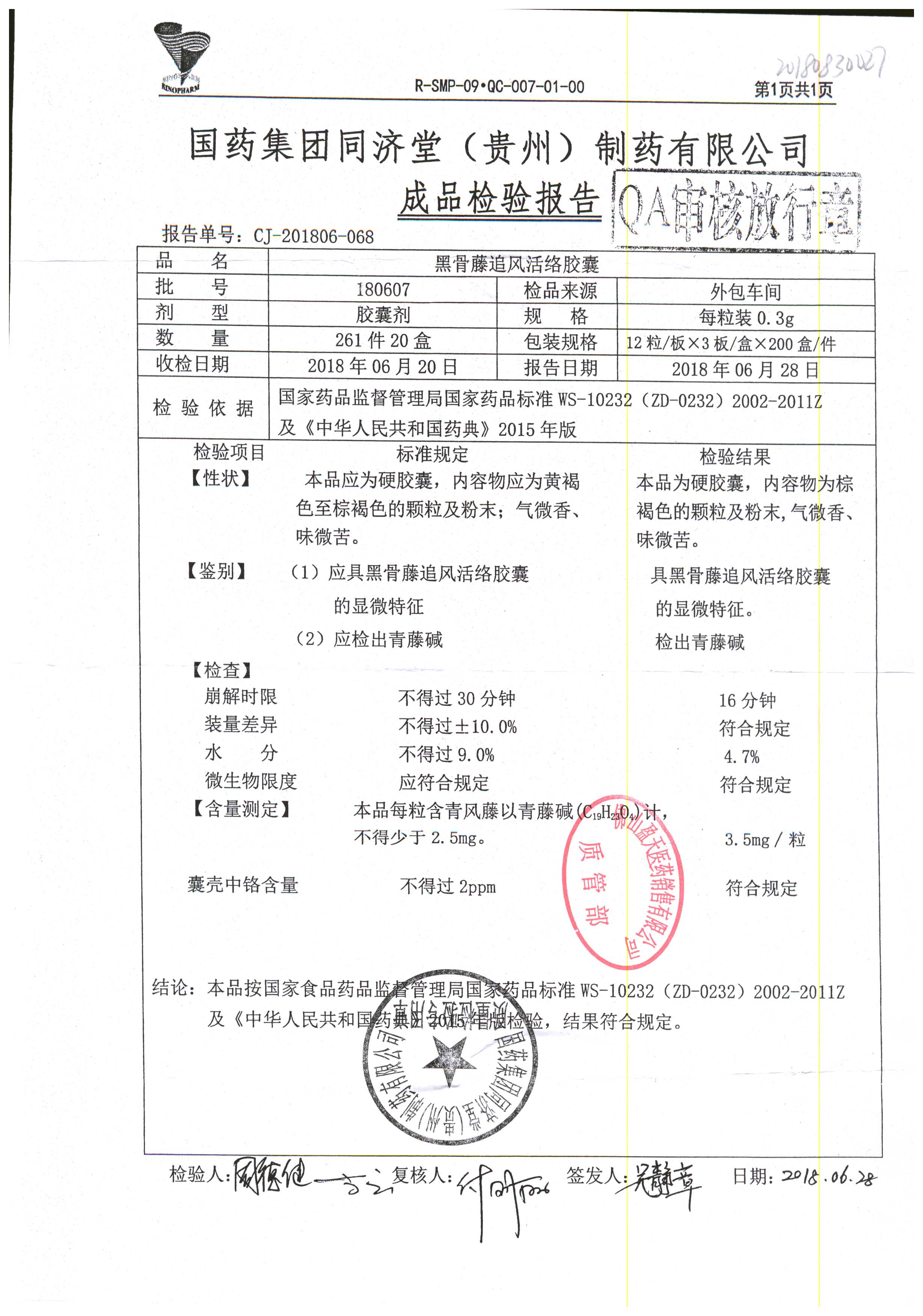 | 黑骨藤追風(fēng)活絡(luò)膠囊 | 0.3g*36粒 | 20170420 | 查看詳情 |