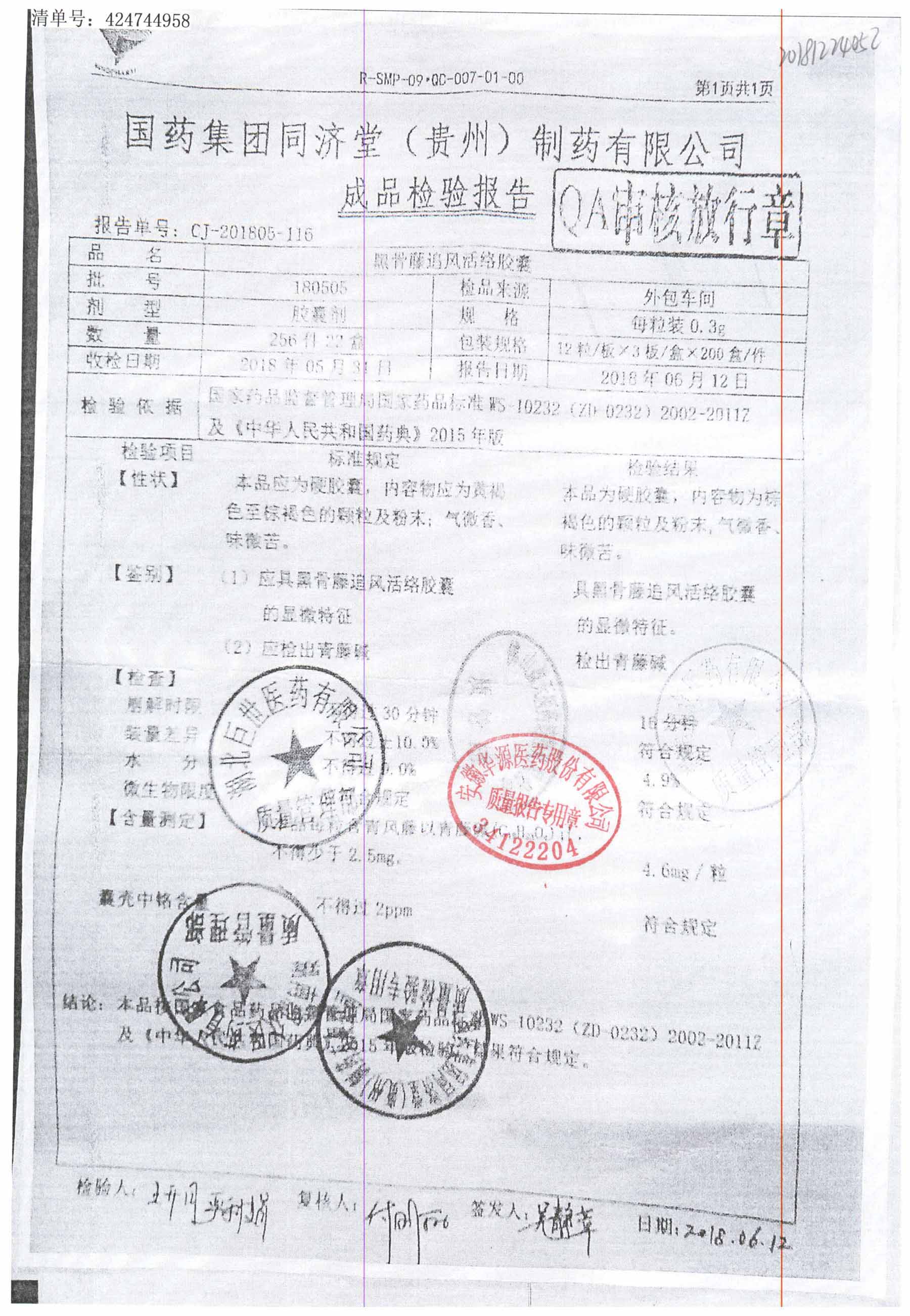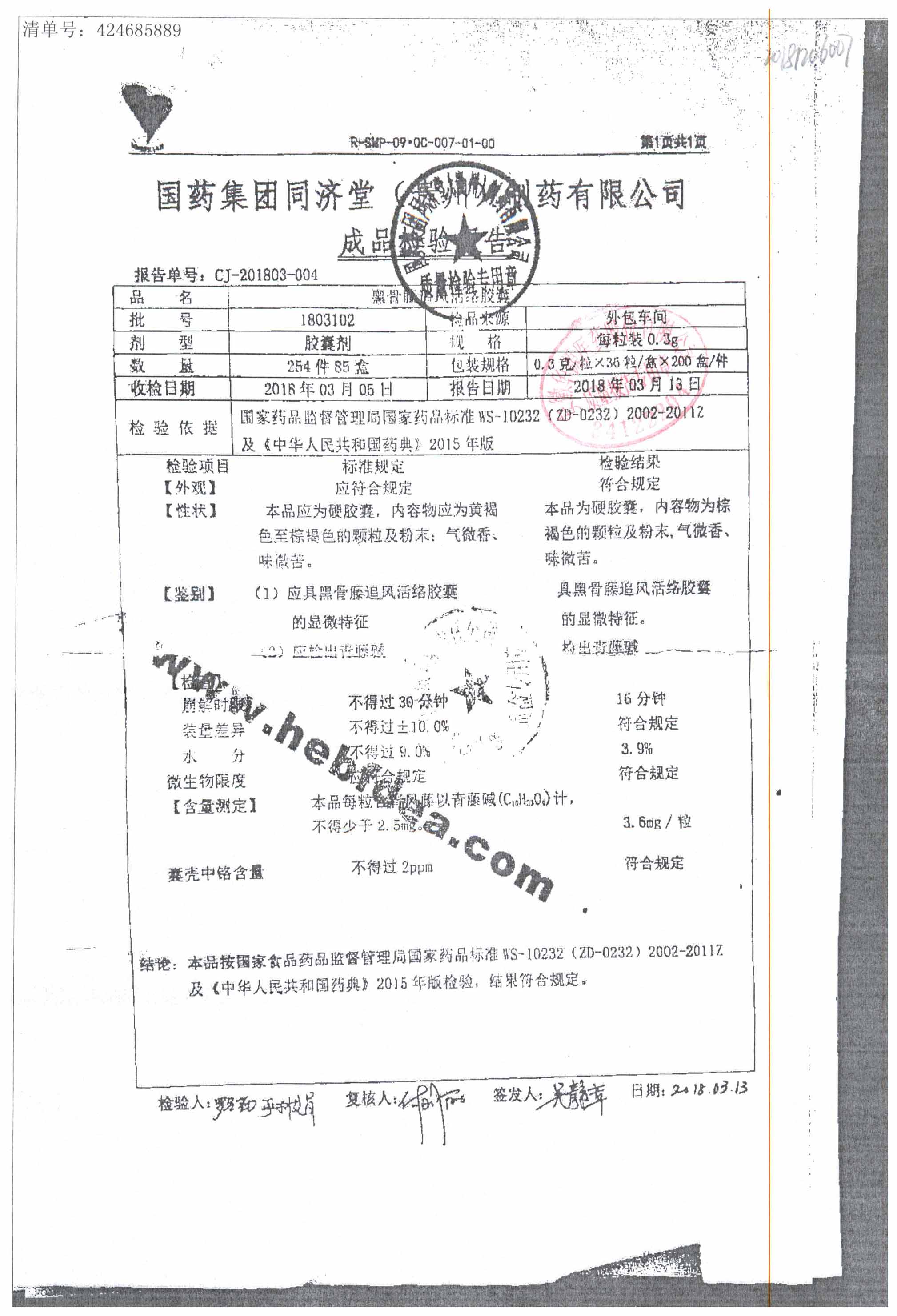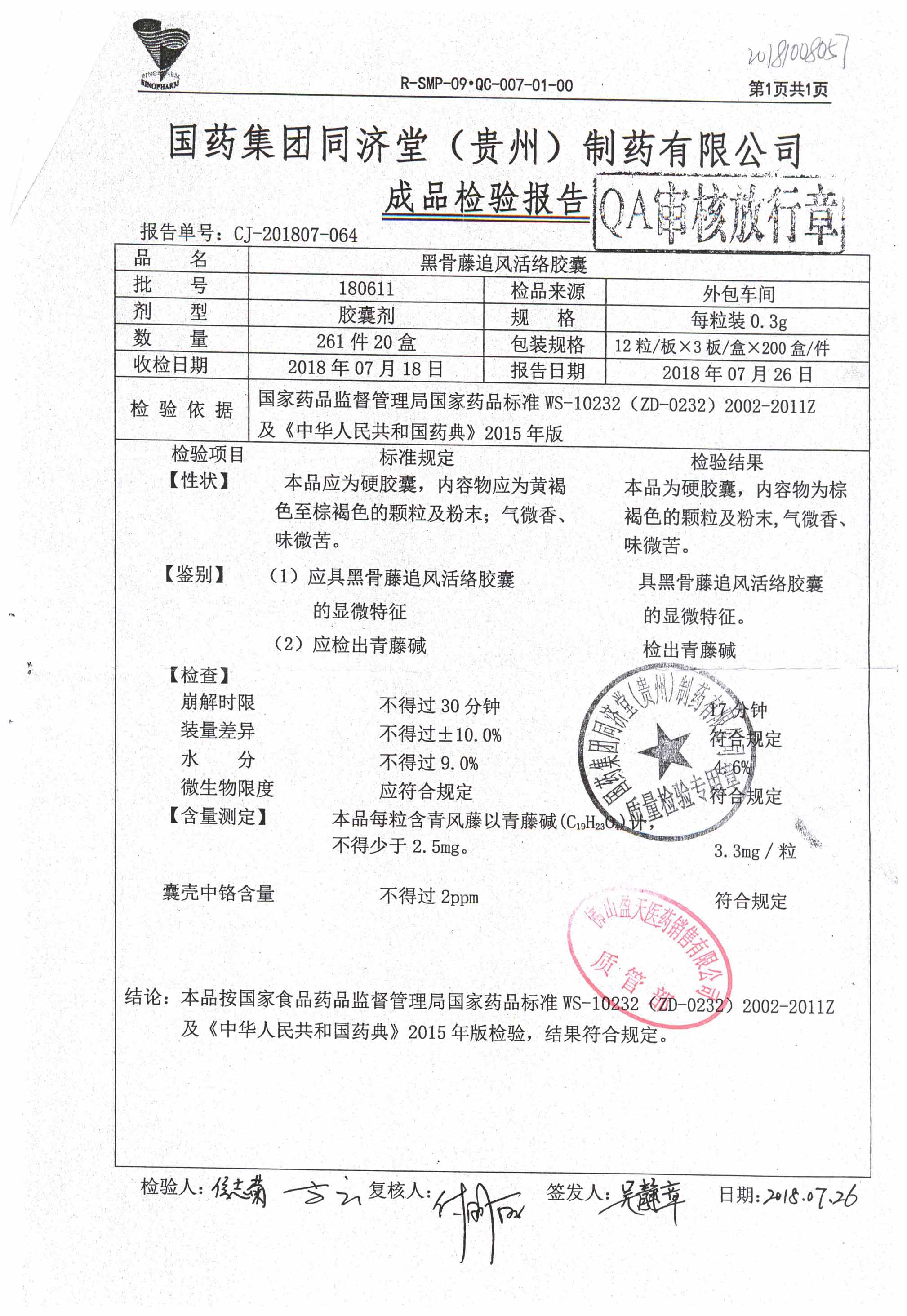 | 黑骨藤追風(fēng)活絡(luò)膠囊 | 0.3g*36粒 | 20170420 | 查看詳情 |