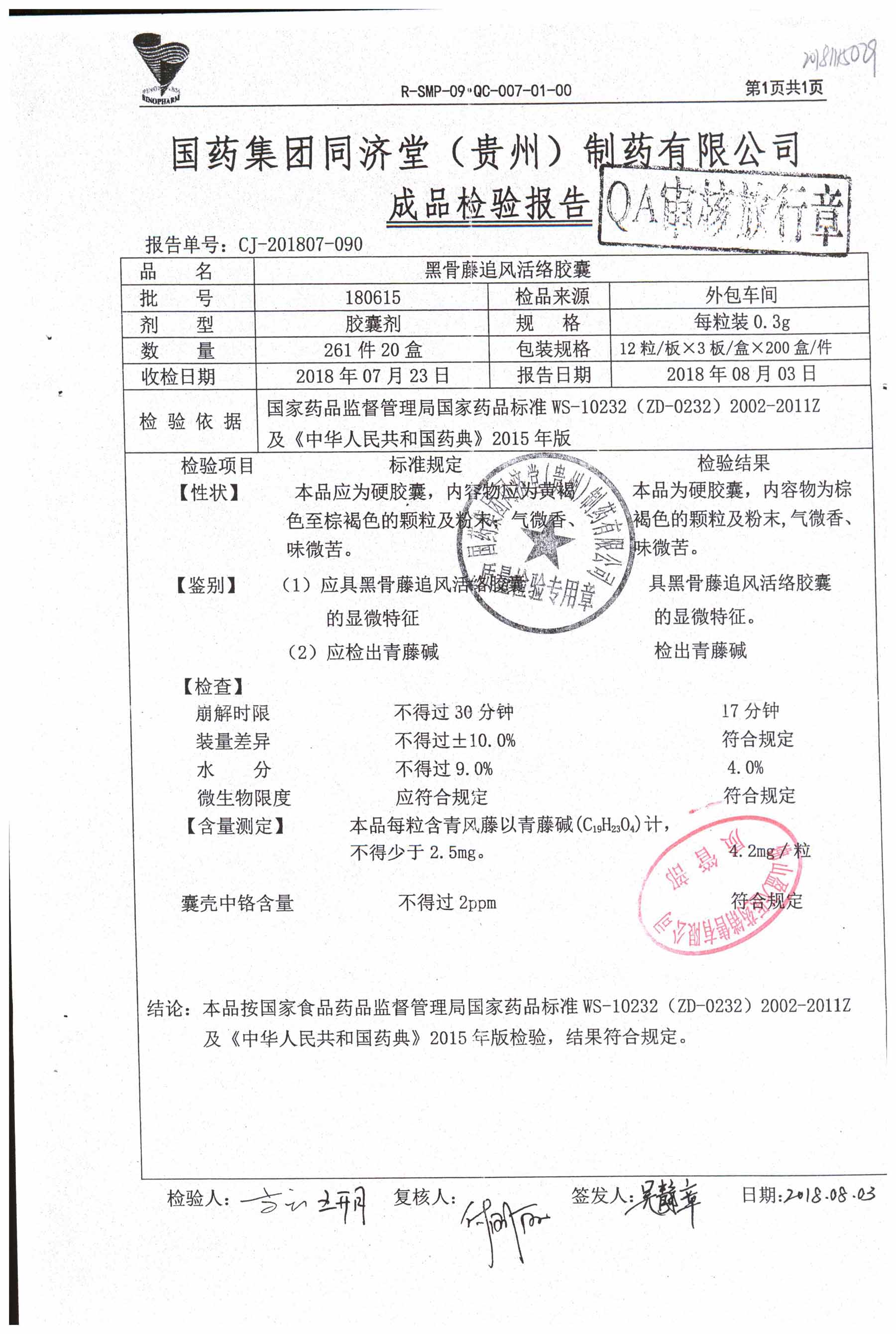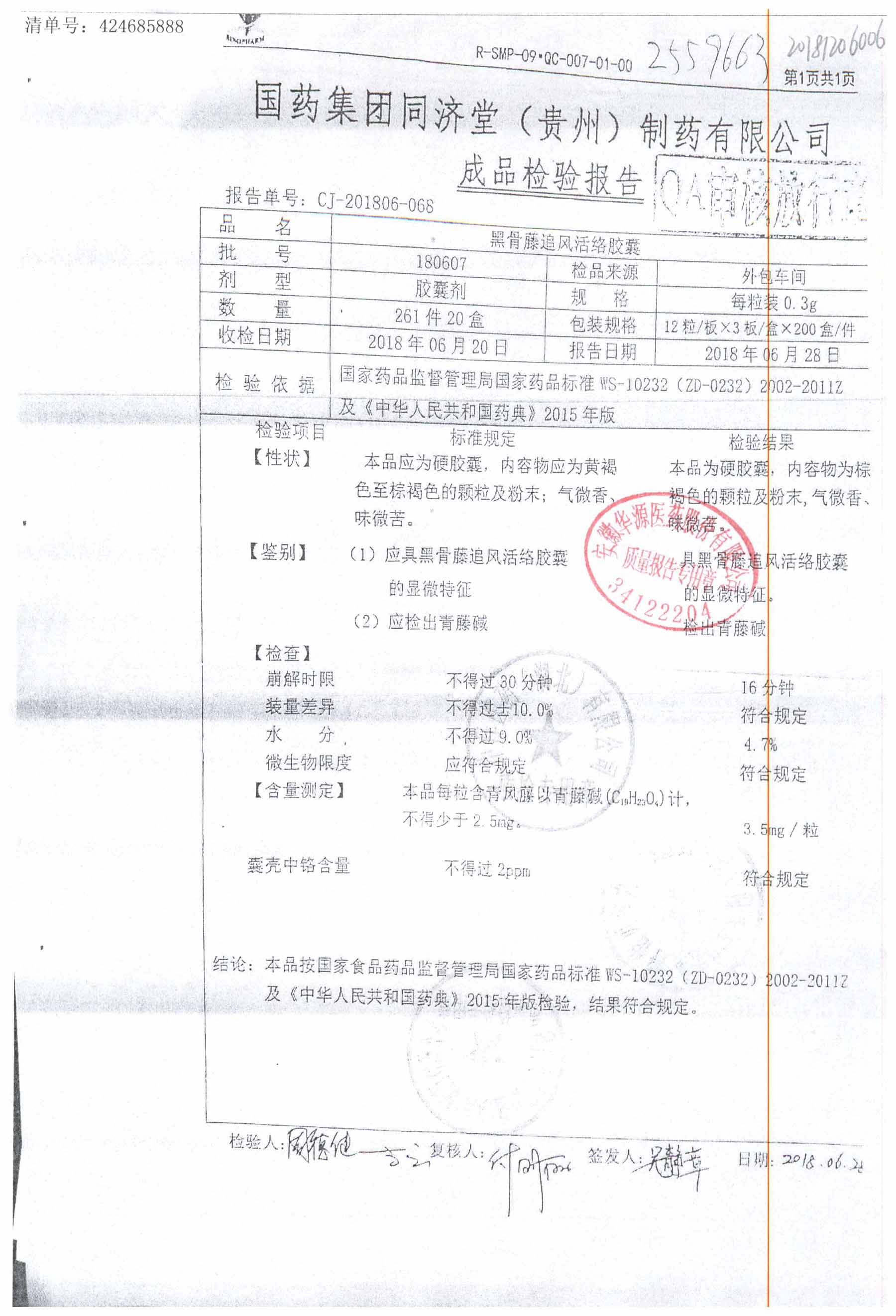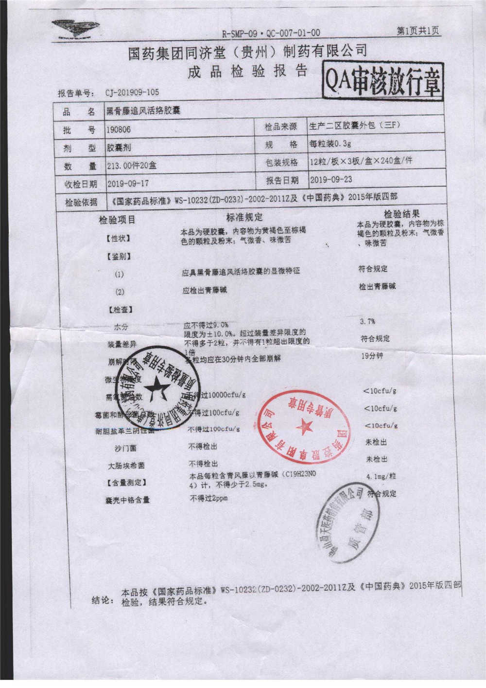 | 黑骨藤追風(fēng)活絡(luò)膠囊 | 0.3g*36粒 | 190806 | 查看詳情 |