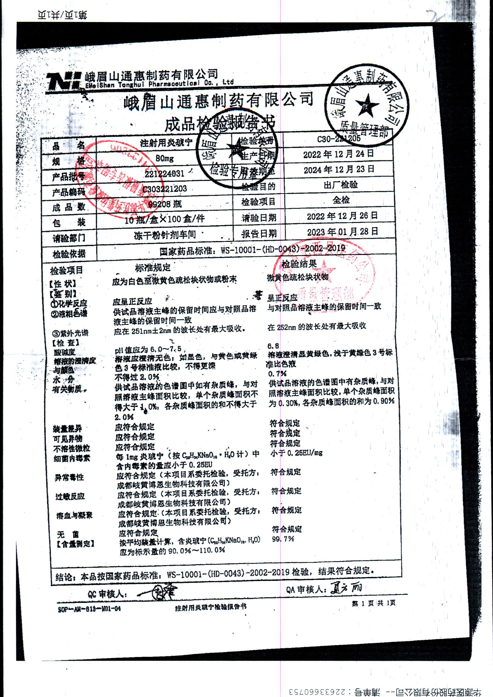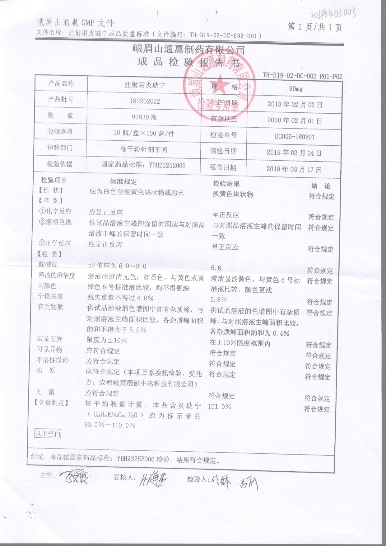 名稱 規(guī)格 批號 藥檢報(bào)告