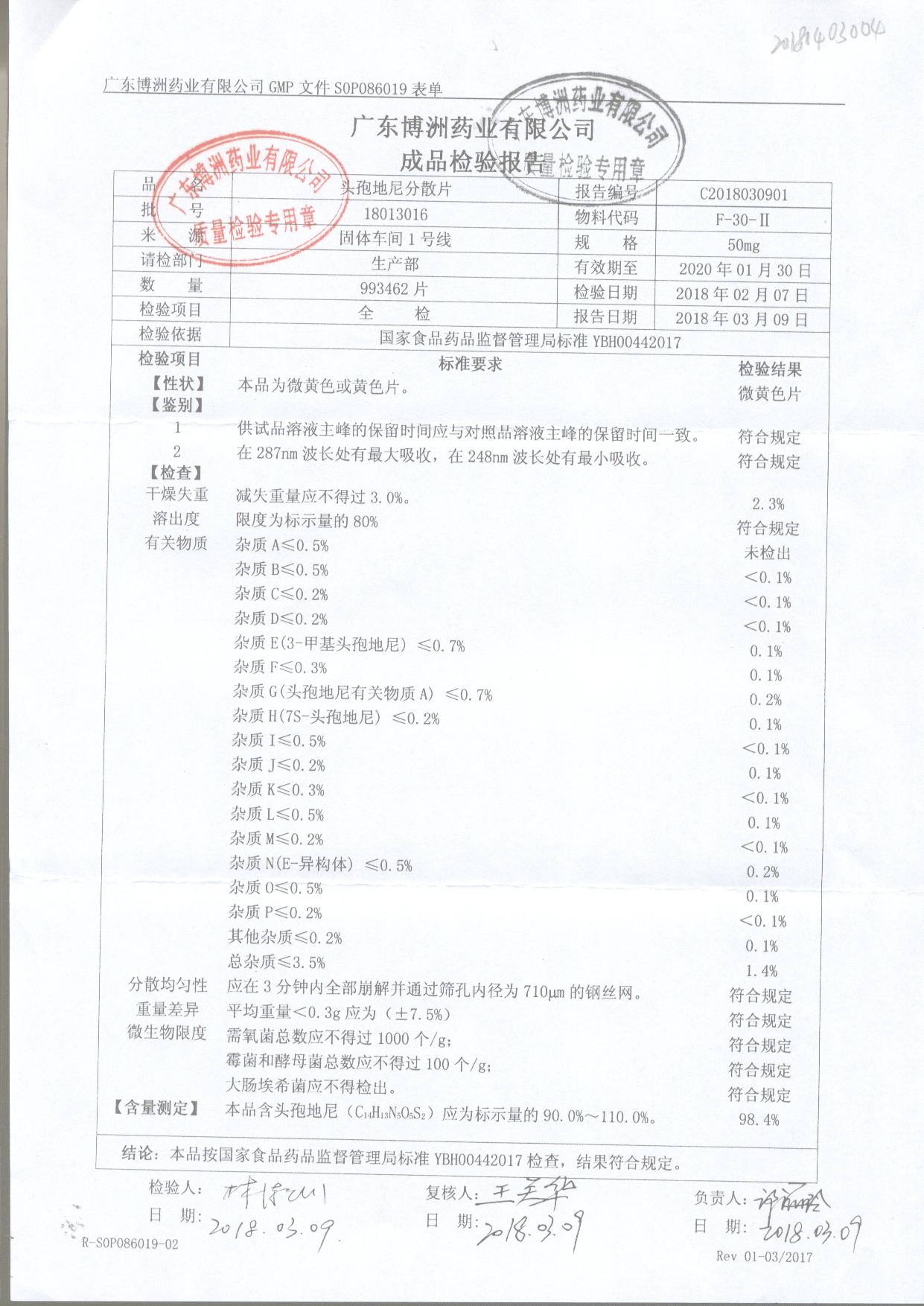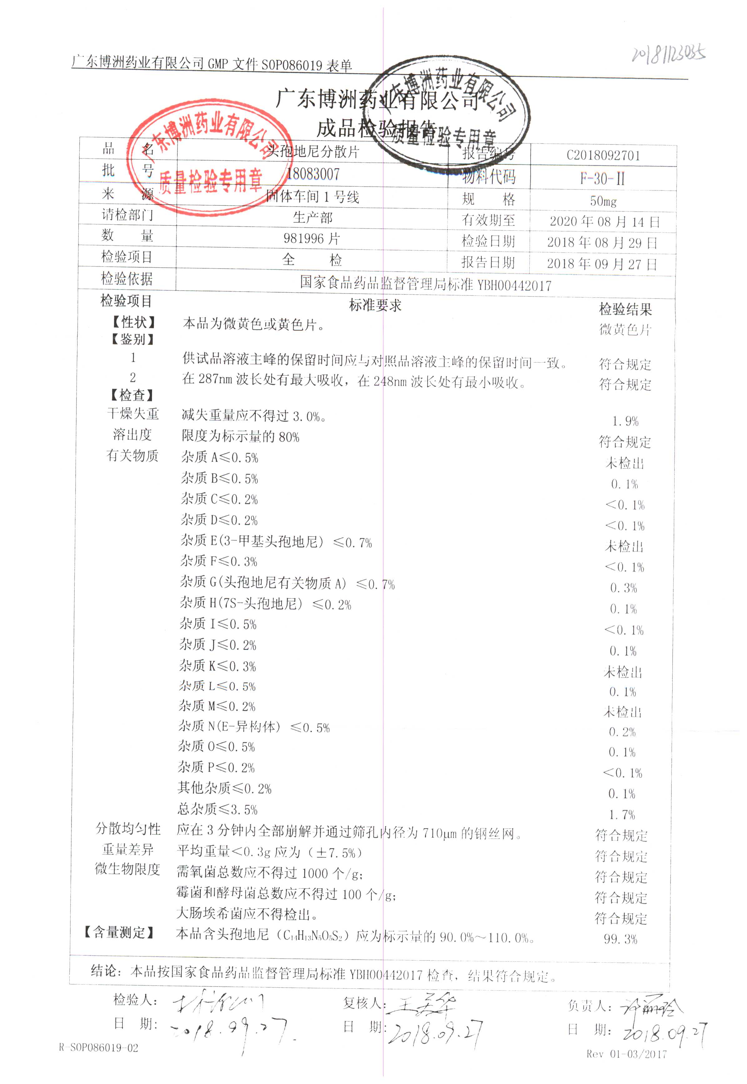 | 頭孢地尼分散片 | 50mg | 19093002 | 查看詳情 |