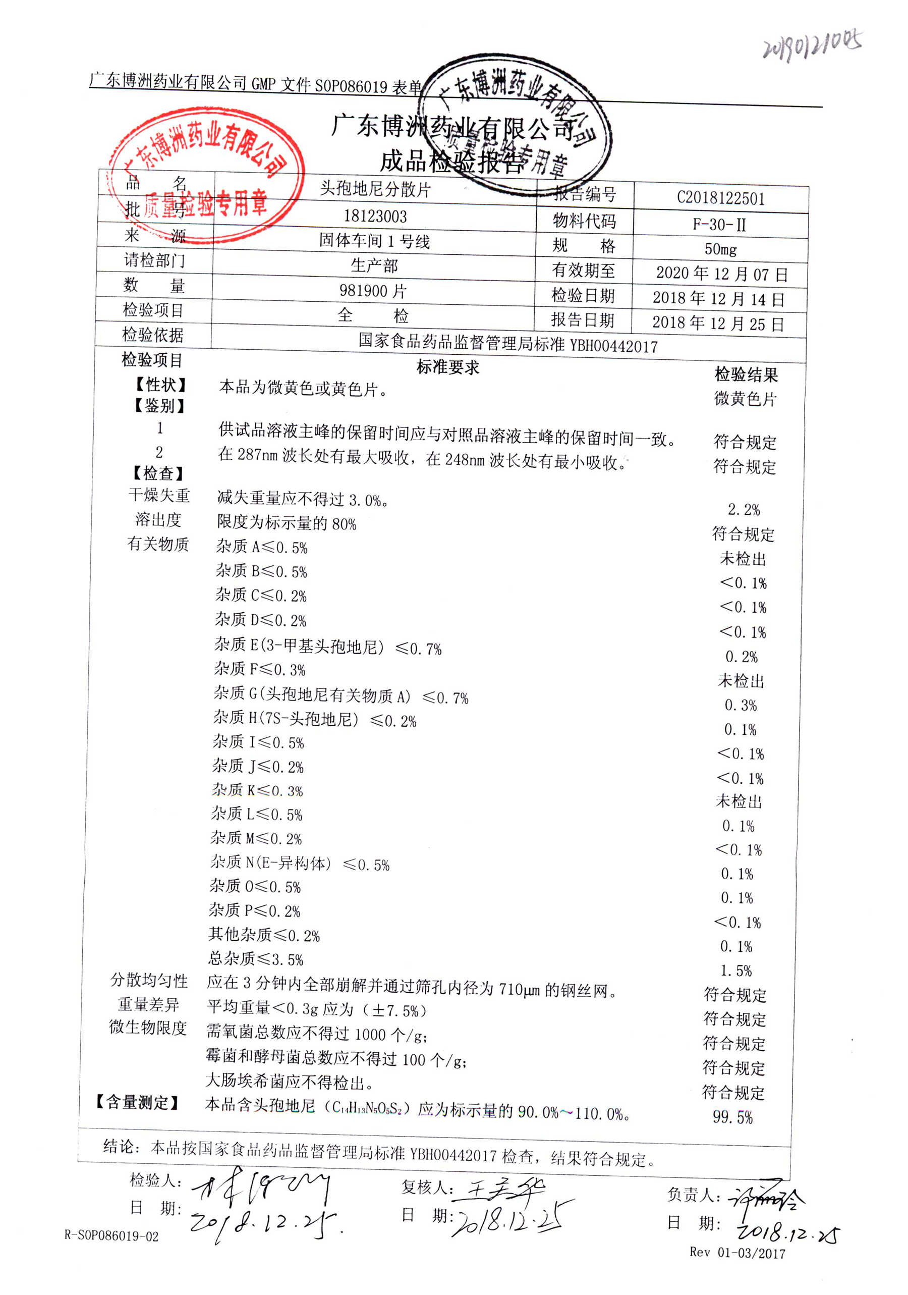| 頭孢地尼分散片 | 50mg | 19033004 | 查看詳情 |