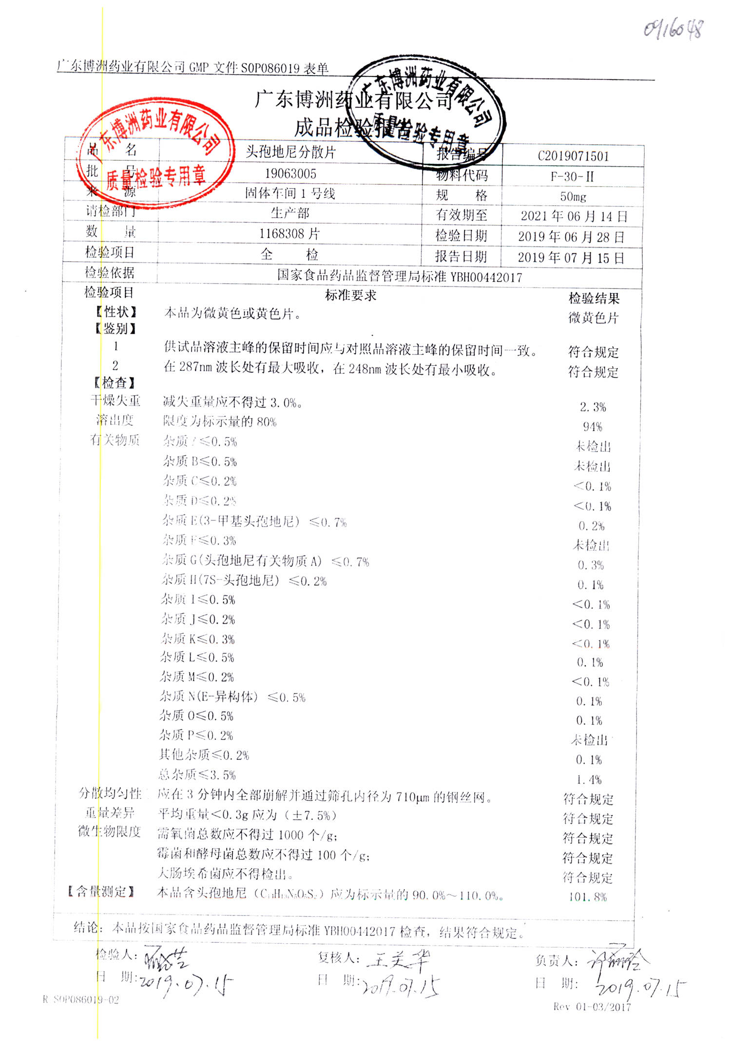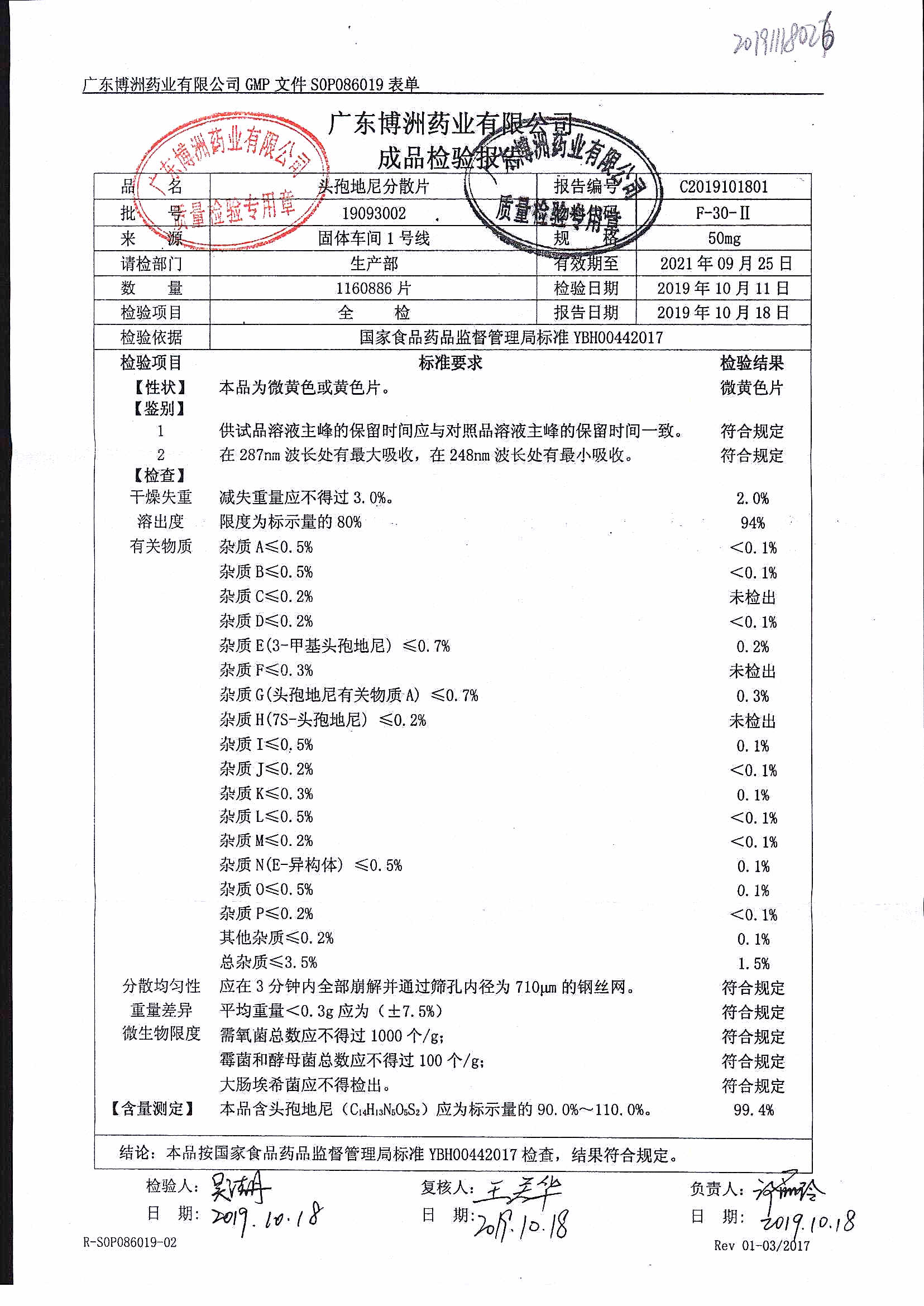 | 頭孢地尼分散片 | 50mg | 19013006 | 查看詳情 |