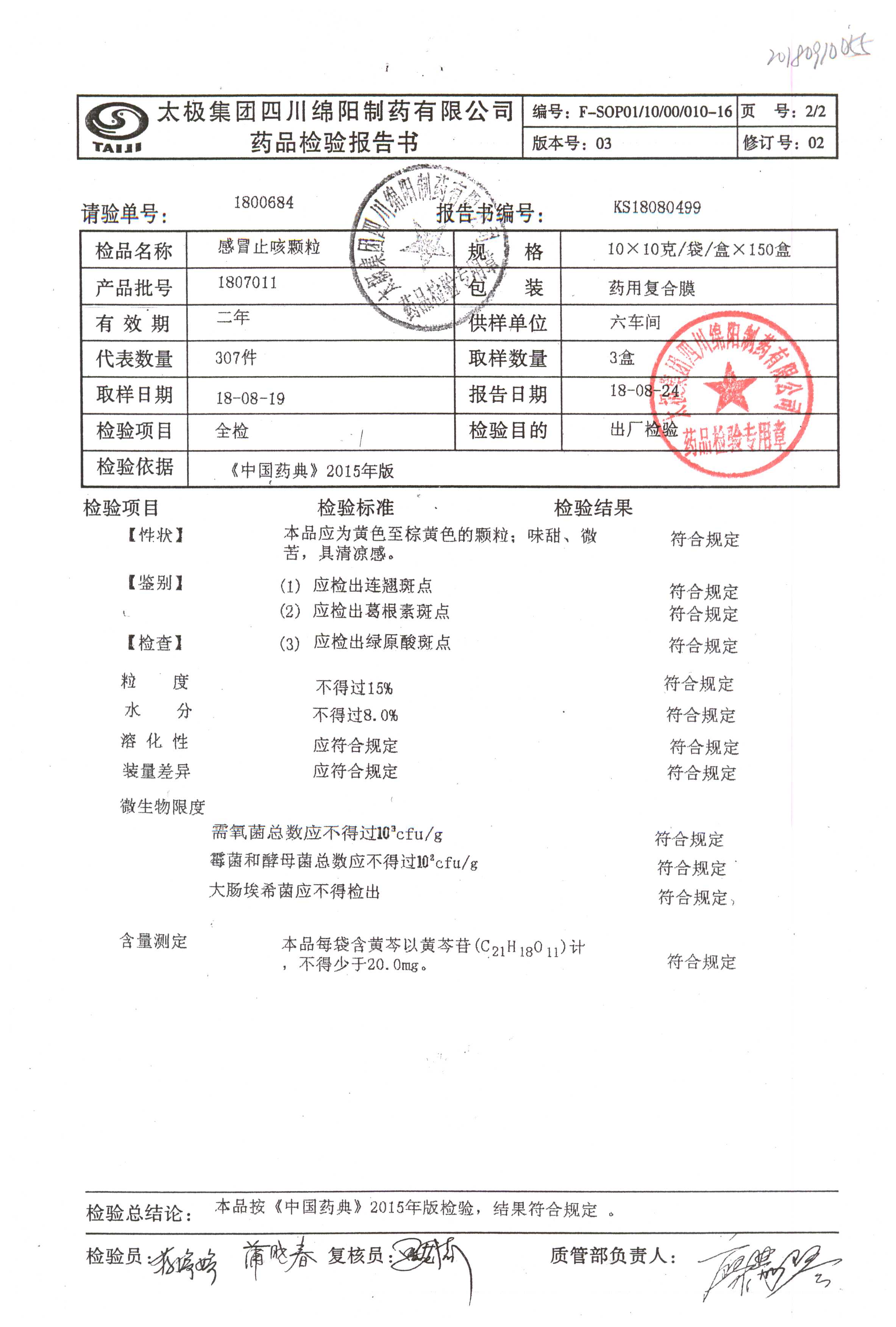 名稱 規(guī)格 批號(hào) 藥檢報(bào)告