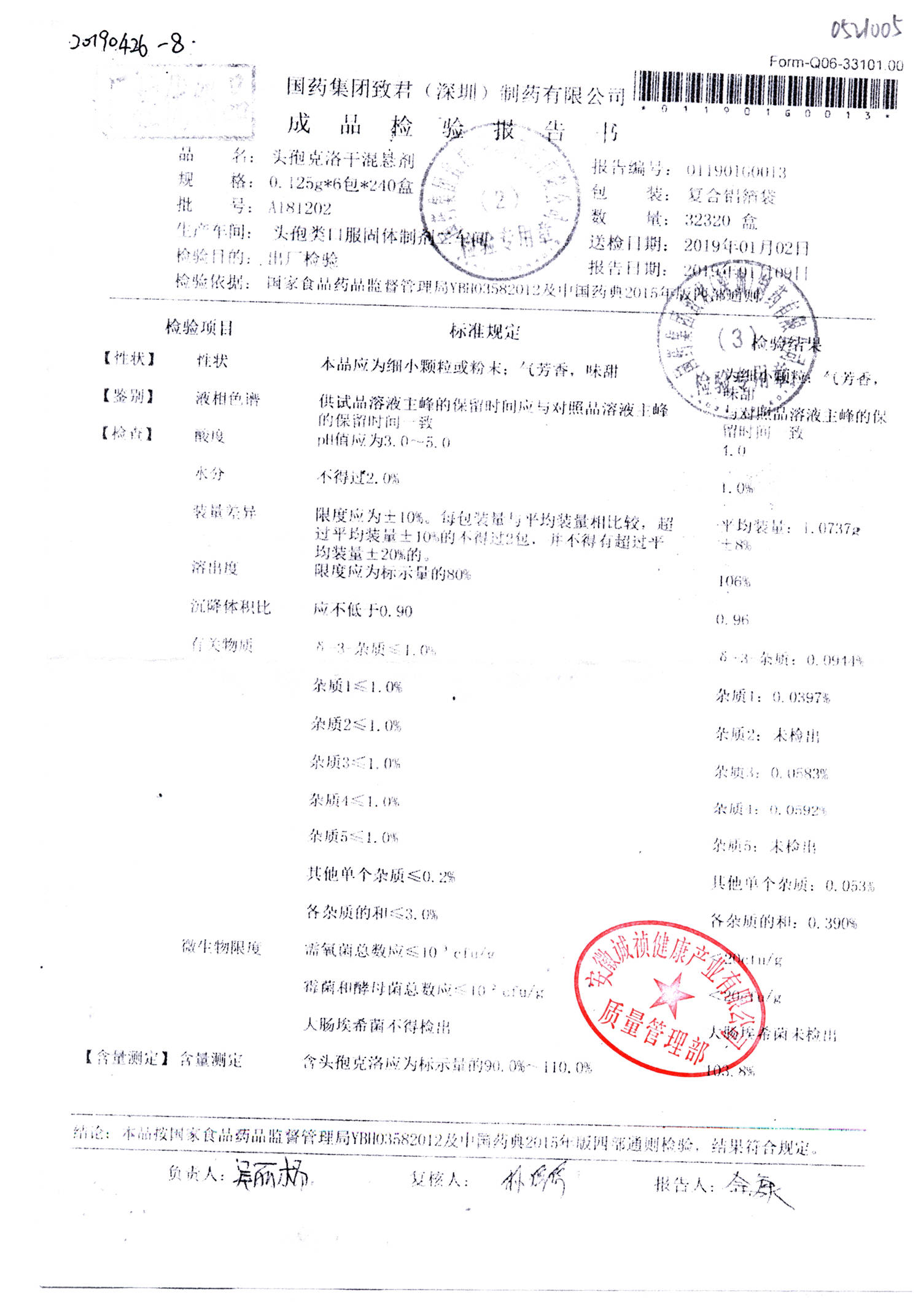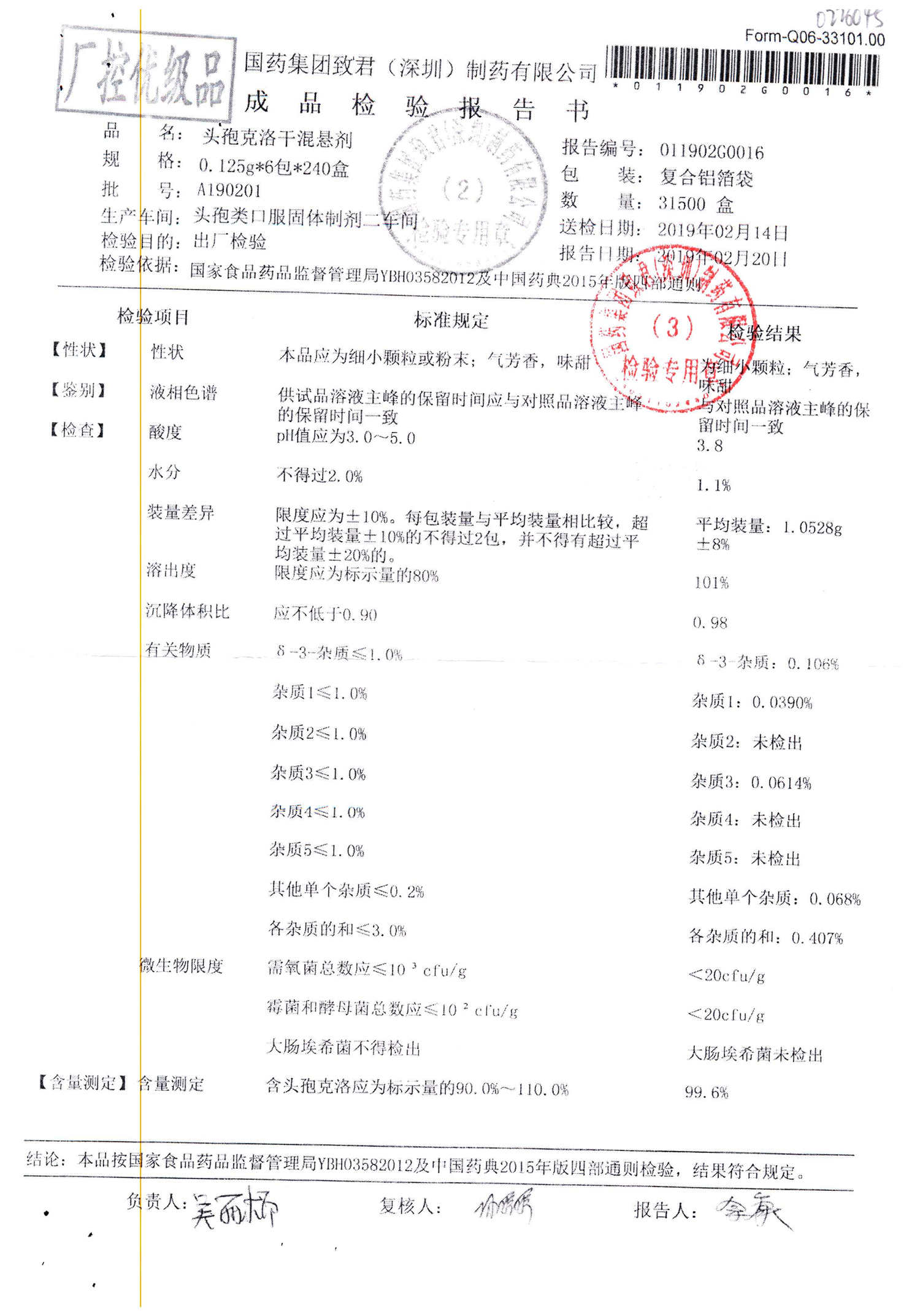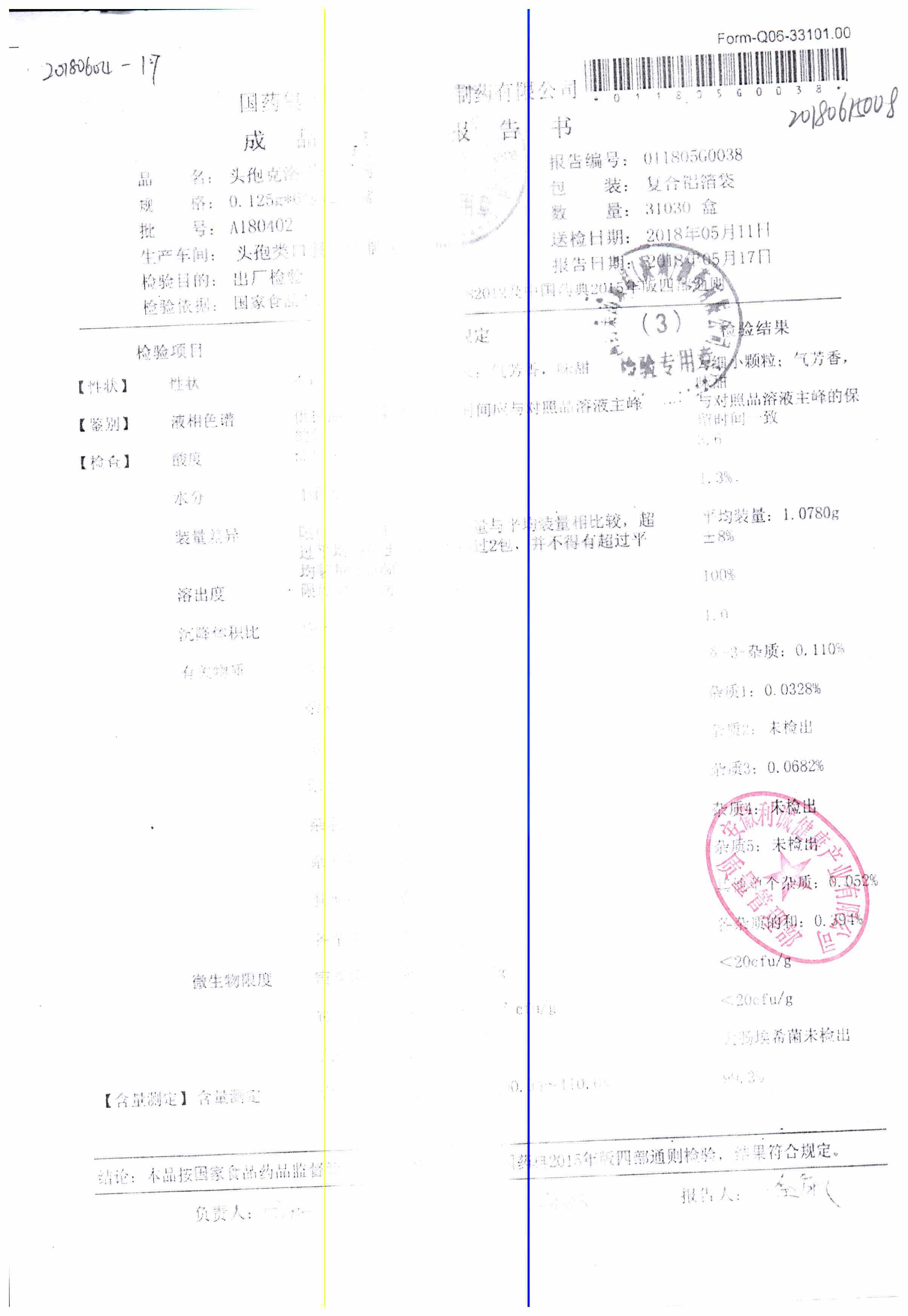 | 名稱 | 規(guī)格 | 批號(hào) | 藥檢報(bào)告 |
