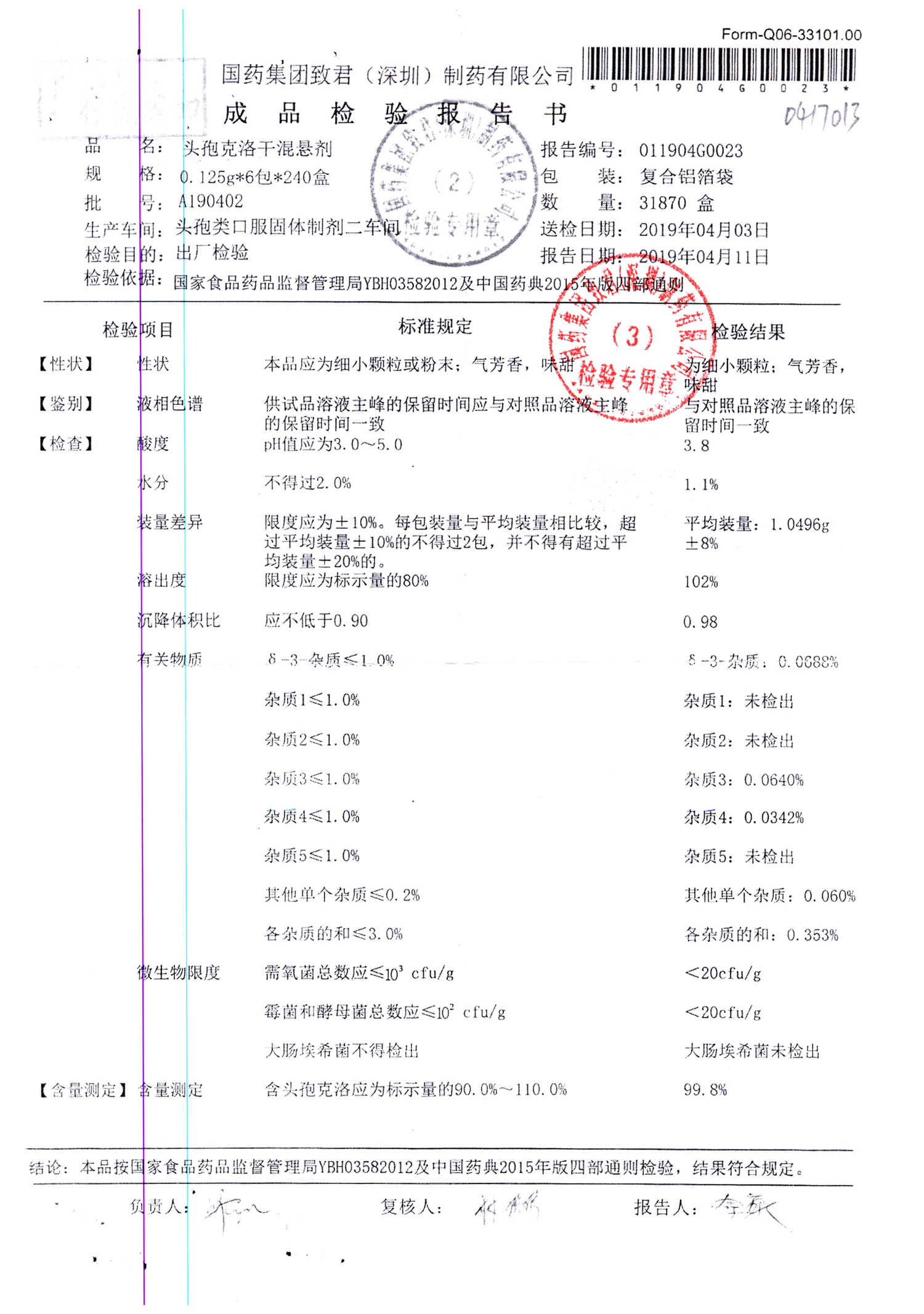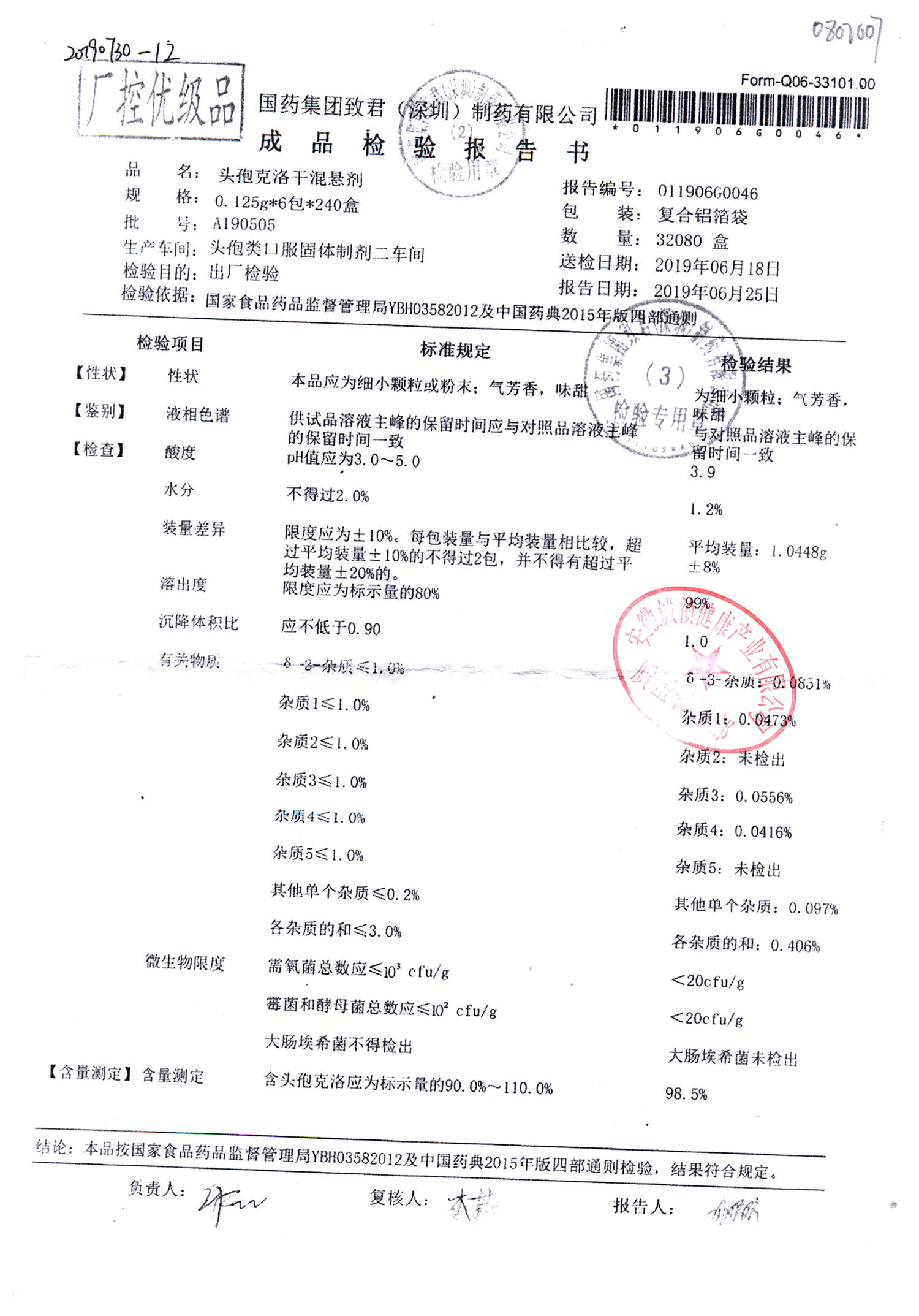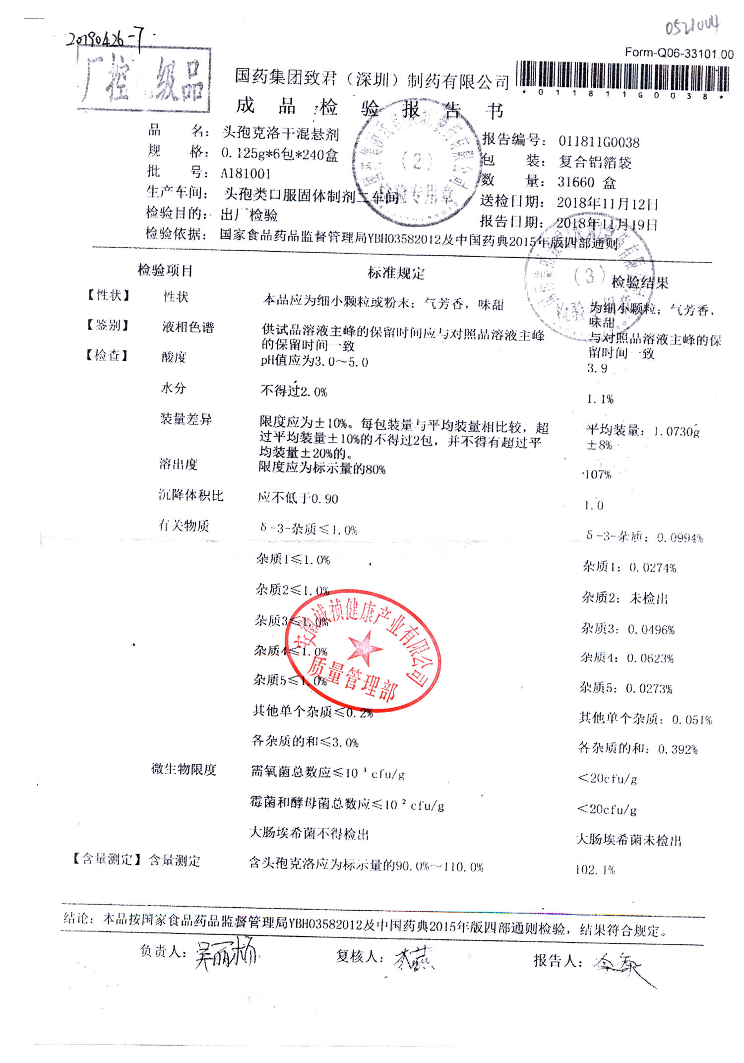 | 名稱 | 規(guī)格 | 批號(hào) | 藥檢報(bào)告 |