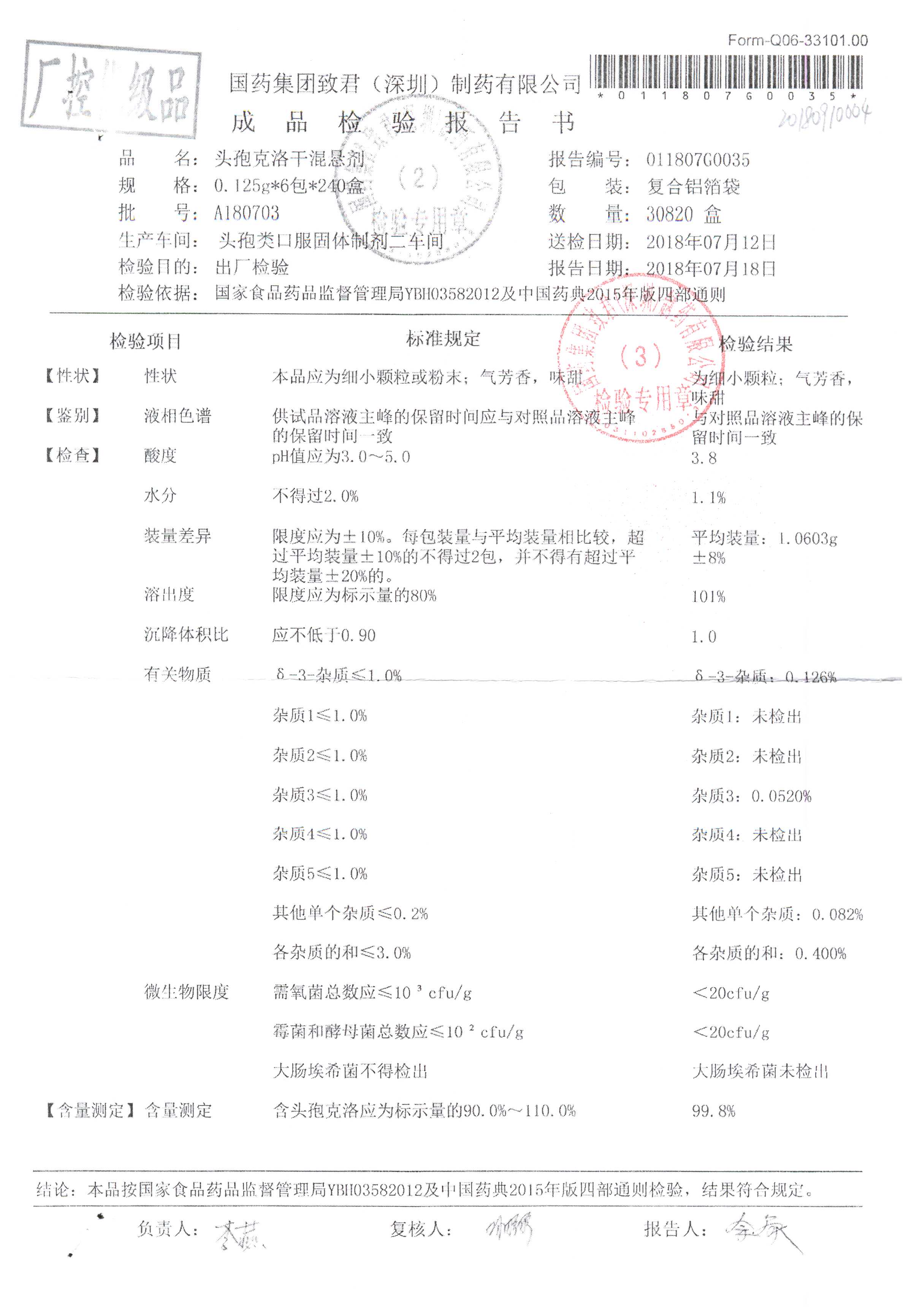 | 頭孢克洛干混懸劑 | 0.125g*6包 | A180602 | 查看詳情 |