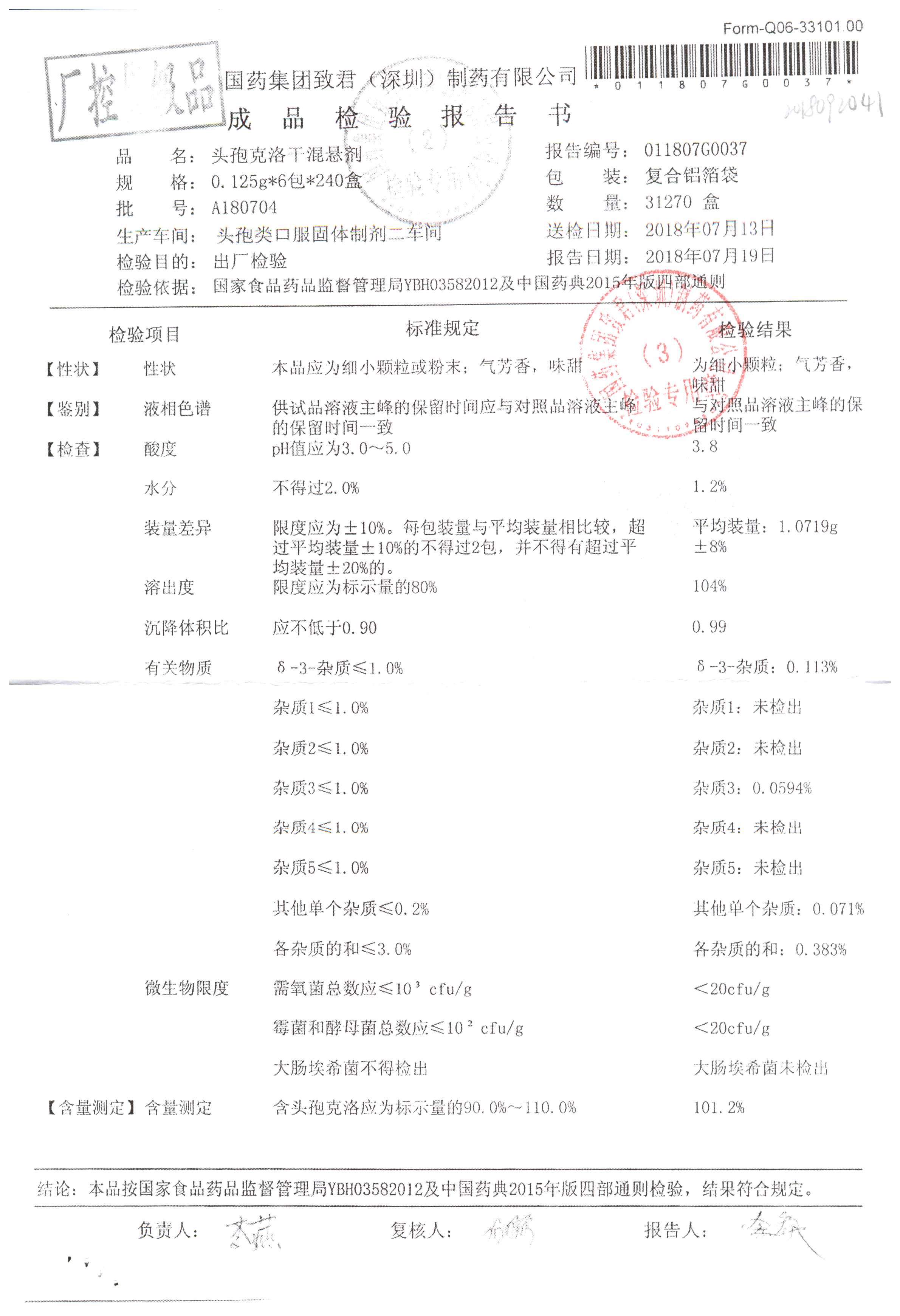 | 頭孢克洛干混懸劑 | 0.125g*6包 | A180703 | 查看詳情 |