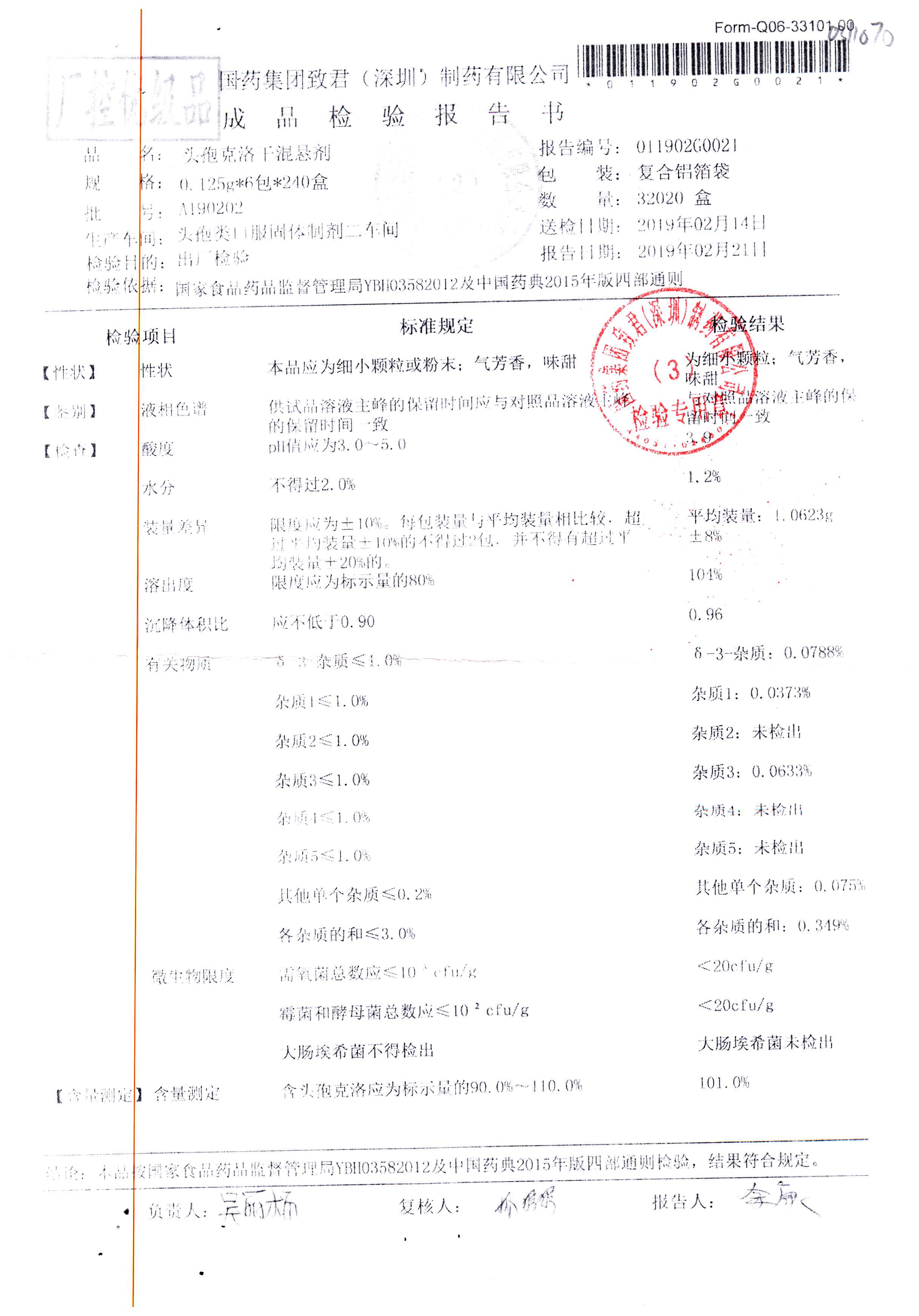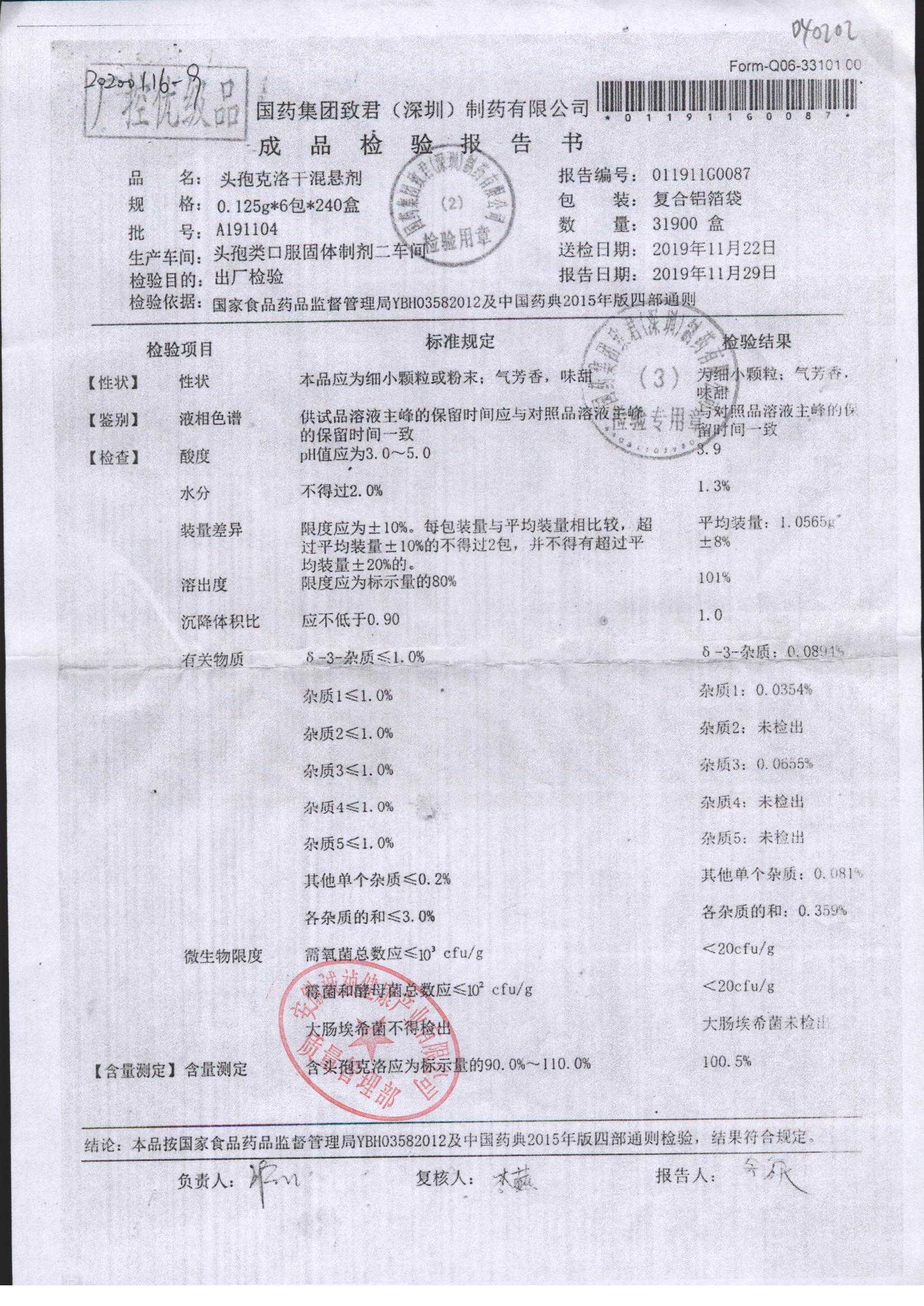 | 頭孢克洛干混懸劑 | 0.125g*6包 | A190201 | 查看詳情 |