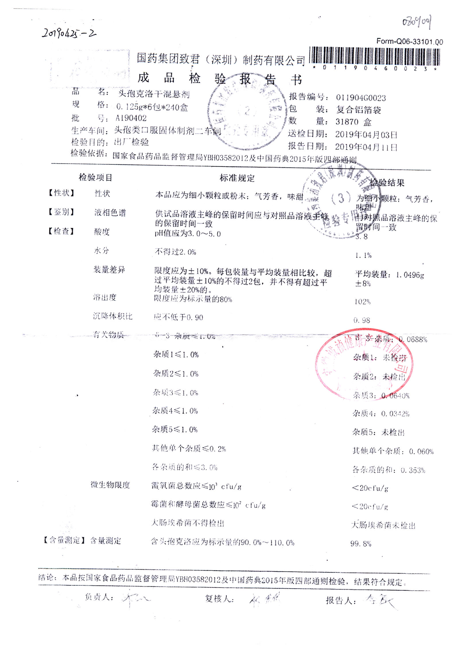 | 頭孢克洛干混懸劑 | 0.125g*6包 | A190402 | 查看詳情 |