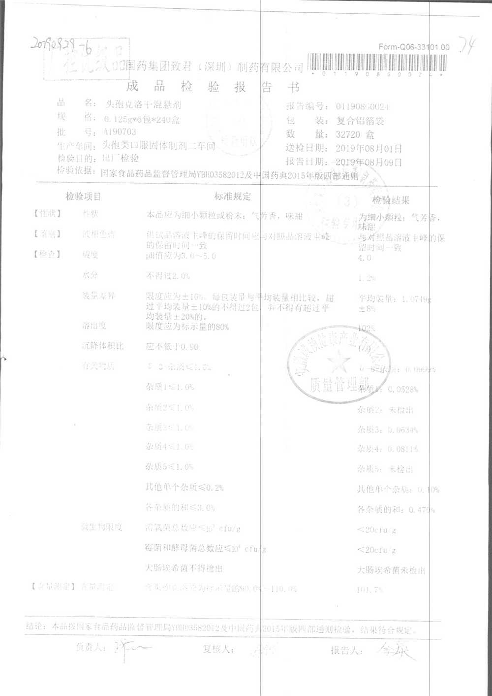 | 頭孢克洛干混懸劑 | 0.125g*6包 | A190501 | 查看詳情 |