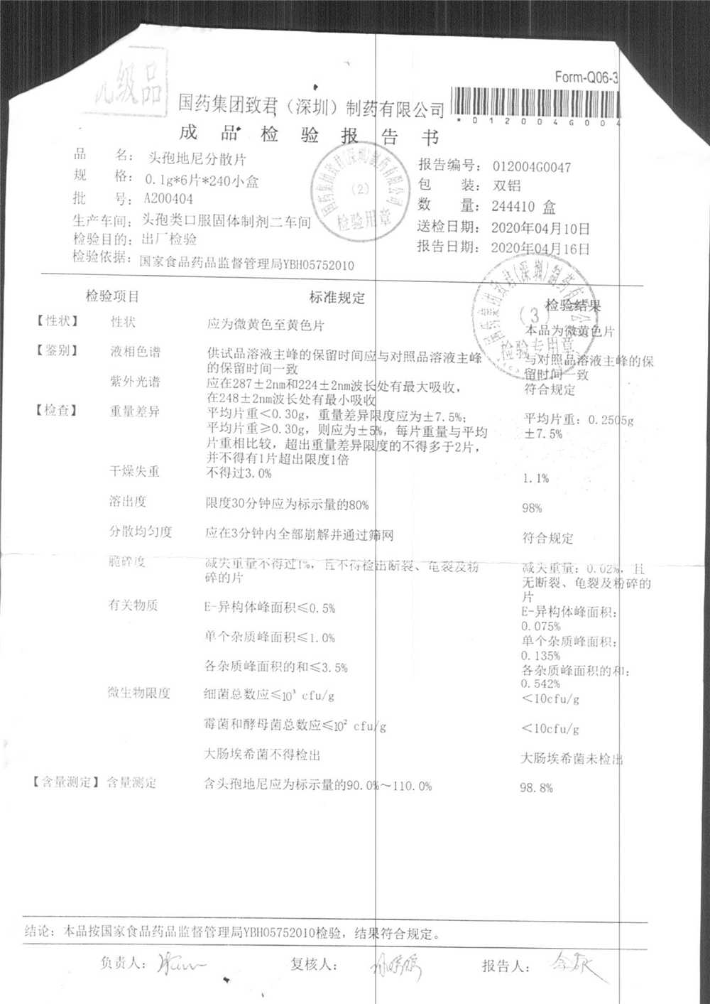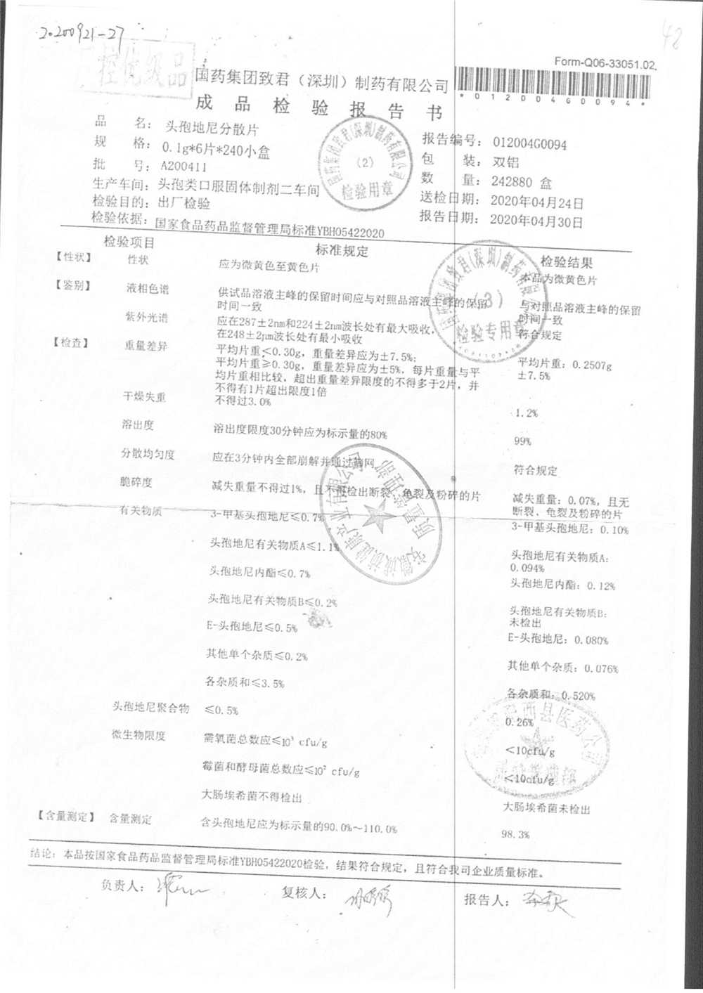 | 頭孢地尼分散片 | 0.1g*6片 | A200404 | 查看詳情 |