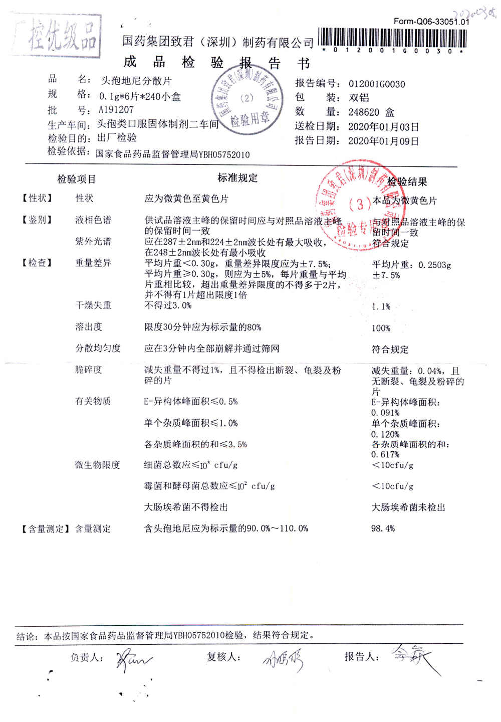 | 頭孢地尼分散片 | 0.1g*6片 | A191201 | 查看詳情 |
