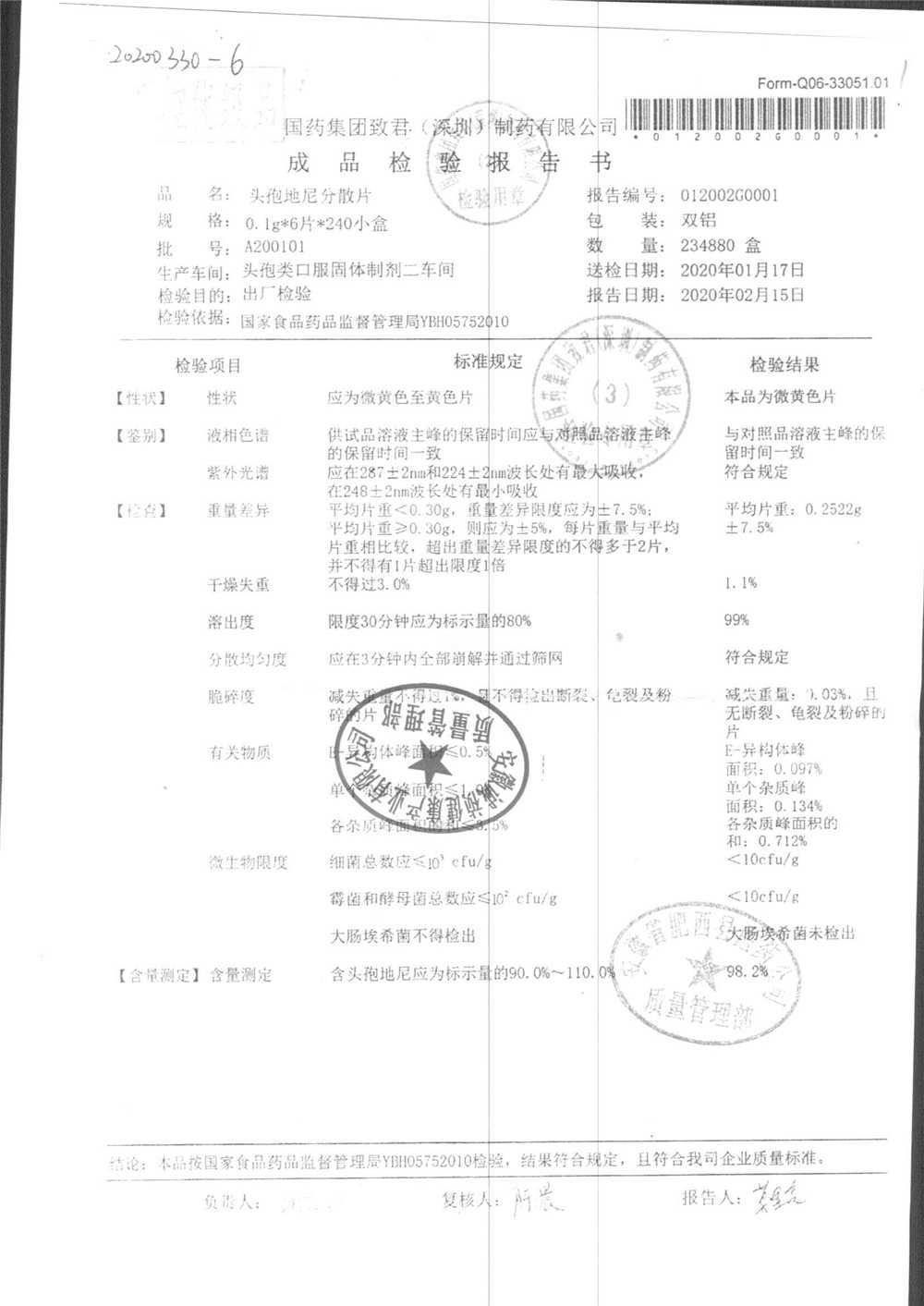 | 頭孢地尼分散片 | 0.1g*6片 | A201206 | 查看詳情 |