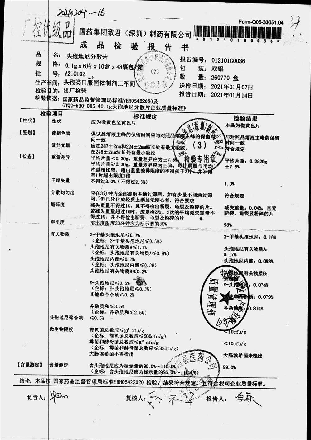 | 頭孢地尼分散片 | 0.1g*6片 | A210902 | 查看詳情 |