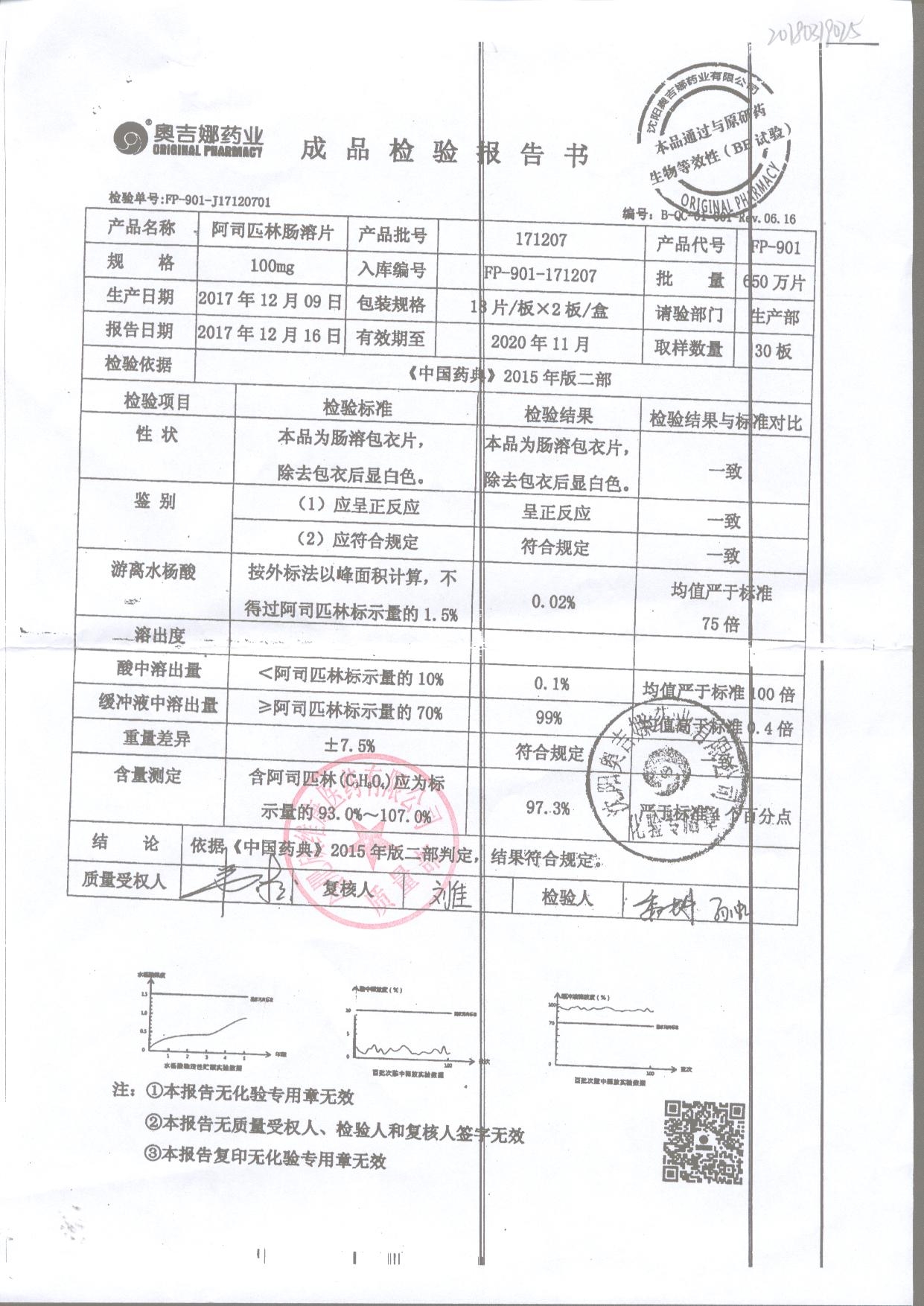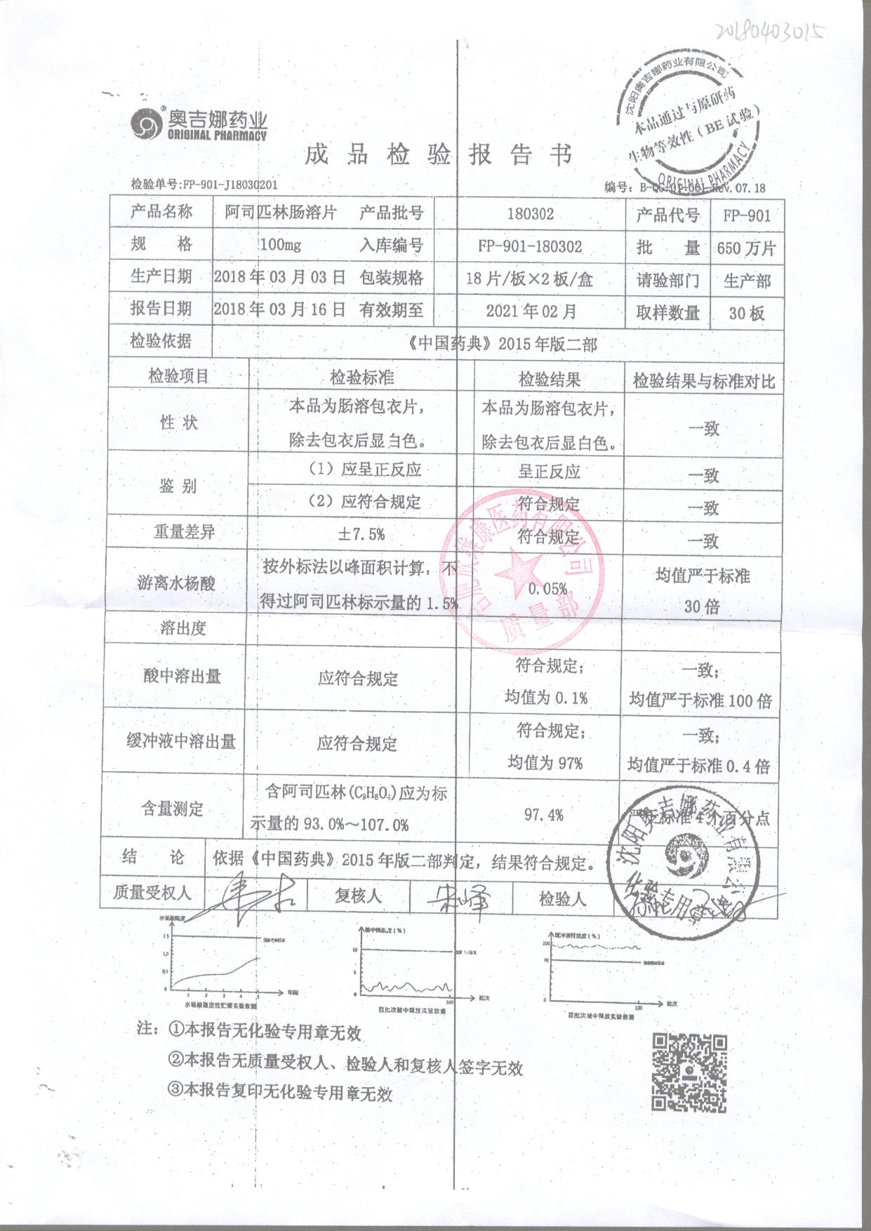 | 阿司匹林腸溶片 | 100mg*36片 | 180302 | 查看詳情 |