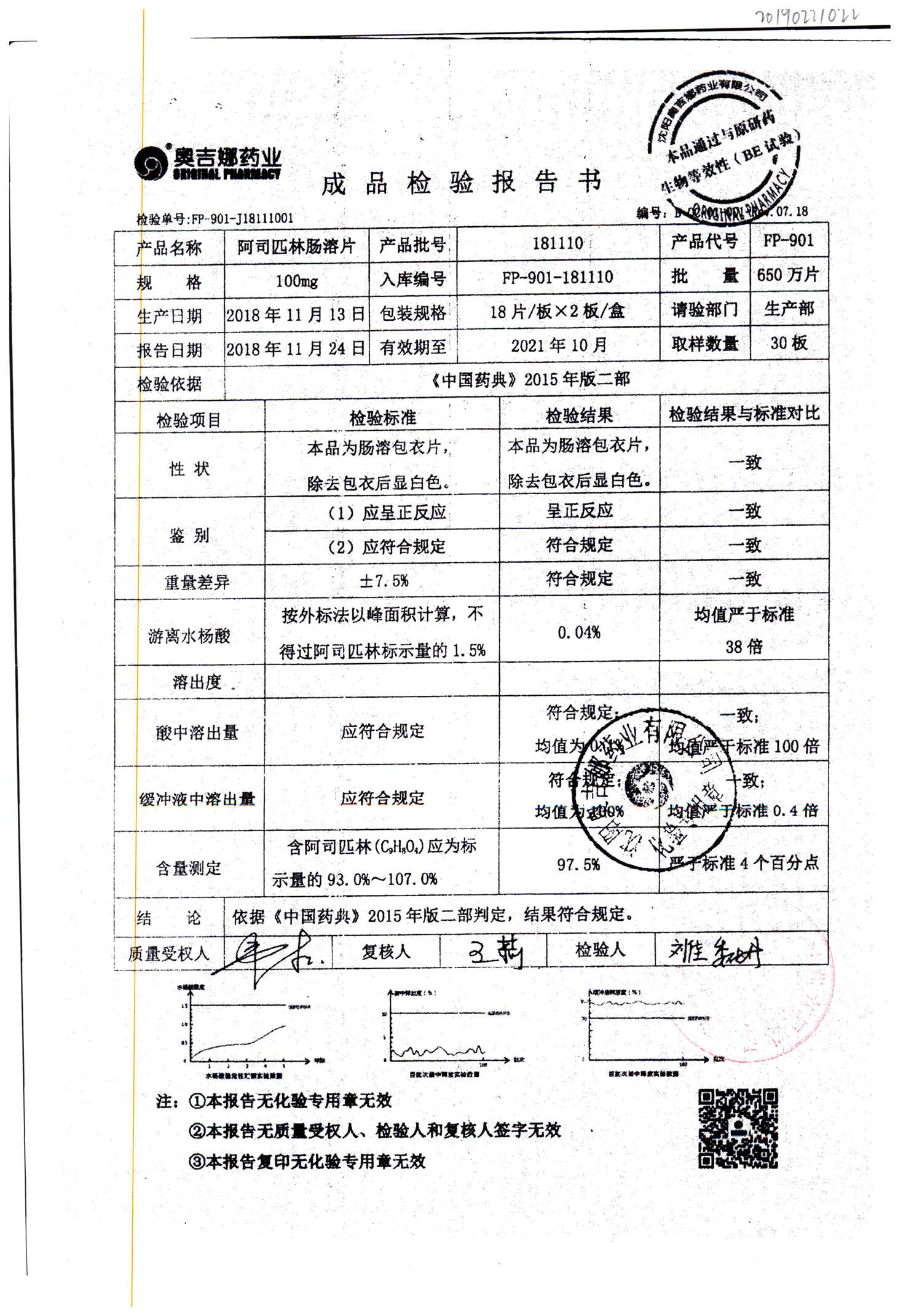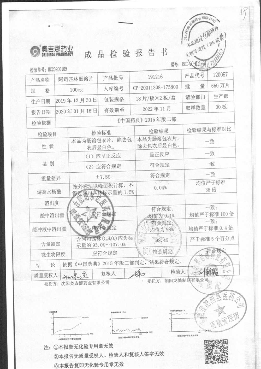 | 阿司匹林腸溶片 | 100mg*36片 | 191216 | 查看詳情 |